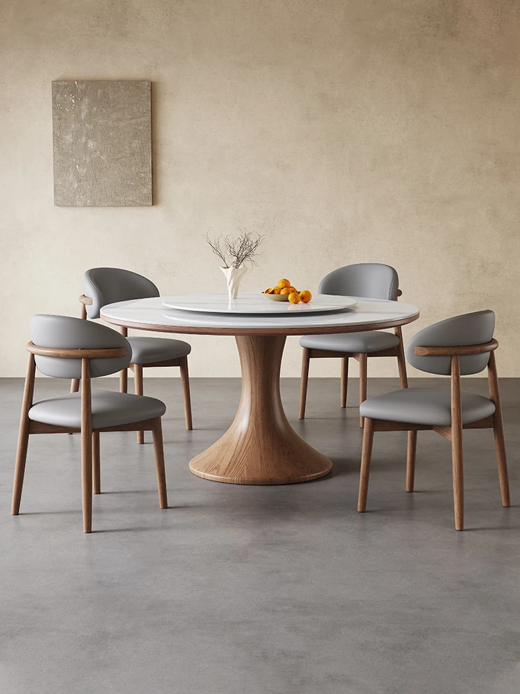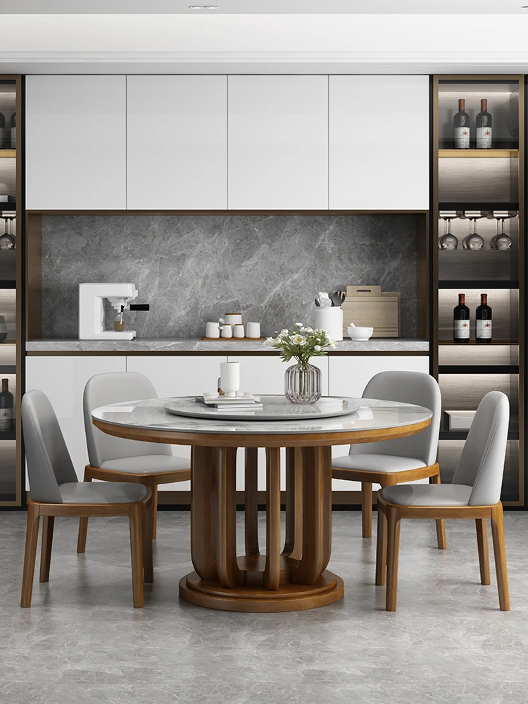 新中式全実木の岩板ダイニングテーブル - 現代家用ラウンドテーブル、回転式プレート付き、ホテルやレストランにも最適な円形テーブルで、家族や友人との特別な食事を楽しむ!