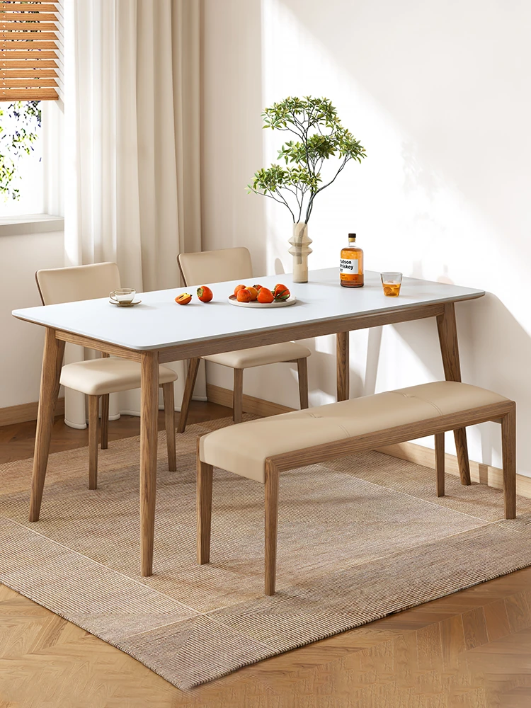 モダンシンプルな無垢材の岩板ダイニングテーブル&チェアセット - 長方形の家用テーブル、茶卓にも最適!佛山のホワイトアッシュ家具で、スタイリッシュな空間を演出。