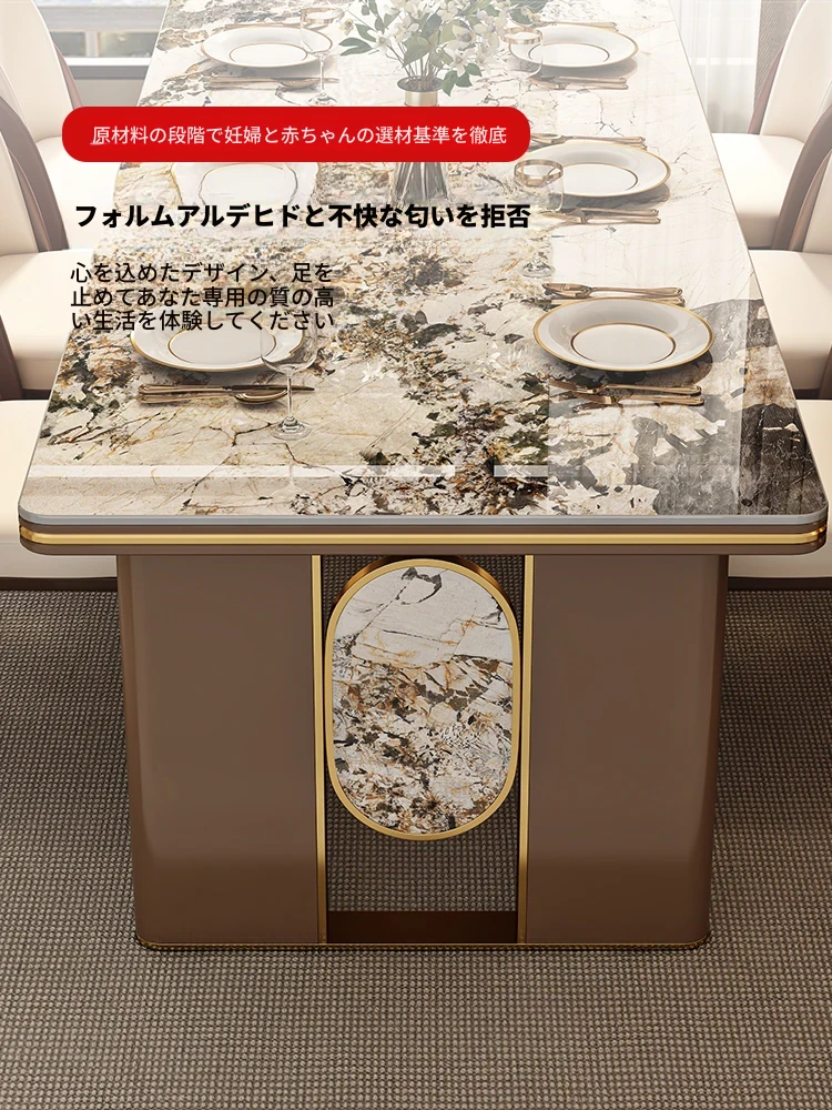 2025年ライアンフレンチヴィンテージ洞石岩板ダイニングテーブル - 中古風の長方形デザイン、小さなスペースにもぴったりな家庭用リビング向け食卓!おしゃれで機能的な空間を演出します。