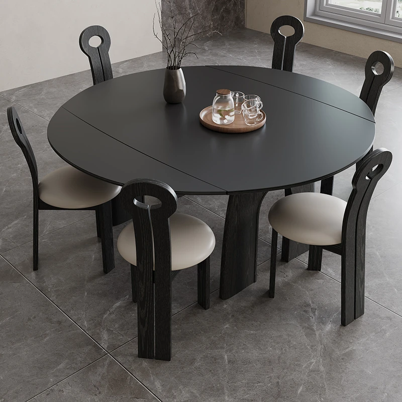 2024年新款!中古風スタイルの無垢材折りたたみダイニングテーブル – 変形可能なラウンドテーブルで、モダンでシンプルなアメリカン・ラグジュアリーを実現。狭いスペースにもぴったりの伸縮可能なデザイン!