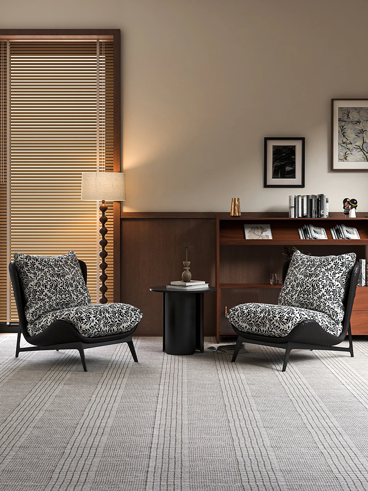 Vintage Wabi-Sabi Style Single Sofa Chair - Retro Designer Lounge Chair for Cozy Guesthouses, Perfect for Reception and Conversations, Includes One Table and Two Chairs Set