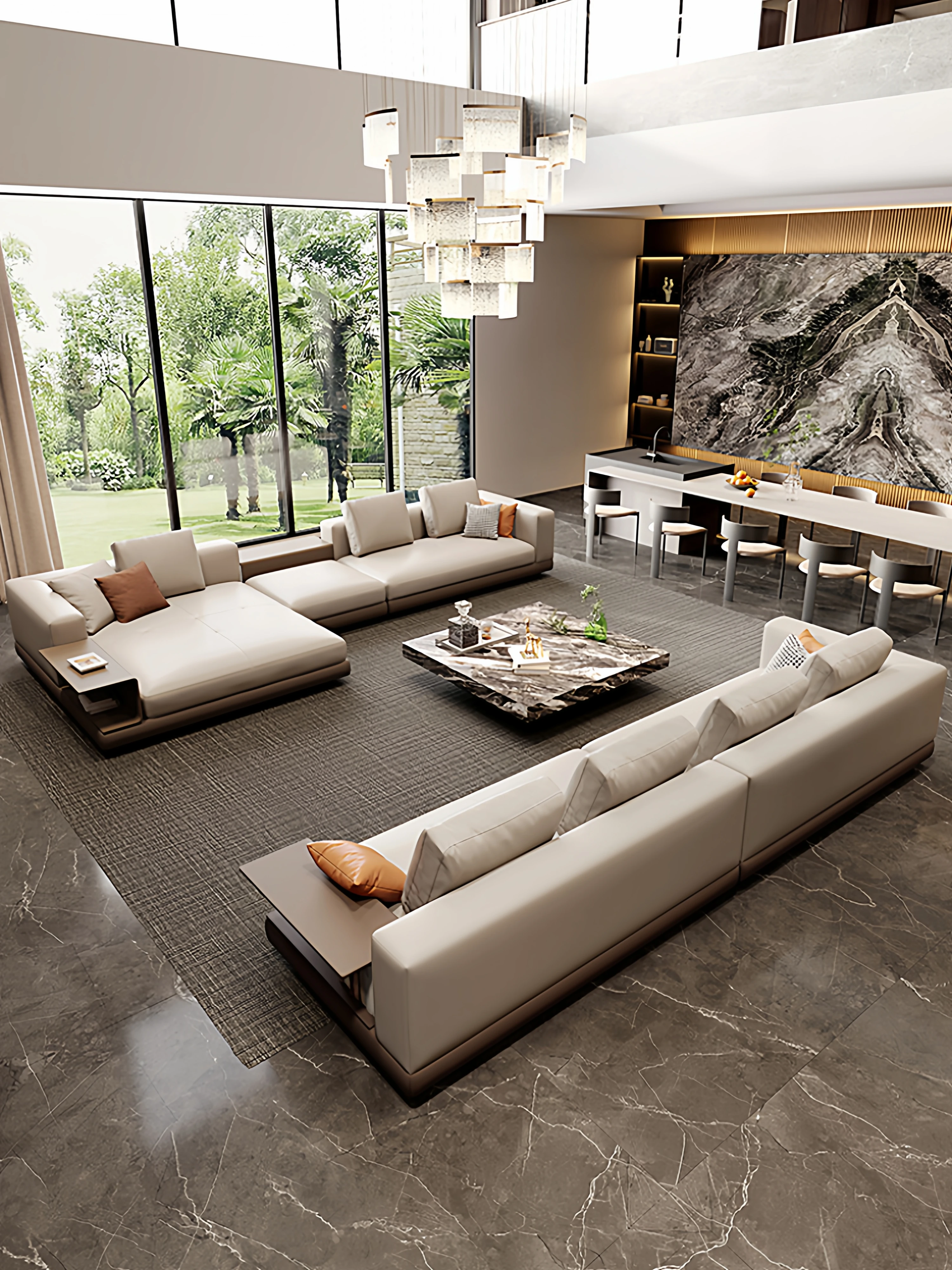 Double-Sided Back-to-Back Sofa Set | Premium Quality Factory | PanaPi High-End Italian Leather Sofa for Luxurious Living Rooms