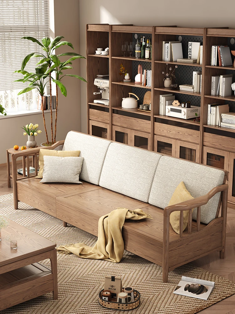 Modern Minimalist Solid Wood Sofa for Small Living Rooms - New Chinese Style Thick Ash Wood Furniture - Four-Seater Nordic Sofa for Cozy Spaces