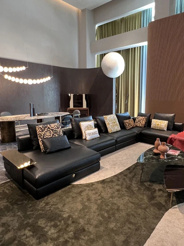 Modern Minimalist Villa Large Living Room High-End Imported Fabric and Down Lawrence Leather Sofa Set – Elevate Your Space with Luxurious Comfort and Style!