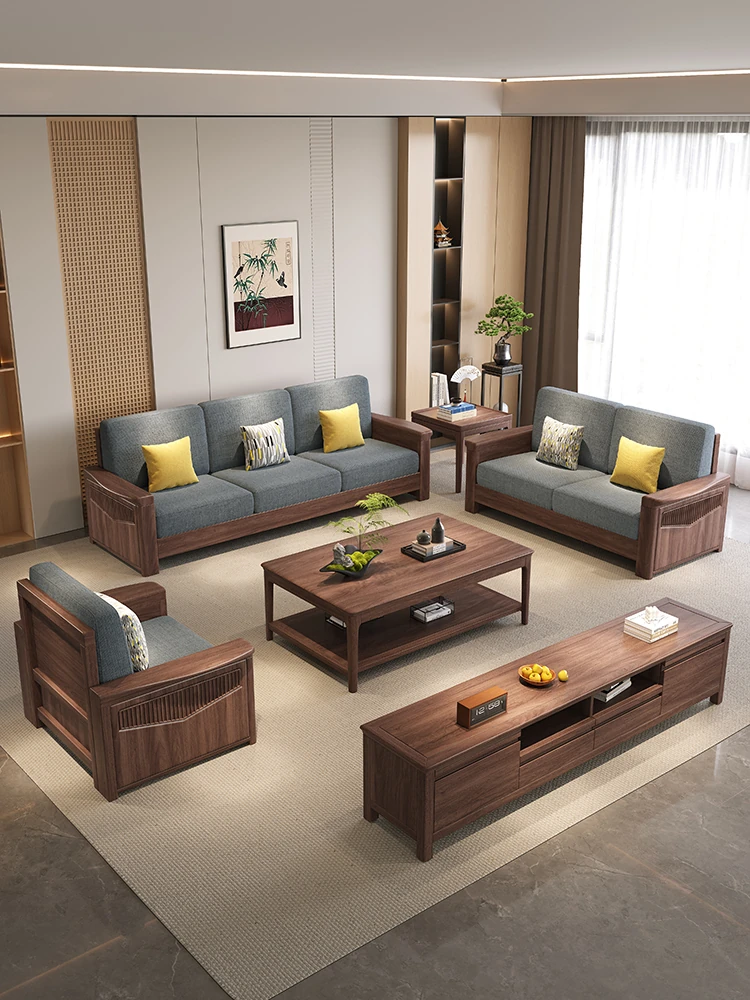 Modern Chinese Solid Wood Sofa – Stylish 3-Seater Living Room Furniture for Spacious Villas – Versatile Design for Year-Round Comfort