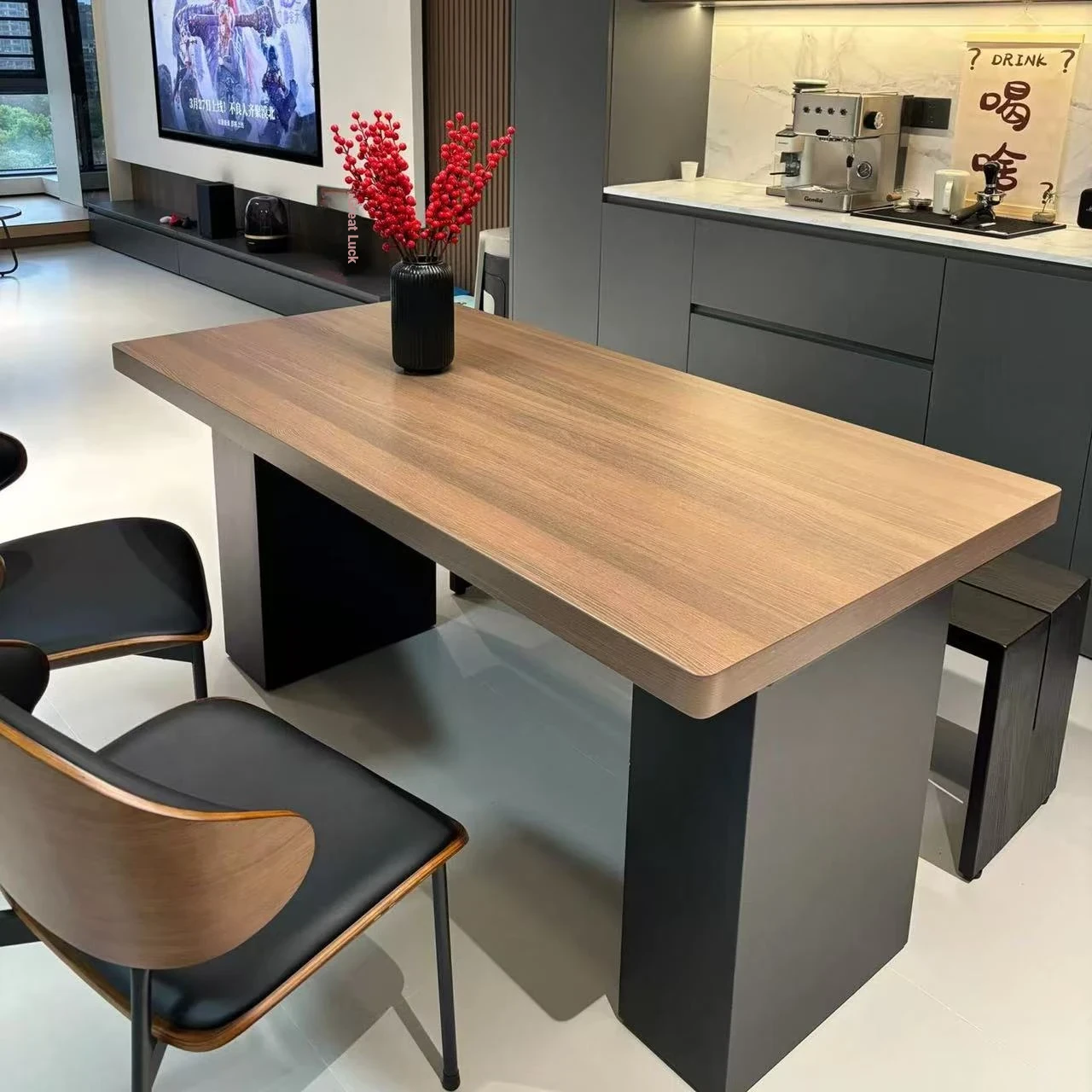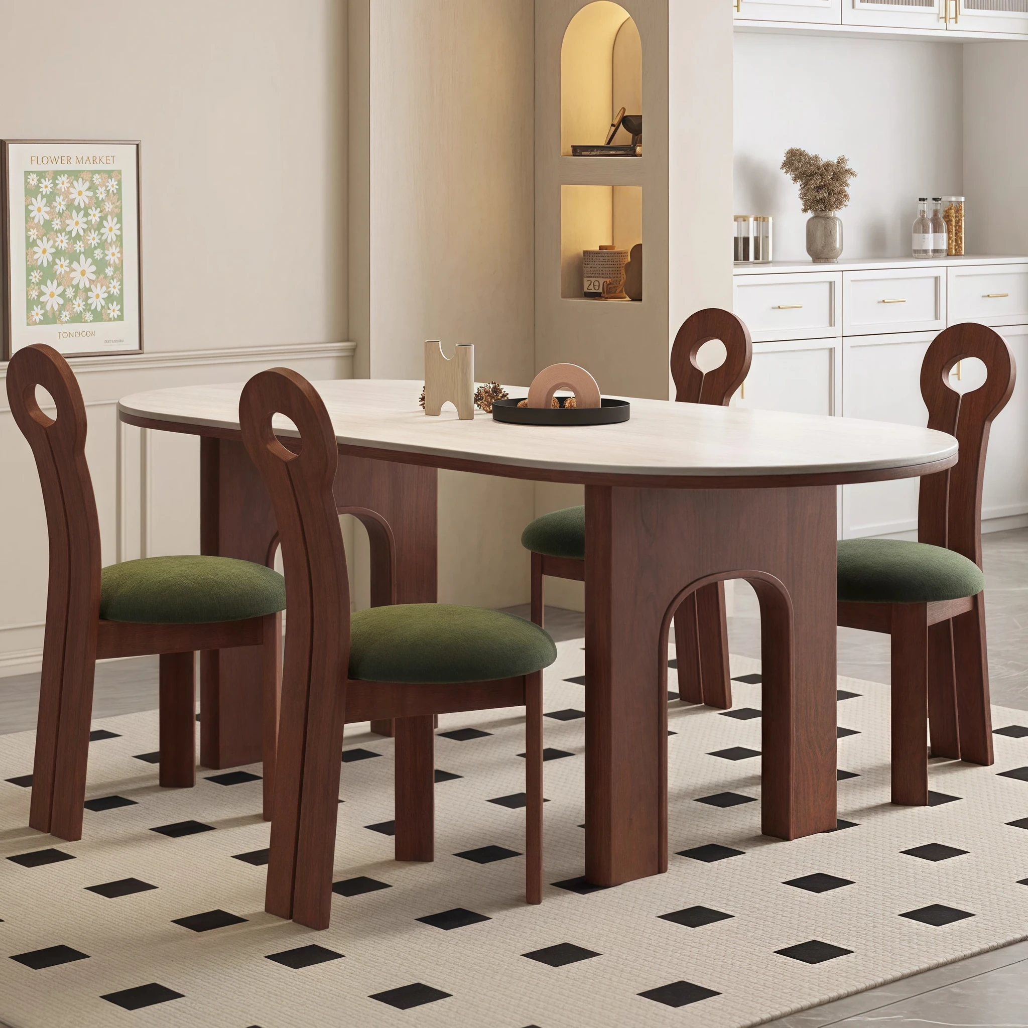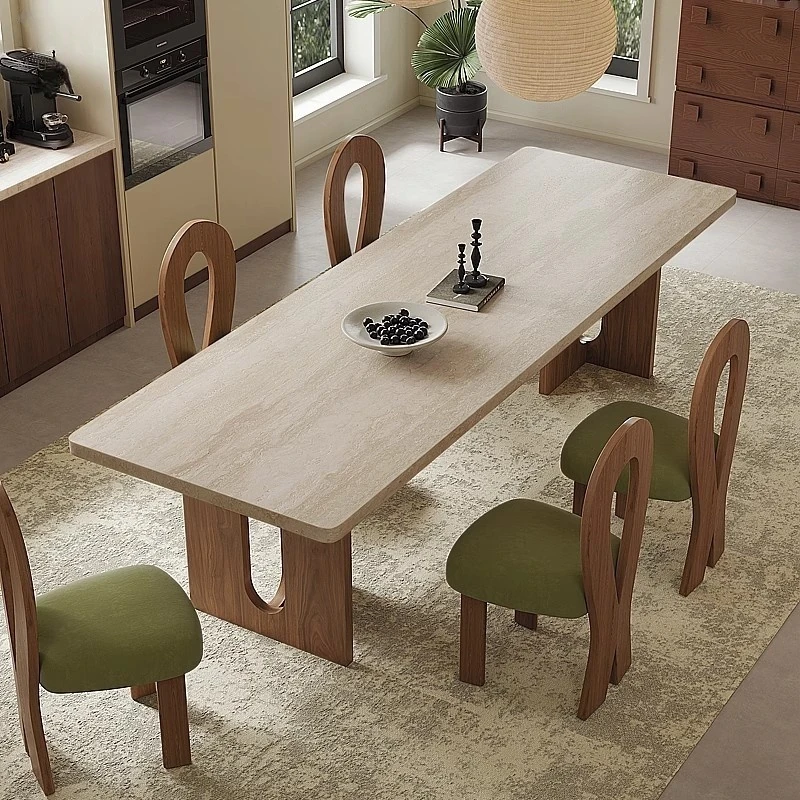 Modern Vintage Style Rectangular Dining Table and Chair Set - High-End Thick Walnut Wood, Embracing Wabi-Sabi Aesthetics for Your Home