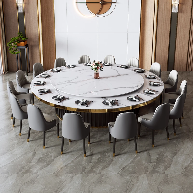 Modern Chinese Style Round Electric Dining Table - 3m Luxury Large Table for Hotel and Club VIP Rooms, Perfect for Elegant Dining Experiences