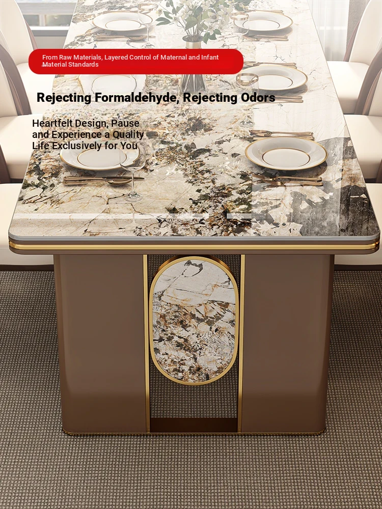 2025 New Italian Luxury Designer Large Rock Plate Dining Table Set - Modern Minimalist Dining Table and Chair Combination