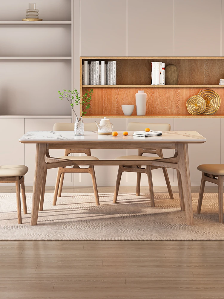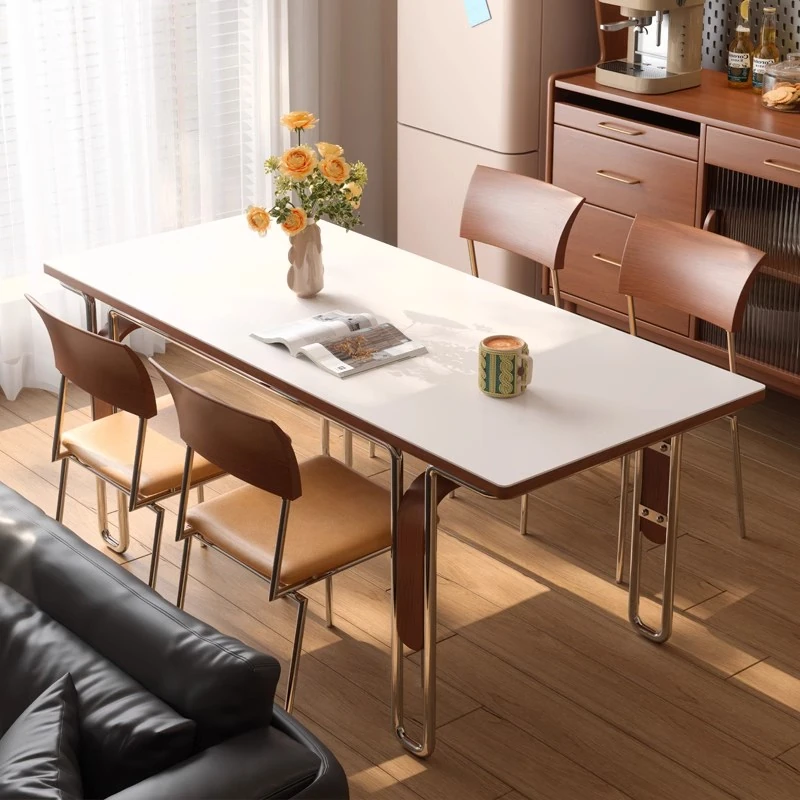 Vintage Bauhaus Style Rectangular Dining Table with Solid Wood and Rock Plate - Nordic Retro Stainless Steel Furniture for Dining