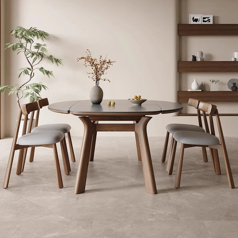Free Shipping in Xinjiang - Modern Minimalist Luxury Rock Plate Dining Table, Solid Wood, Space-Saving, Expandable & Foldable Round Design for Small Homes