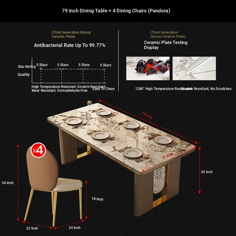 78.74 in Dining Table [Pandora Rock Plate] + Dining Chair * 4