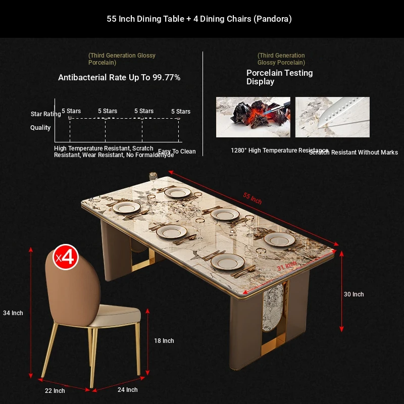 55.12 in Dining Table [Pandora Rock Plate] + Dining Chair * 4
