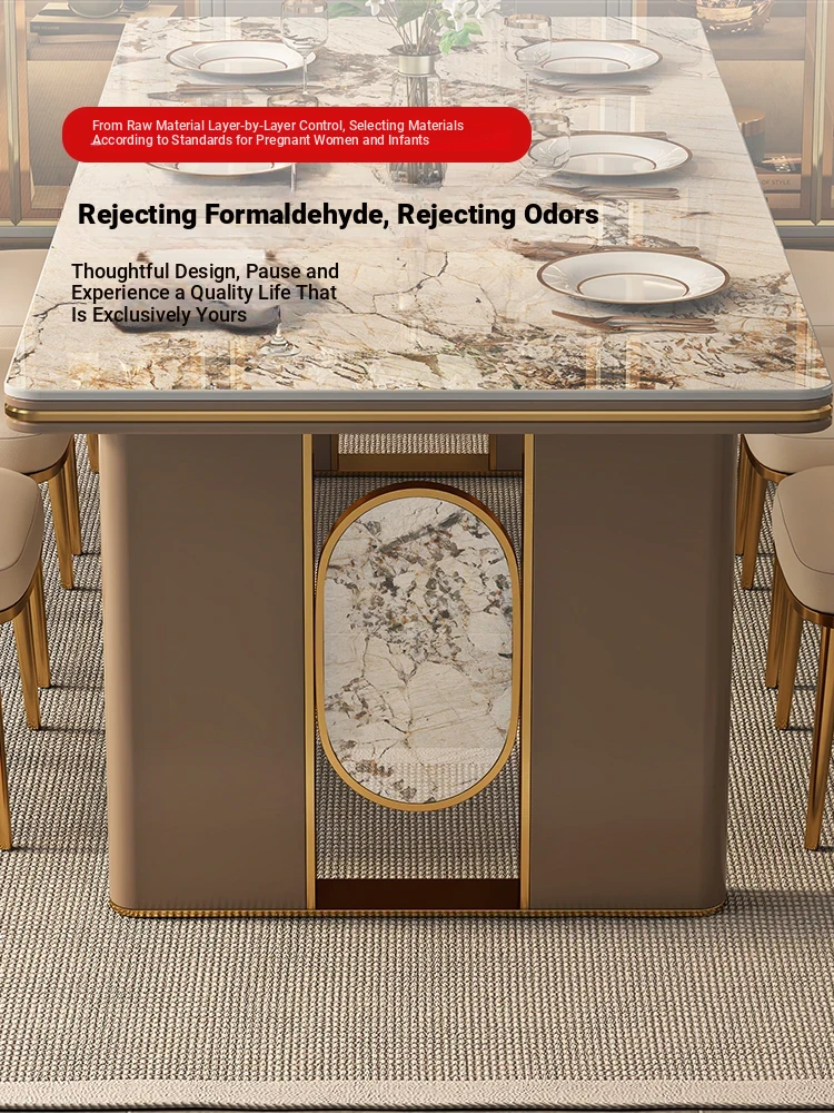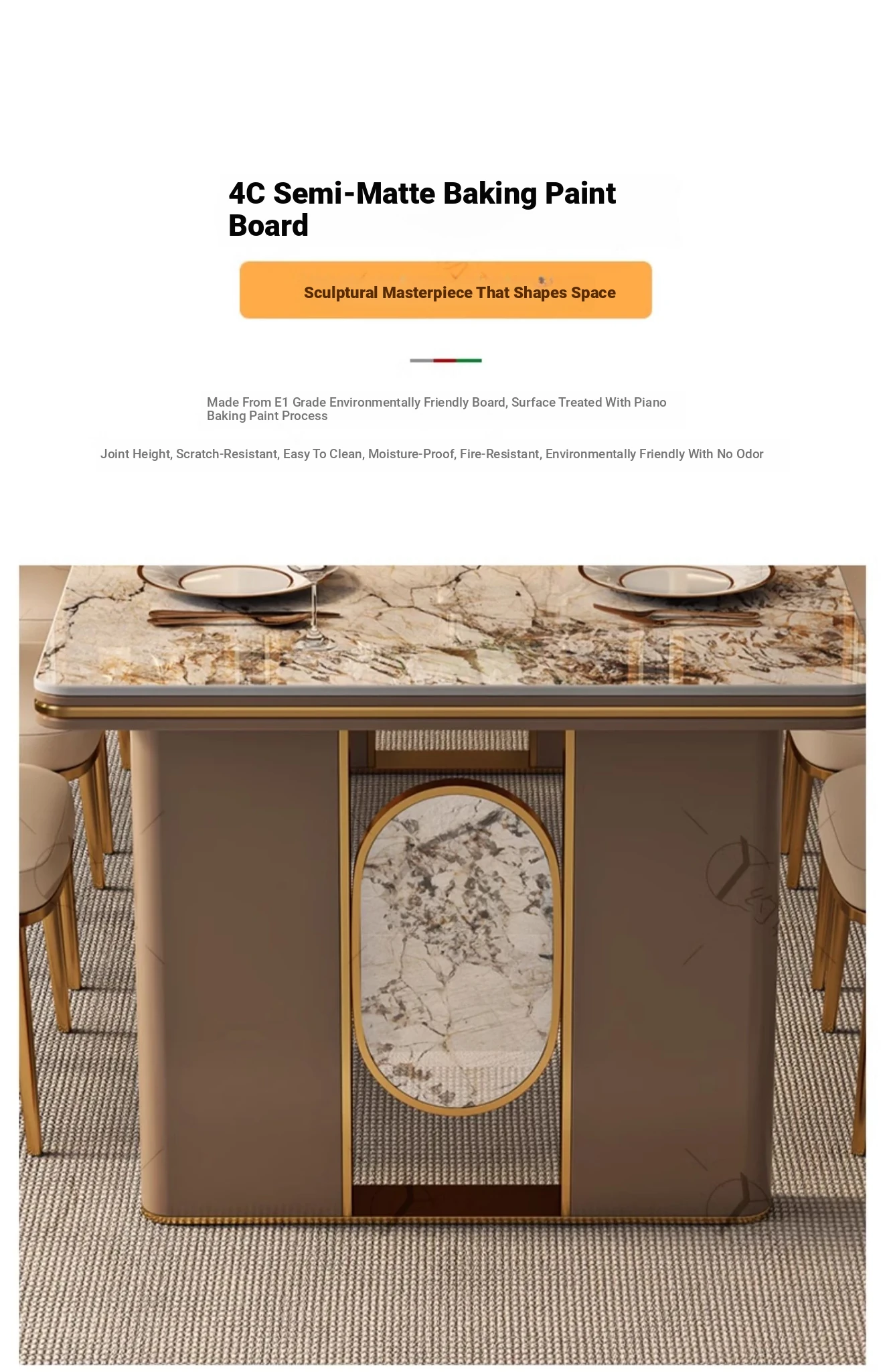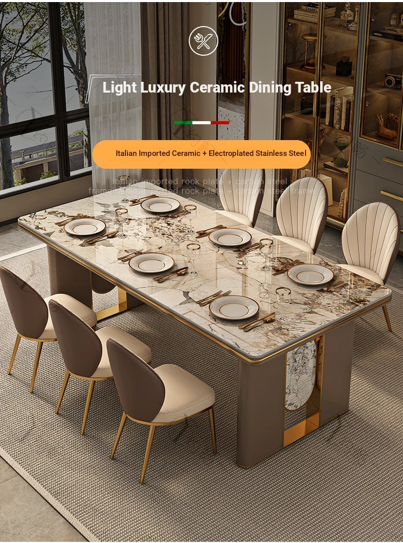 2025 New Luxury Dining Table and Chair Set – High-End Designer Large Dining Table with Modern Minimalist Glossy Rock Surface
