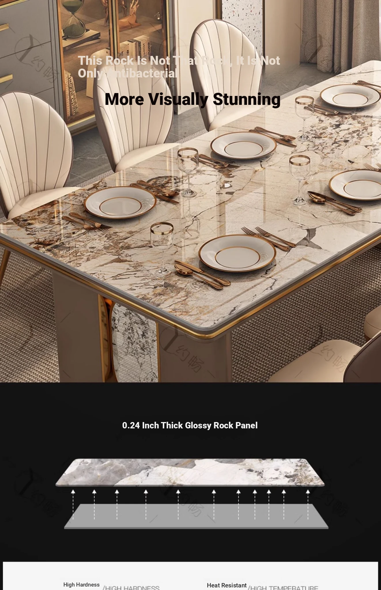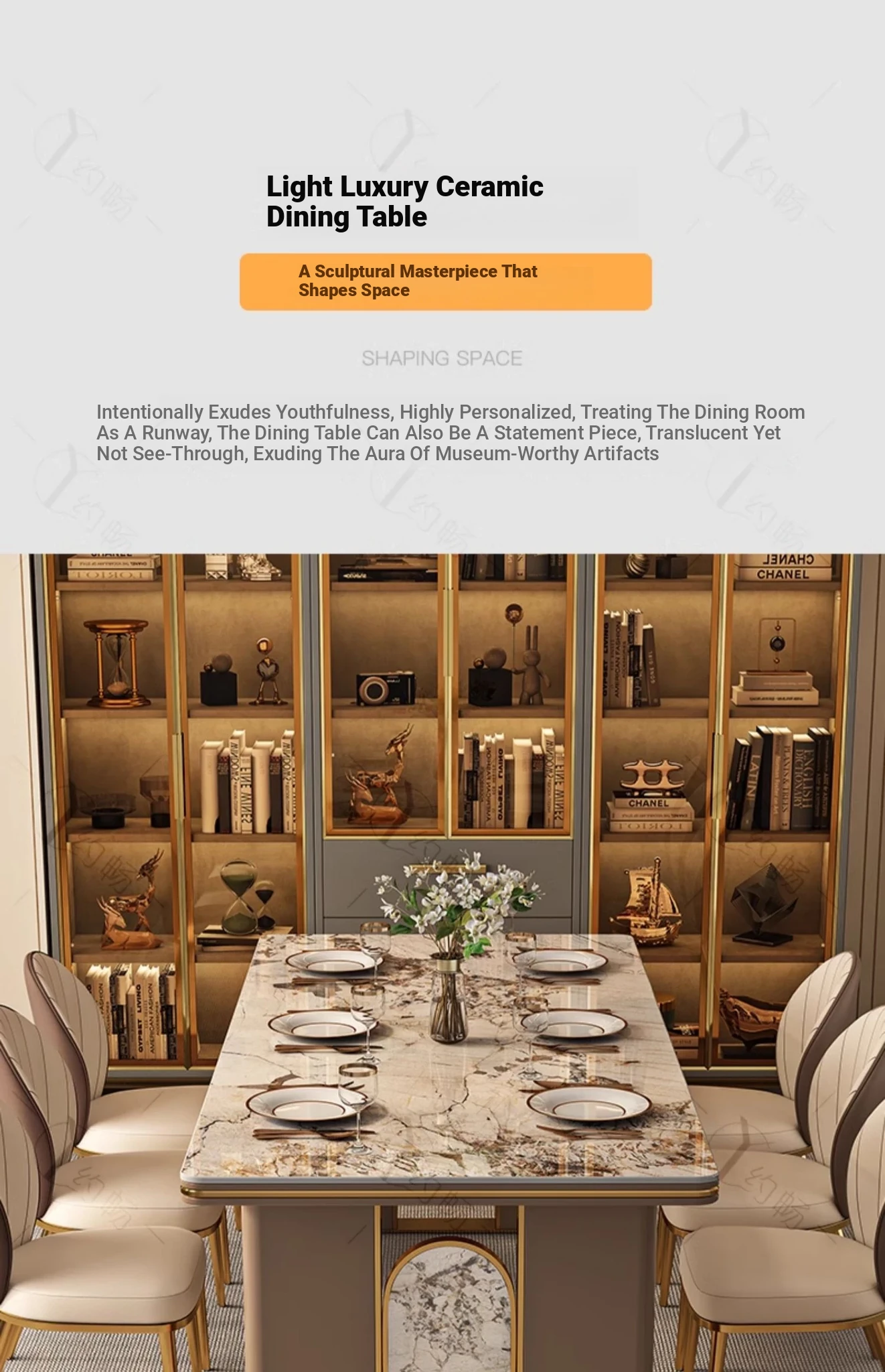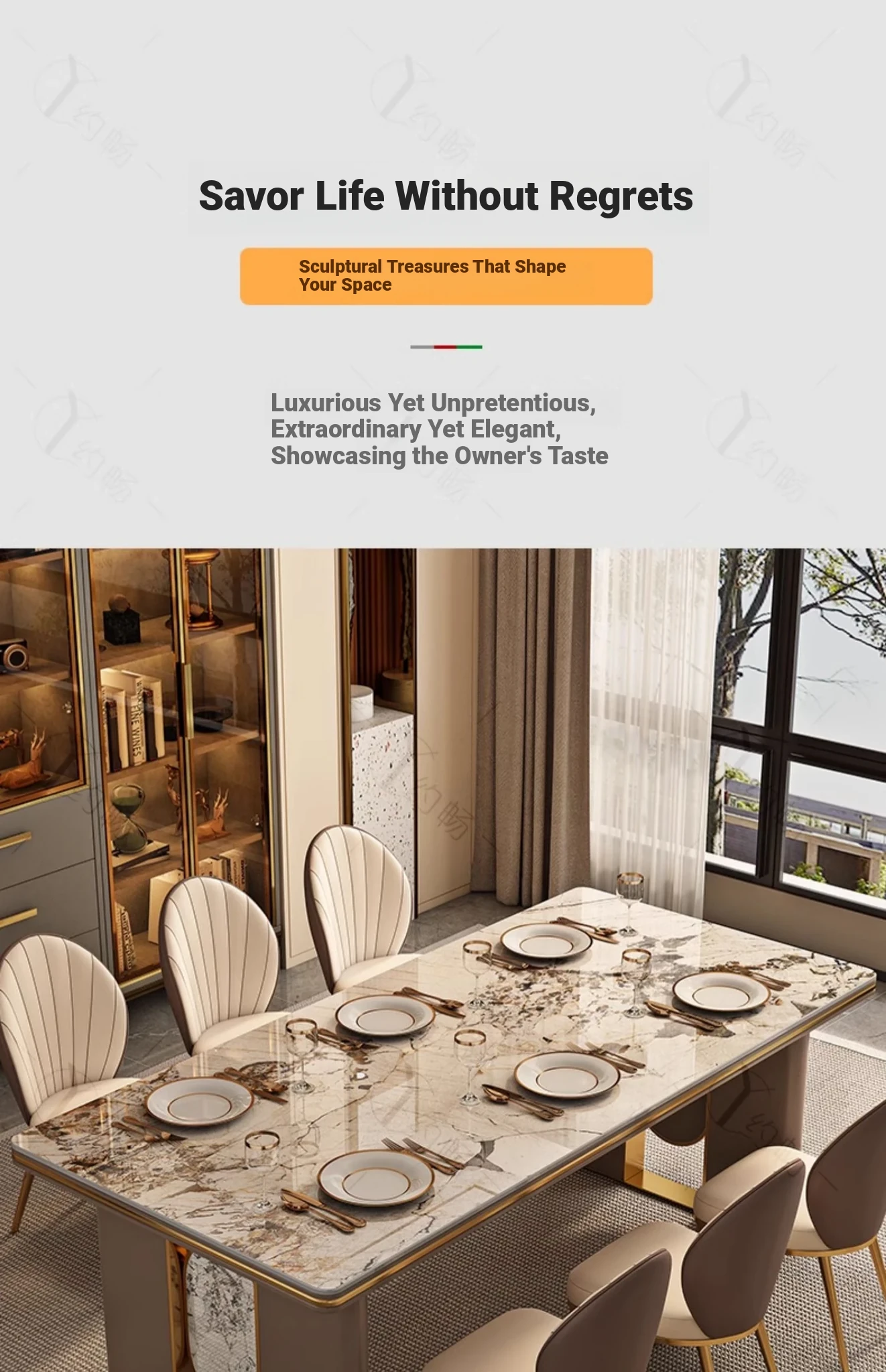 2025 New Luxury Dining Table and Chair Set – High-End Designer Large Dining Table with Modern Minimalist Glossy Rock Surface