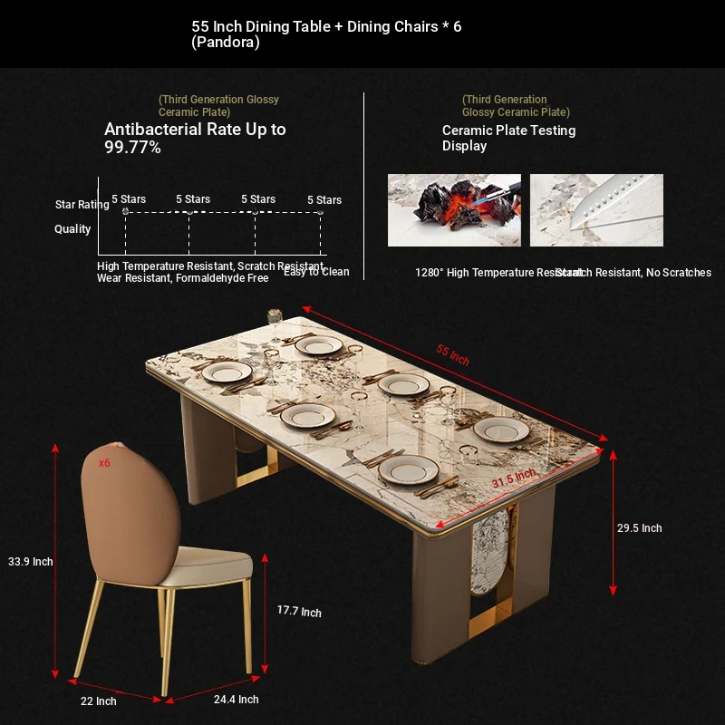 55.12 in Dining Table [Pandora Rock Plate] + Dining Chair * 6
