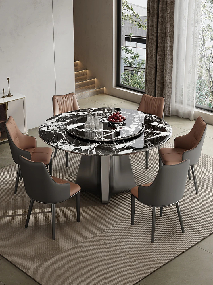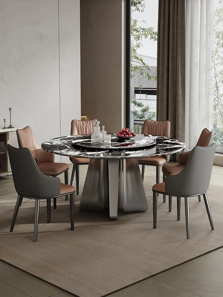 Elegant Microcrystalline Stone Dining Table and Chair Set - Minimalist Round Marble Table for Small Spaces, Featuring Ultra-Crystalline Design for Home Dining