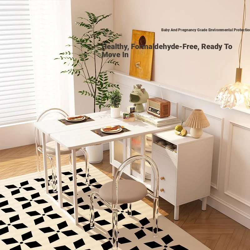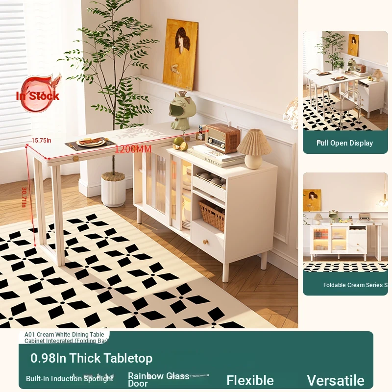 "Free Shipping to Hong Kong! Multi-Functional Foldable Dining Table with Rotating Bar Counter - Perfect for Small Spaces in Creamy Style!"