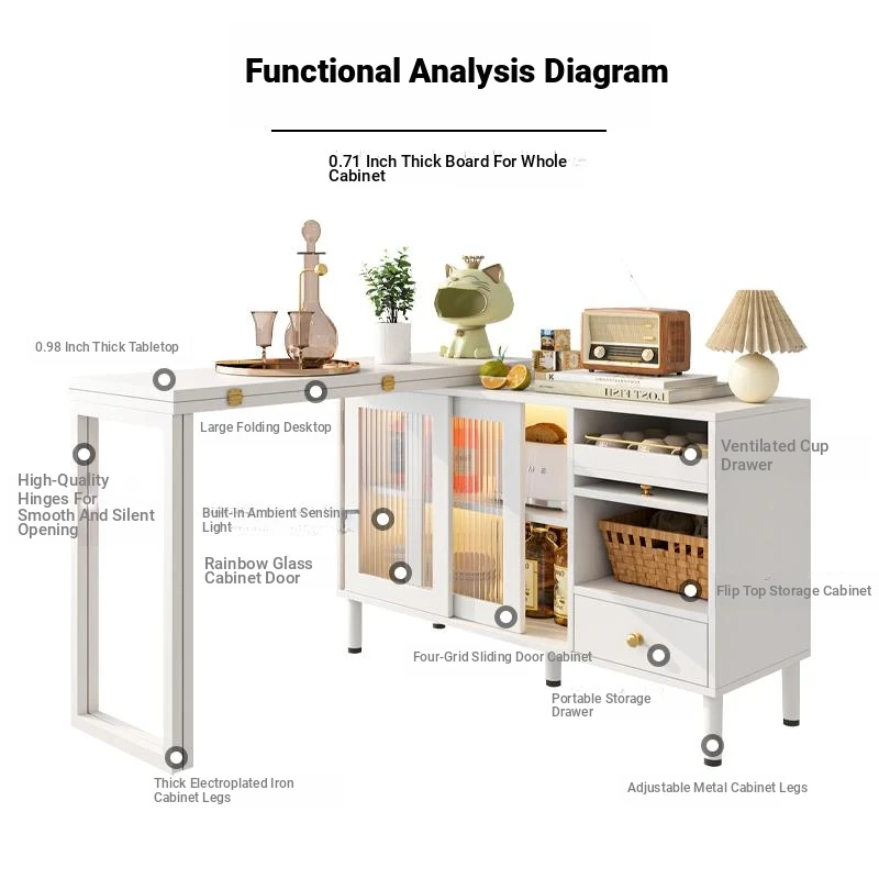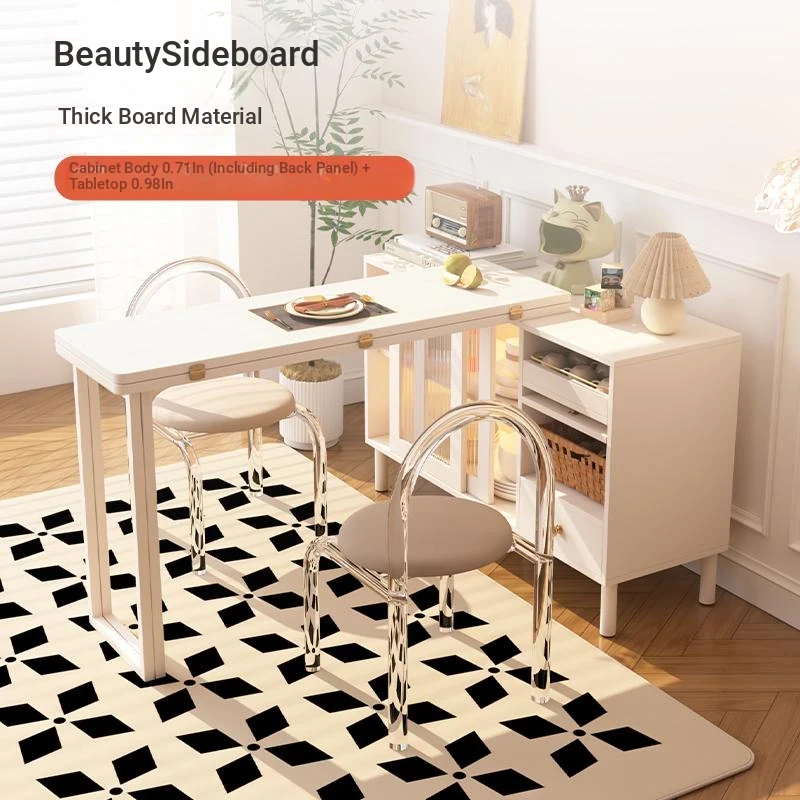 [ENF grade full eucalyptus multi-layer solid wood] puff 2 relief white dining table cabinet integrated (Foldable bar)