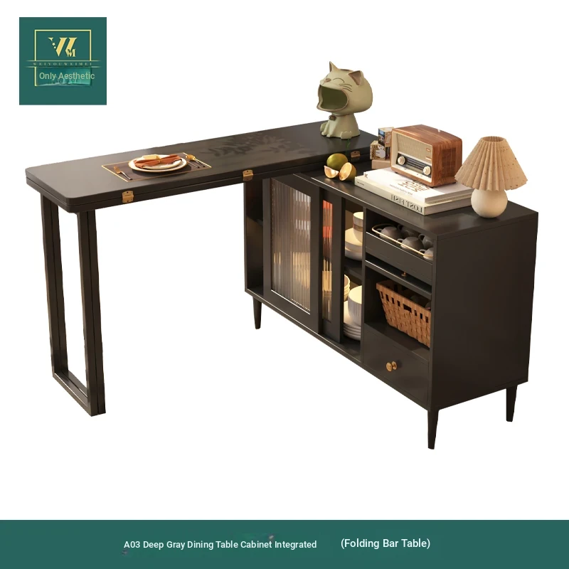 [ENF] puff 3 dark gray dining table cabinet integrated (Foldable bar)