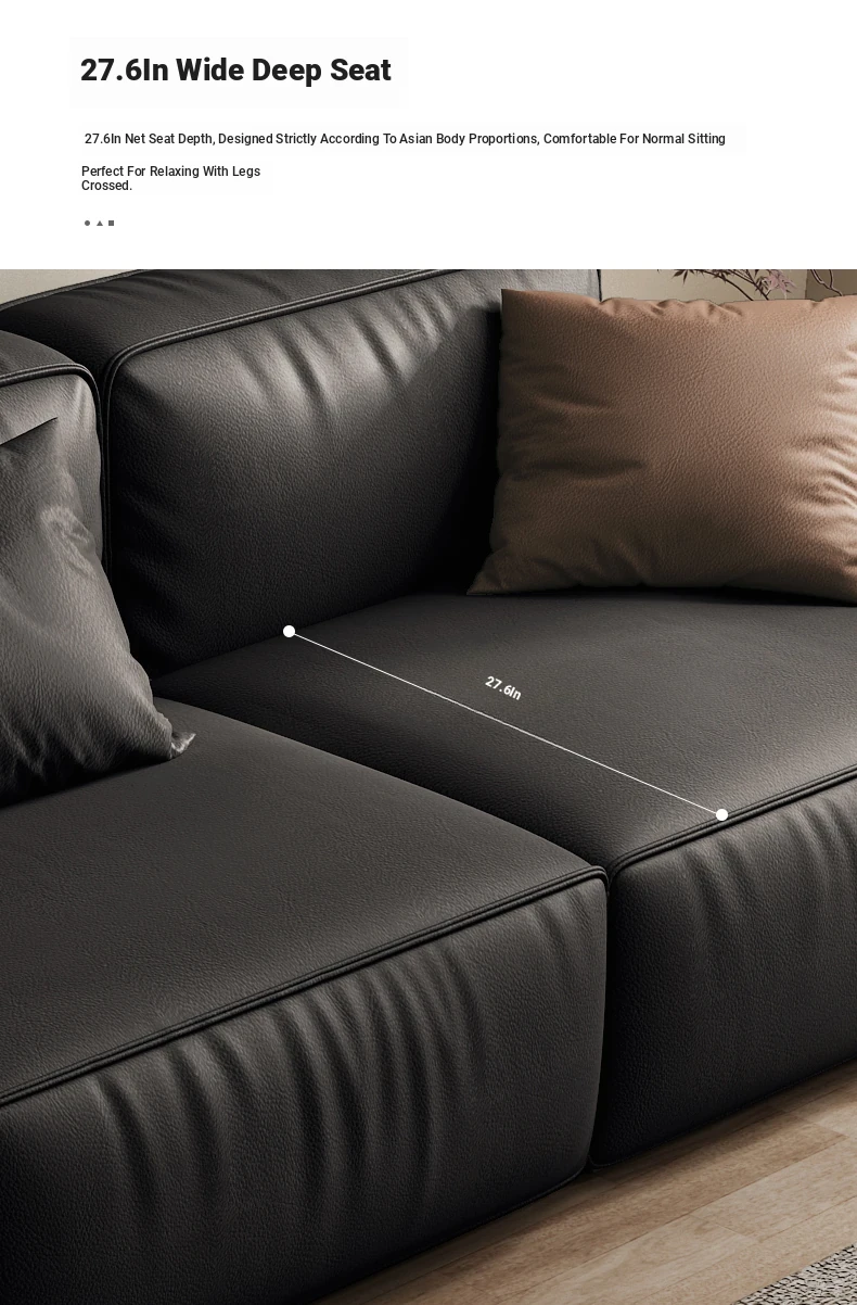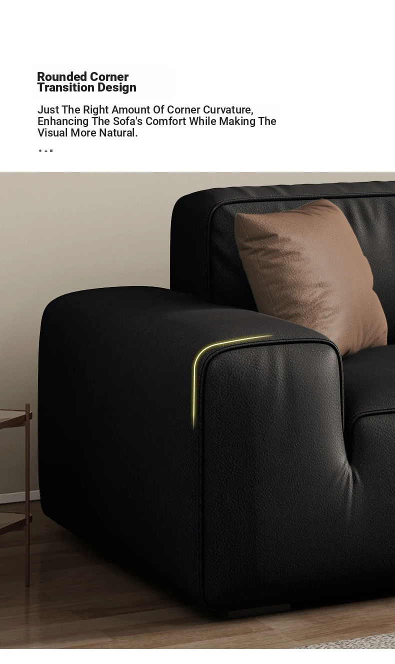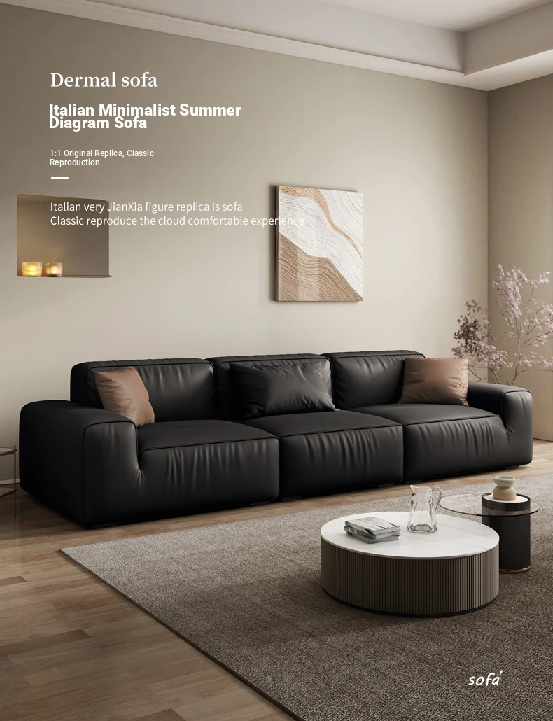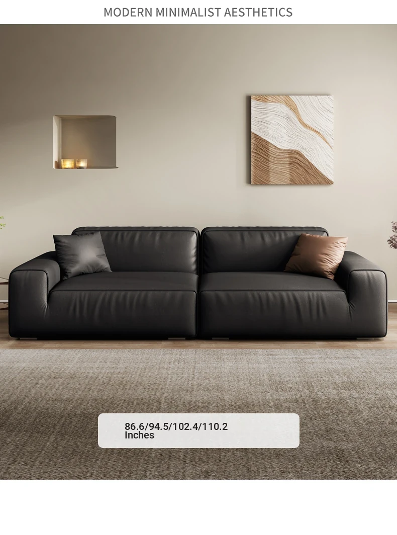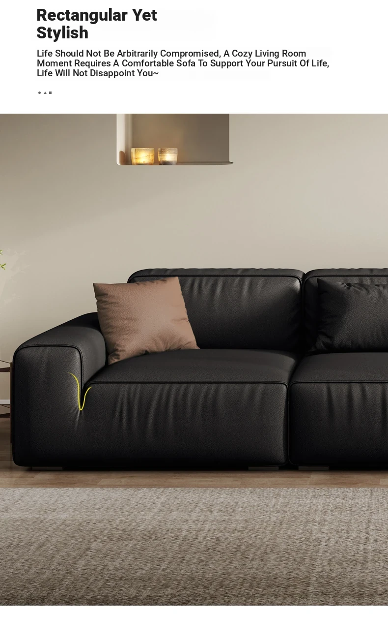 Italian Minimalist Genuine Leather Sofa - Luxurious Top-Grain Cowhide Living Room Couch in Black - Chic Tofu-Block Design for a Modern Touch