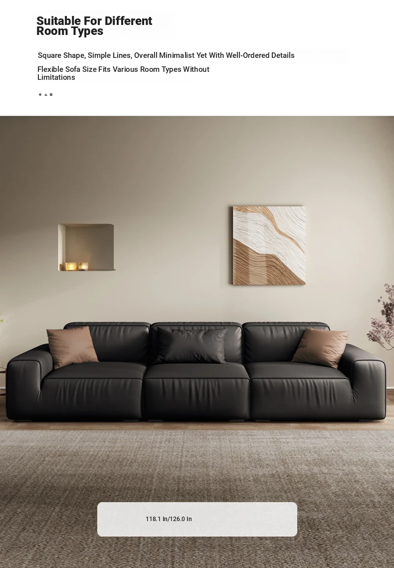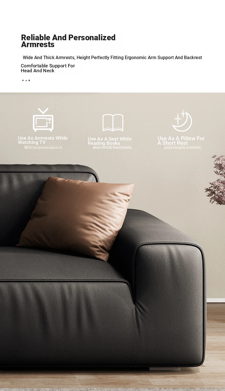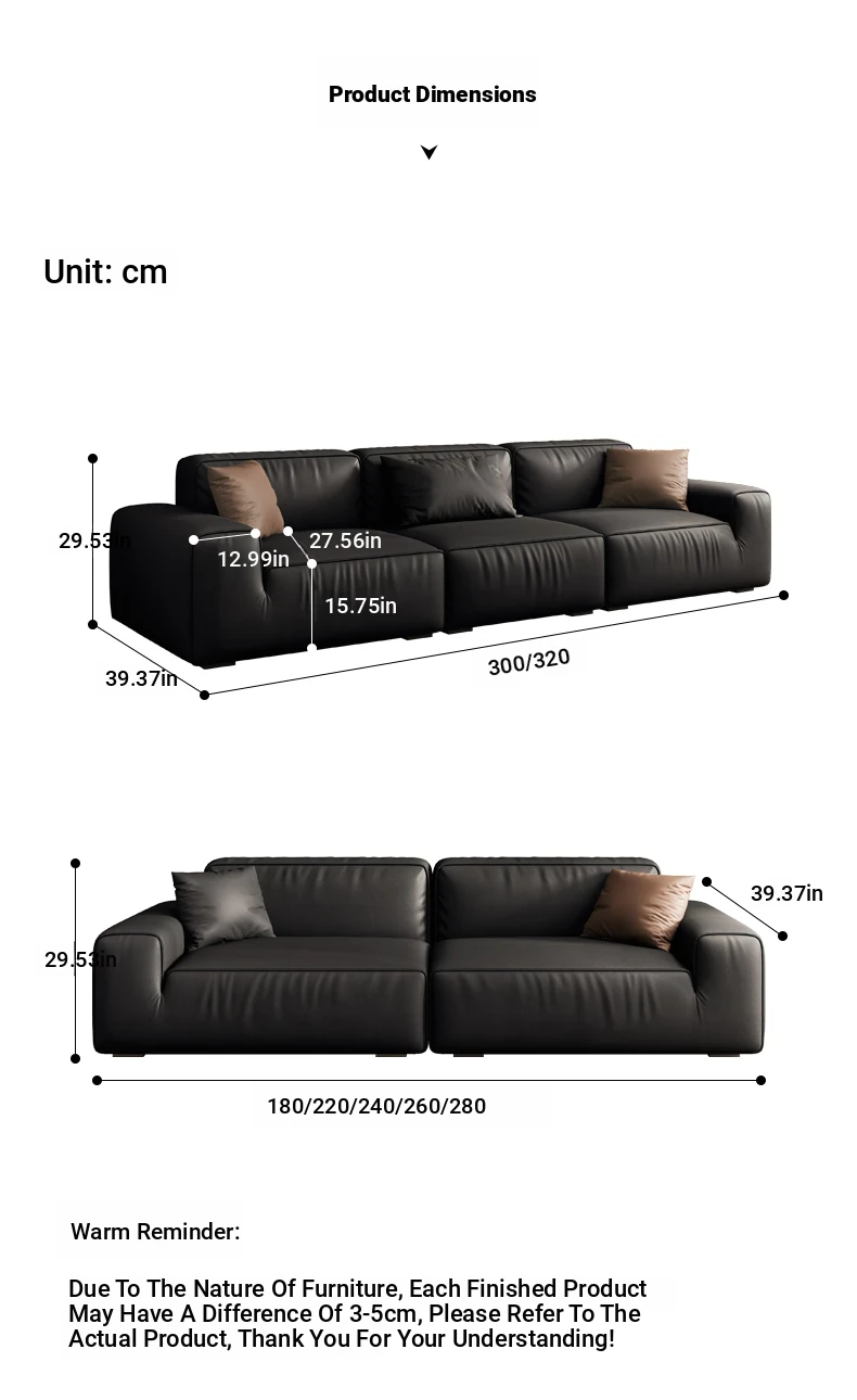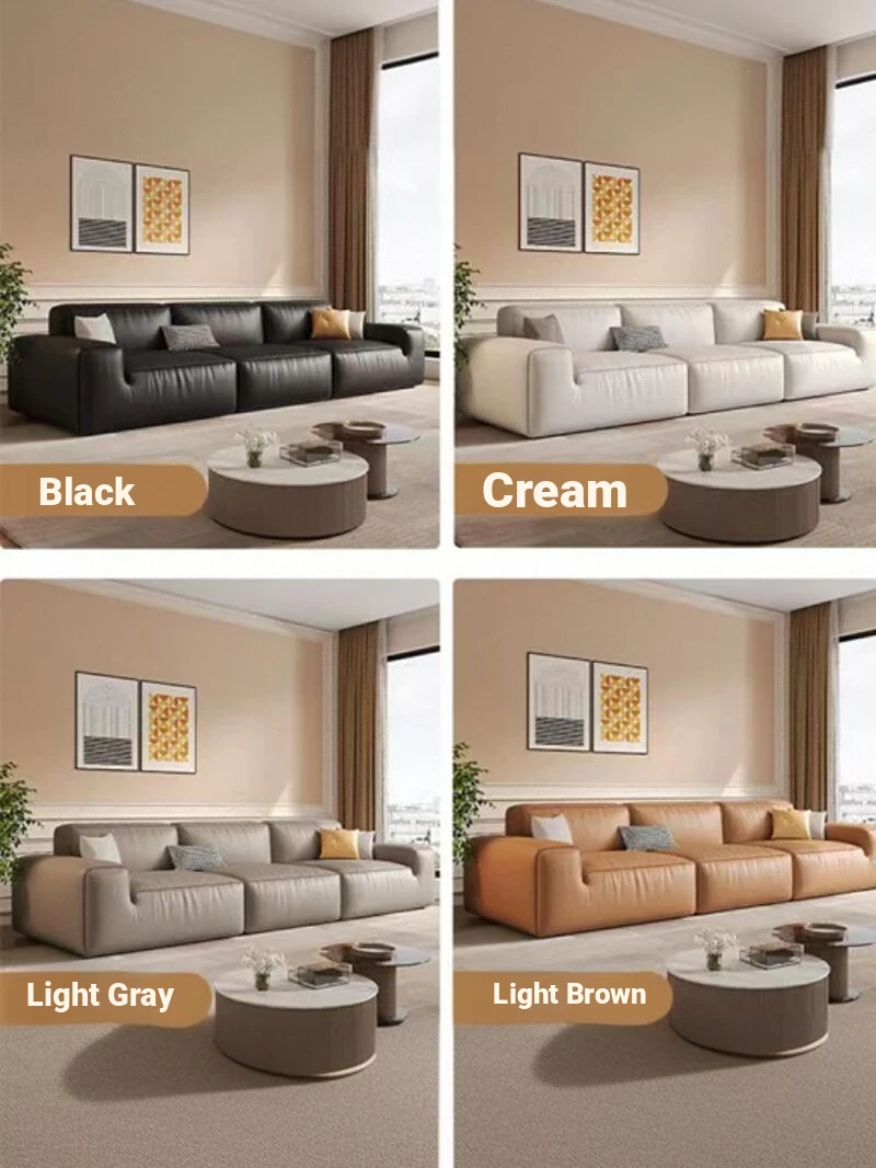 Italian Minimalist Genuine Leather Sofa - Luxurious Top-Grain Cowhide Living Room Couch in Black - Chic Tofu-Block Design for a Modern Touch