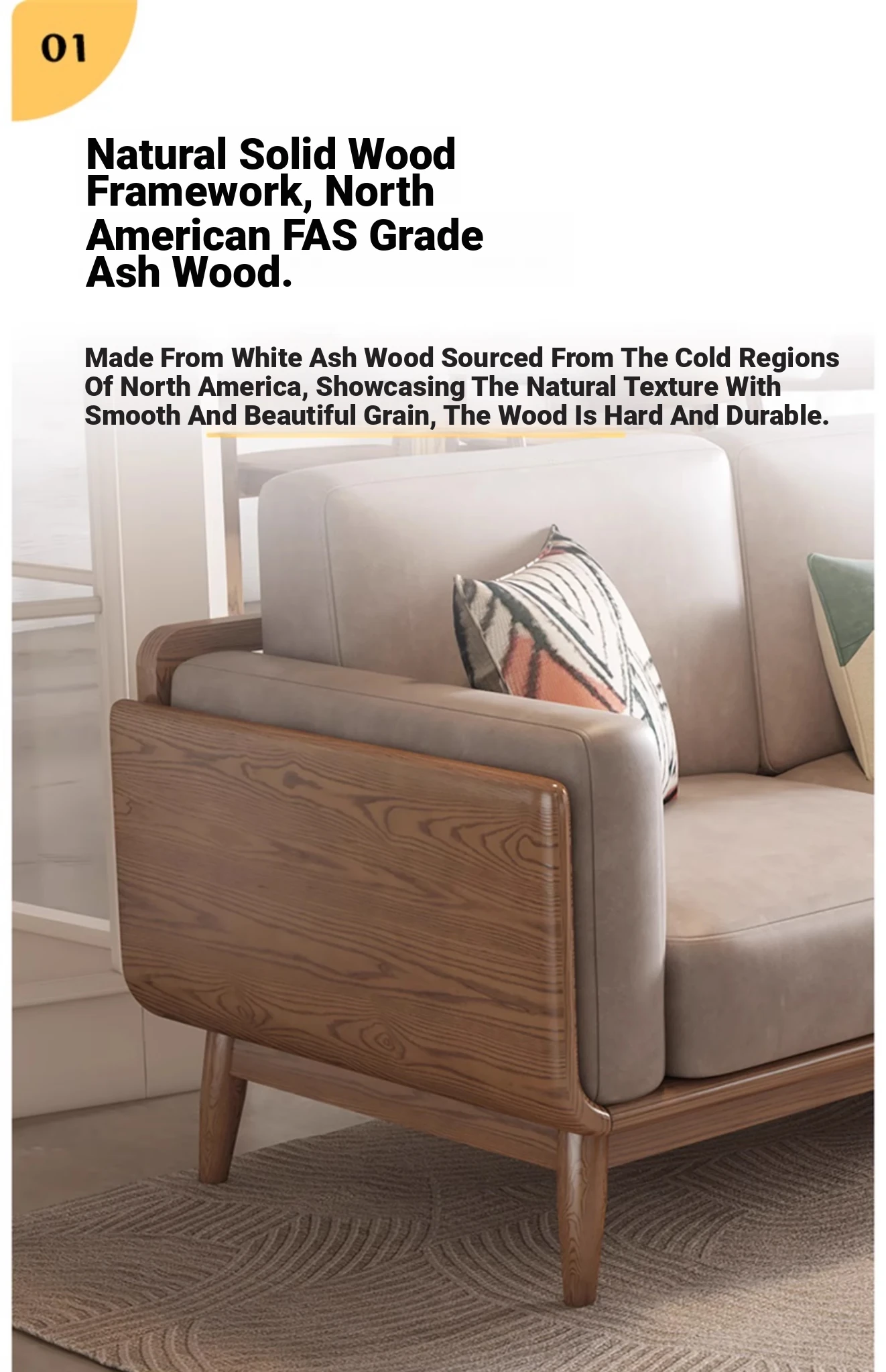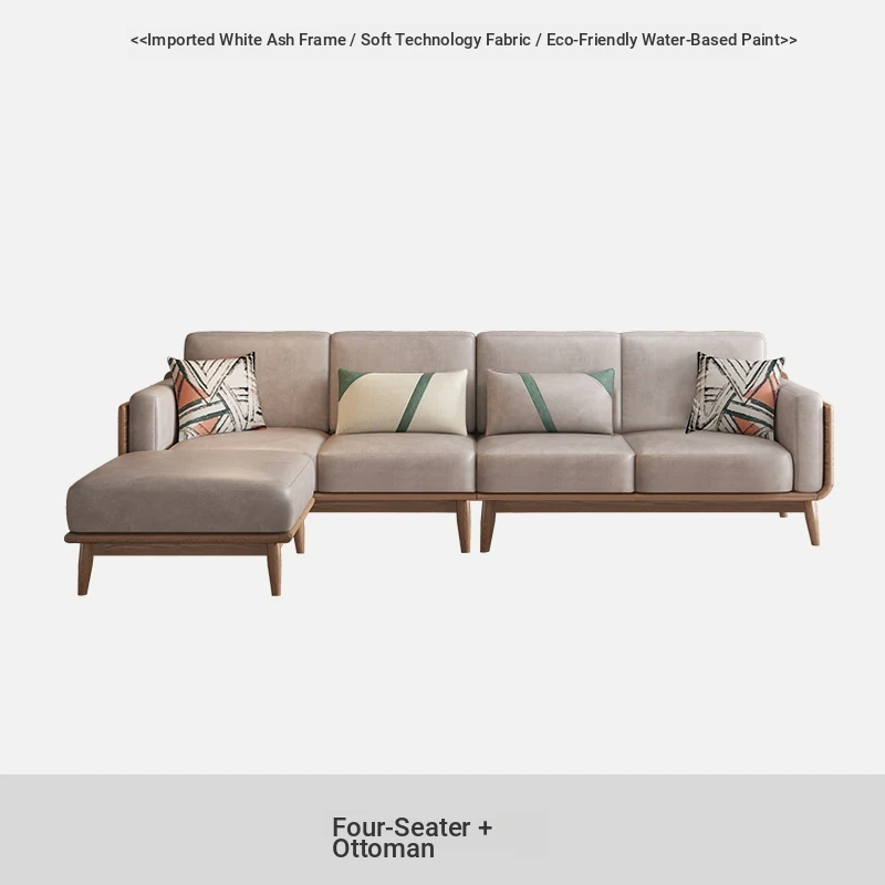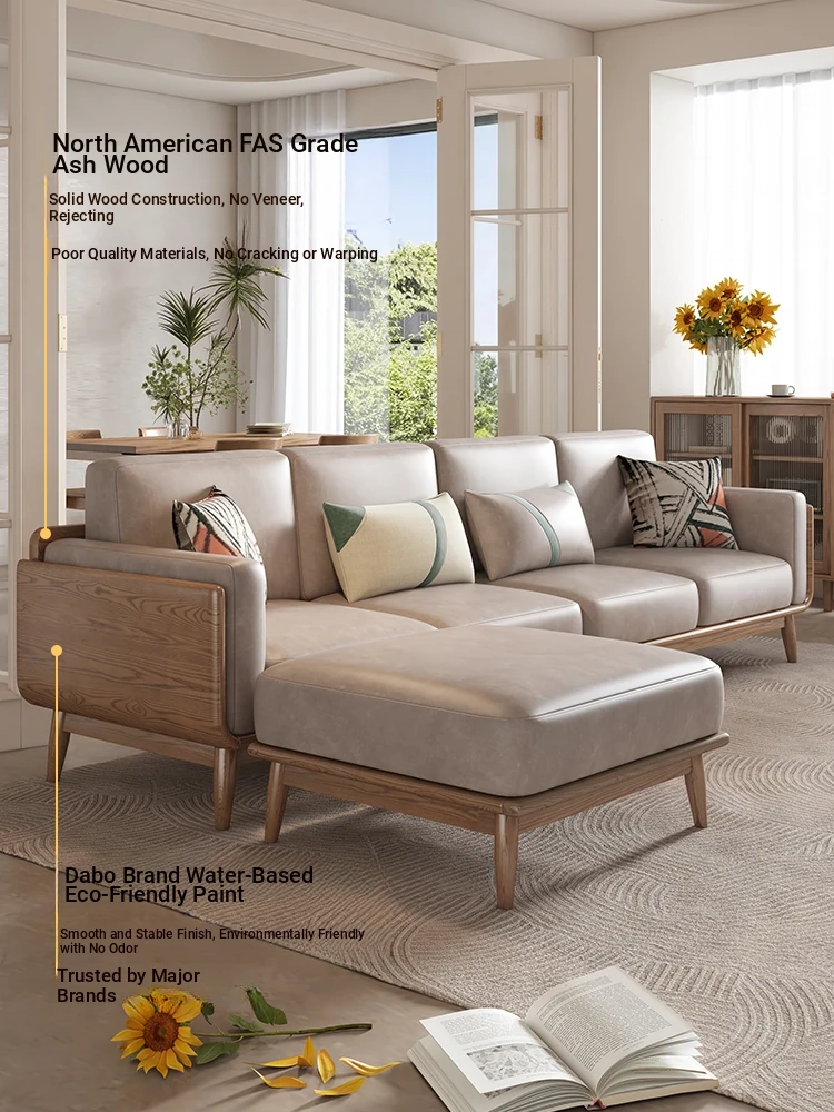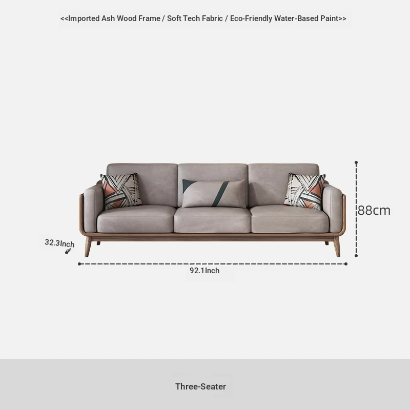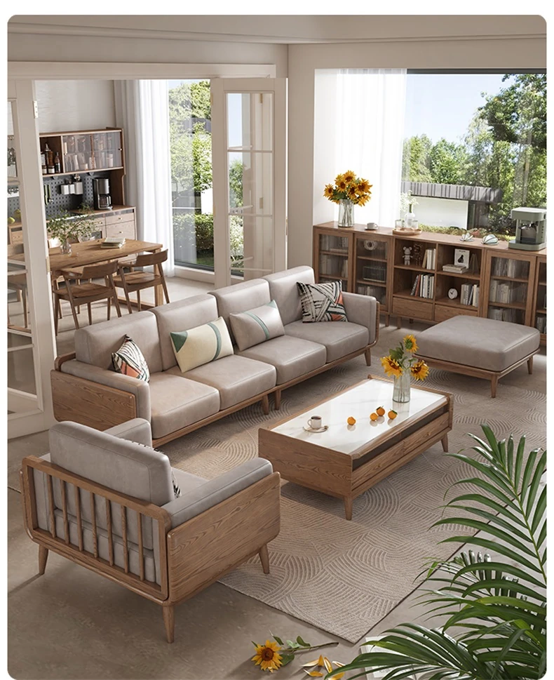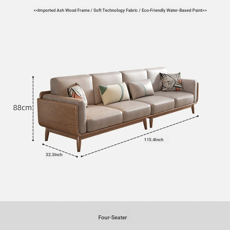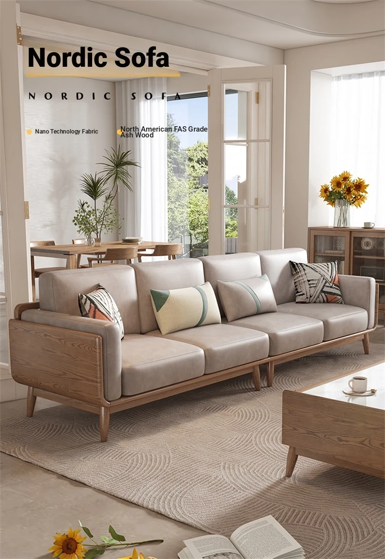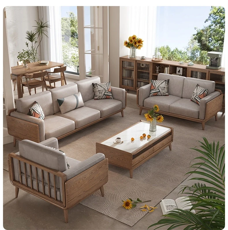 Japanese-Style Solid Wood Sofa Set - Nordic Minimalist Living Room Furniture for Small Spaces, Made of Ash Wood, Comfortable 3-Seat Sofa Perfect for Cozy Homes