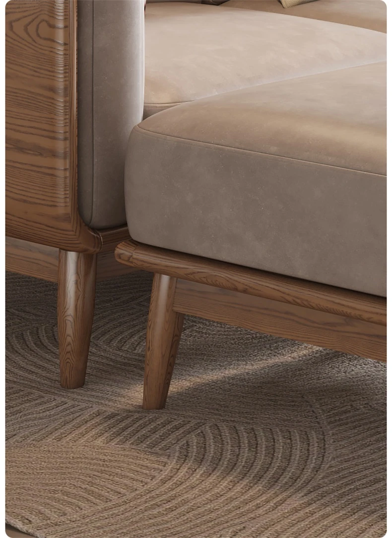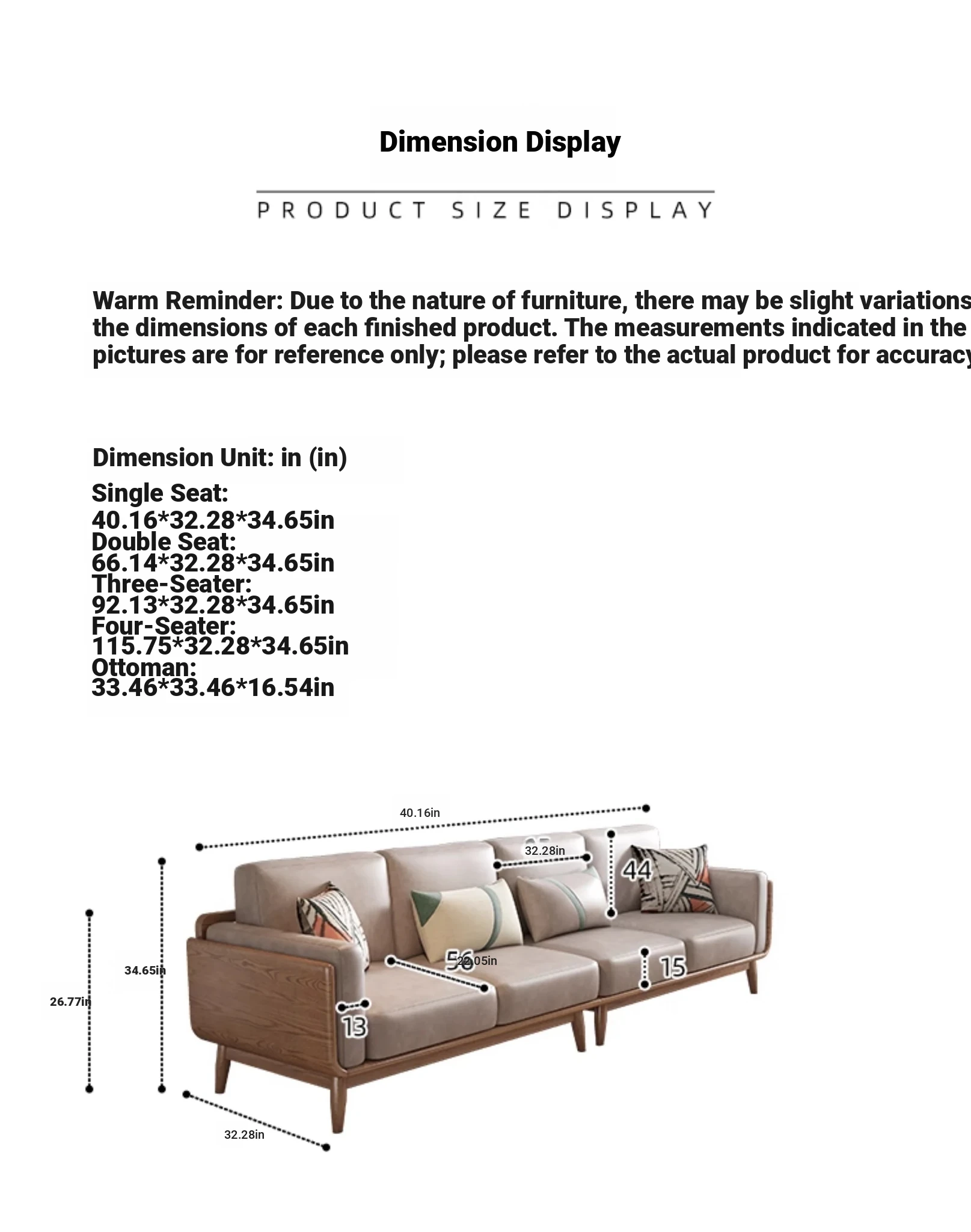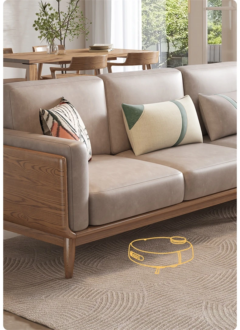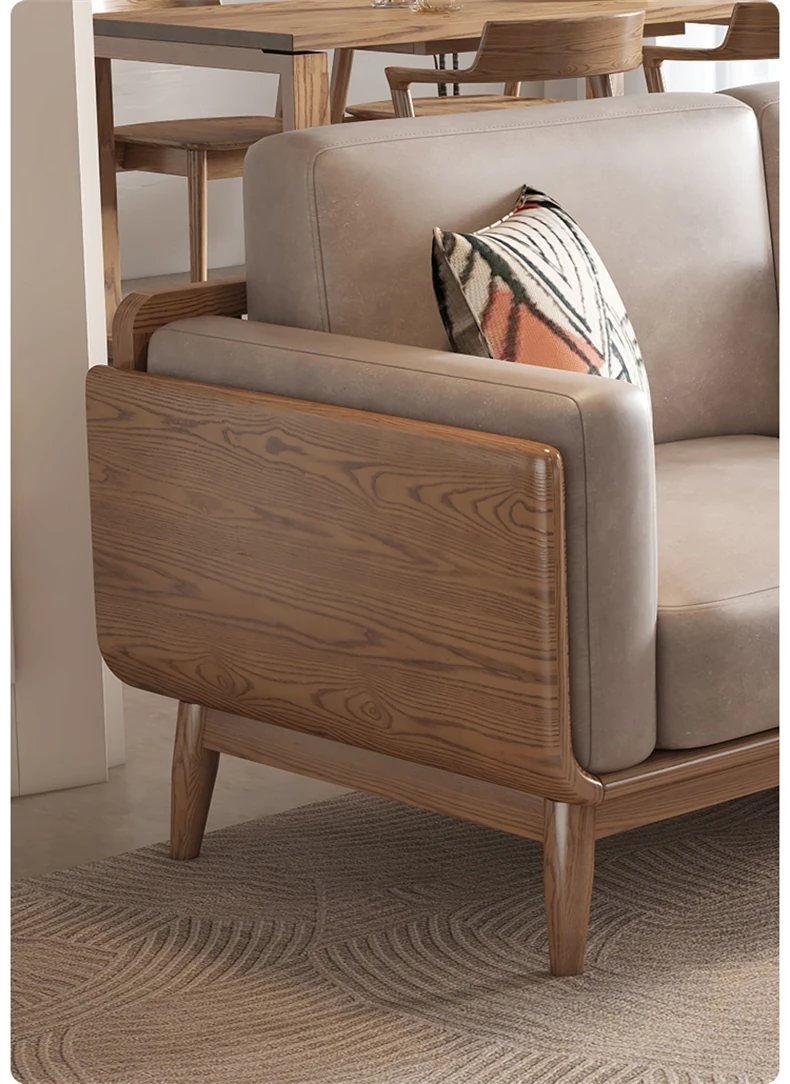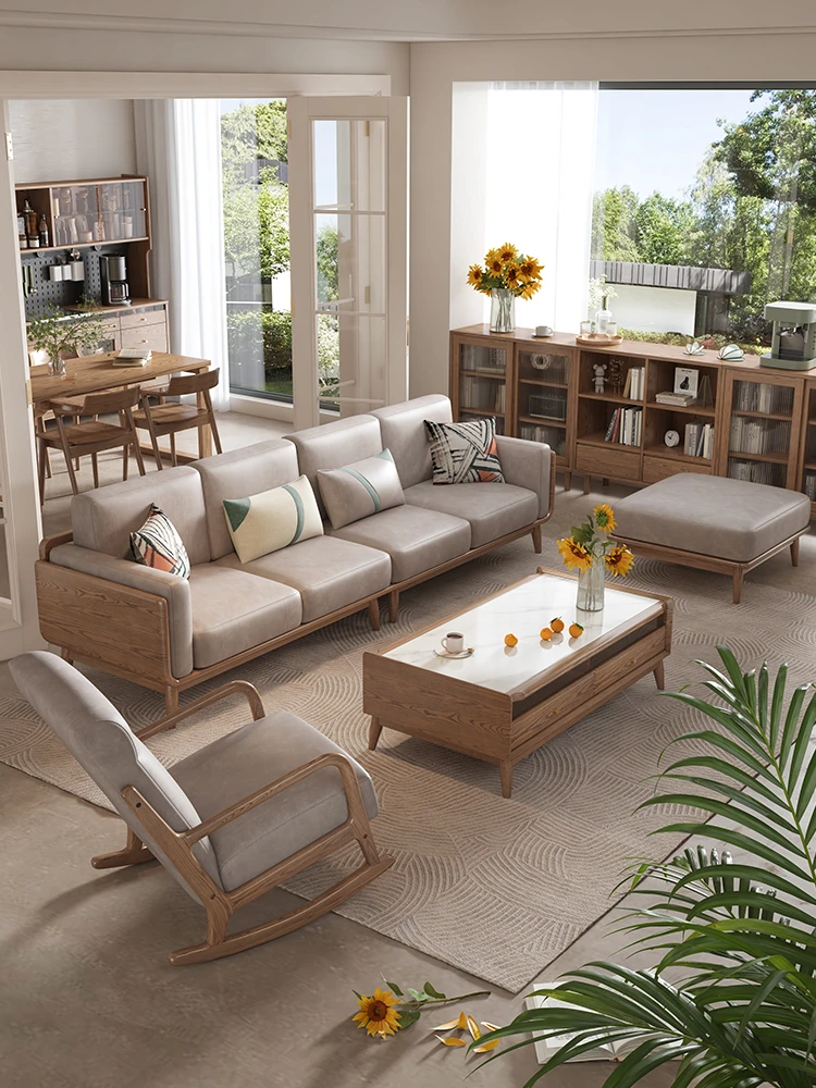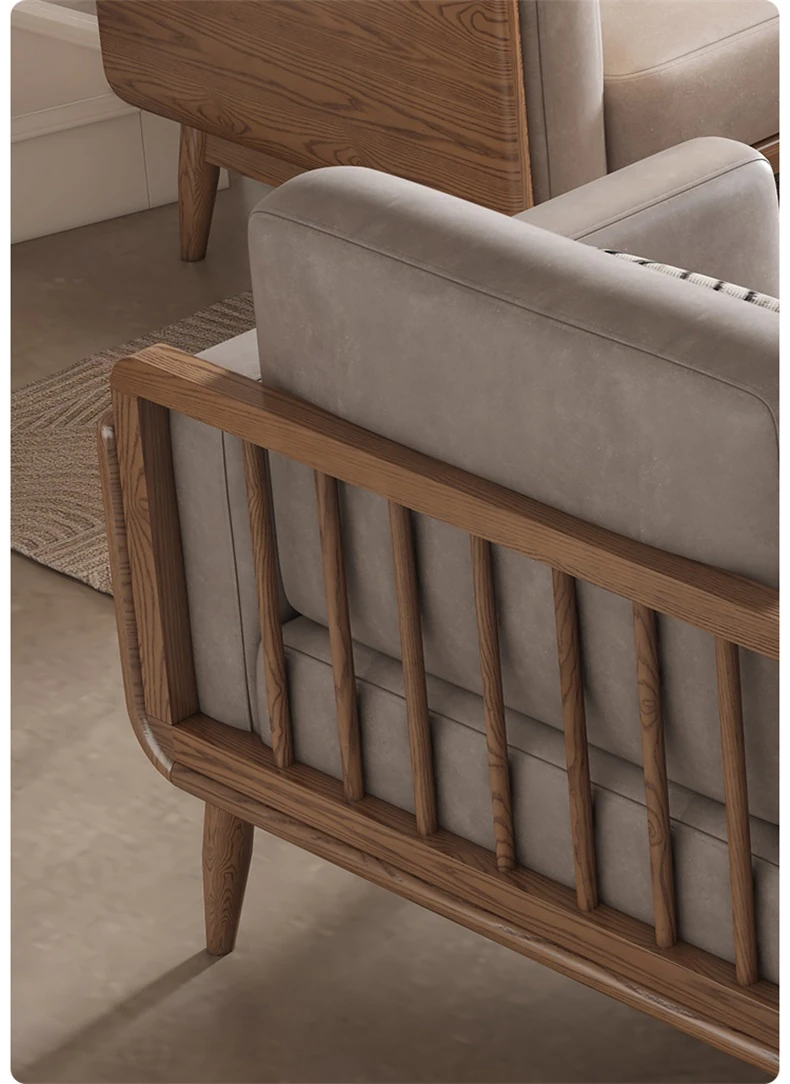 Japanese-Style Solid Wood Sofa Set - Nordic Minimalist Living Room Furniture for Small Spaces, Made of Ash Wood, Comfortable 3-Seat Sofa Perfect for Cozy Homes