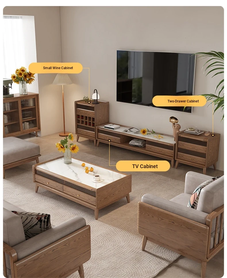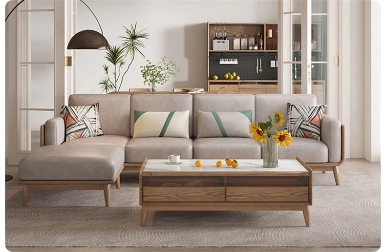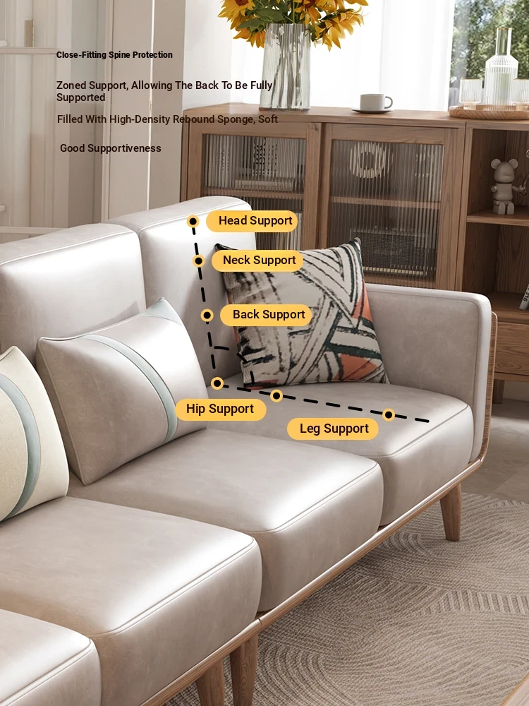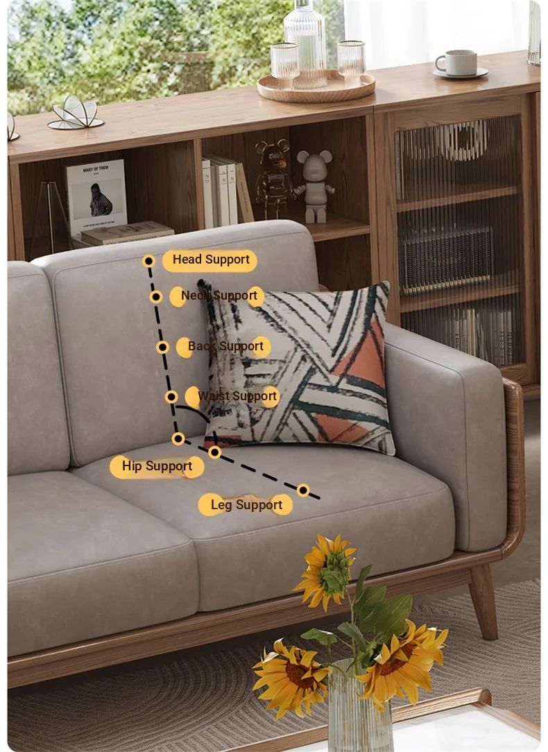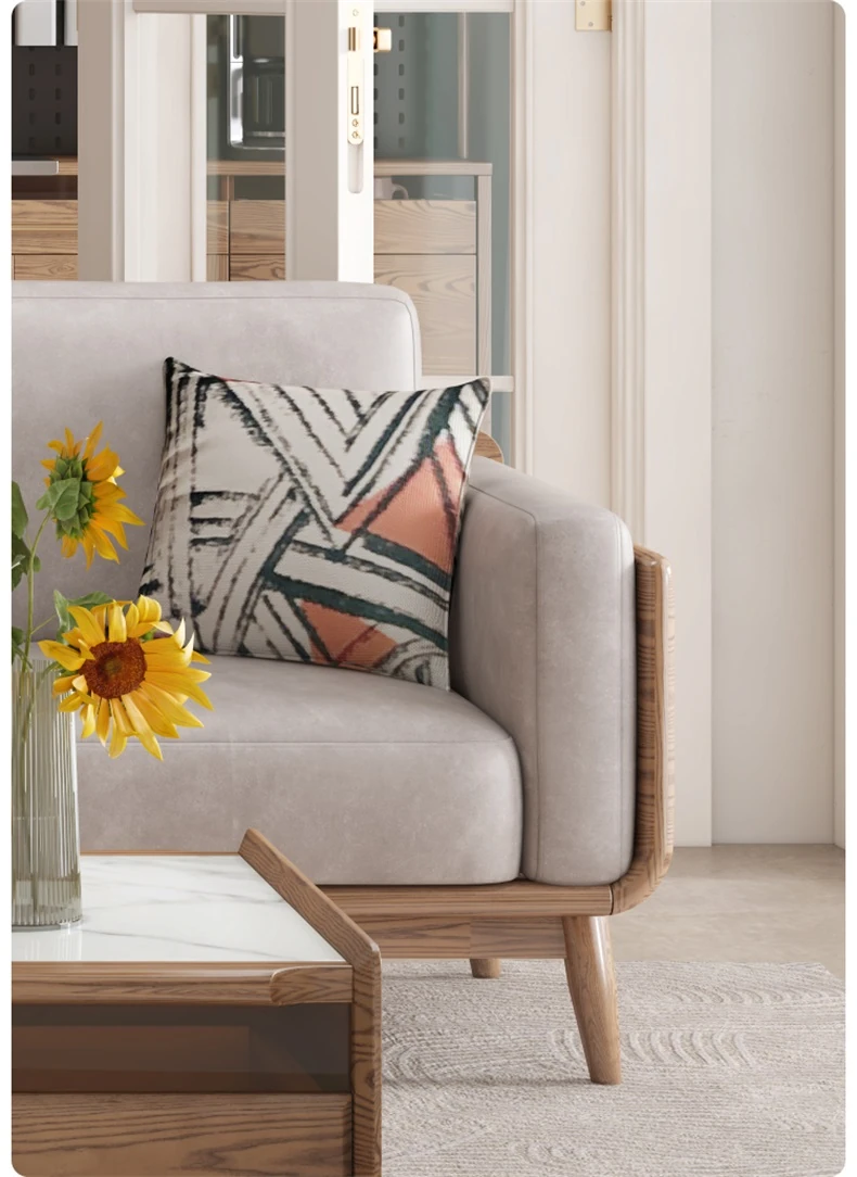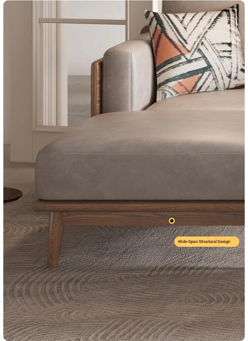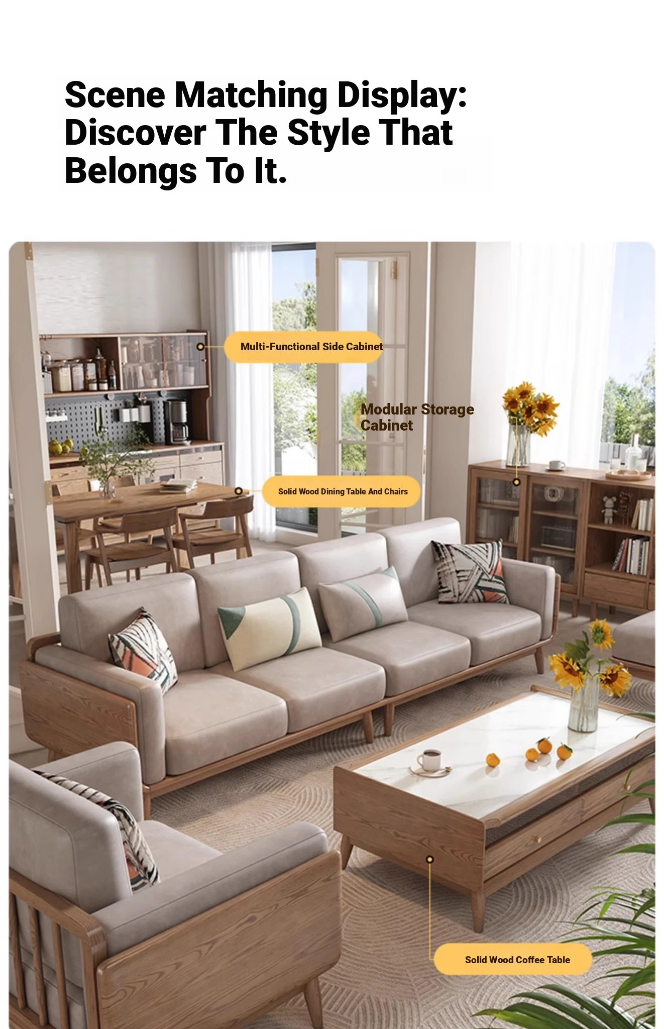 Japanese-Style Solid Wood Sofa Set - Nordic Minimalist Living Room Furniture for Small Spaces, Made of Ash Wood, Comfortable 3-Seat Sofa Perfect for Cozy Homes