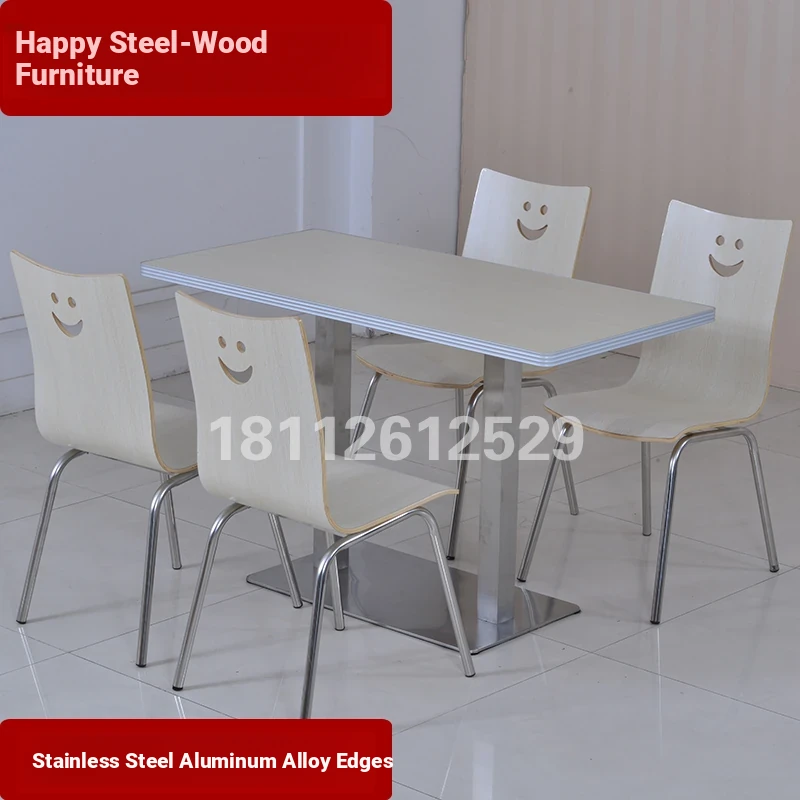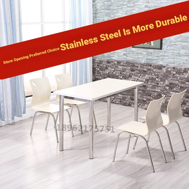 KFC Style Stainless Steel Table and Chair Set for 4-6 People - Perfect for Shaanxi Snacks, Cafeterias, and Restaurants! Durable, Modern Design for Ultimate Dining Experience.