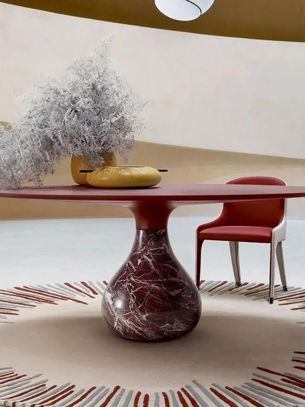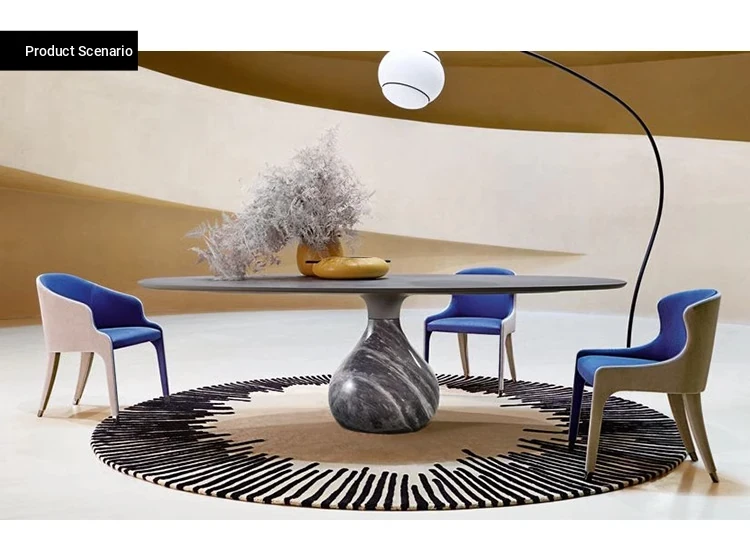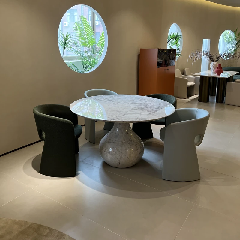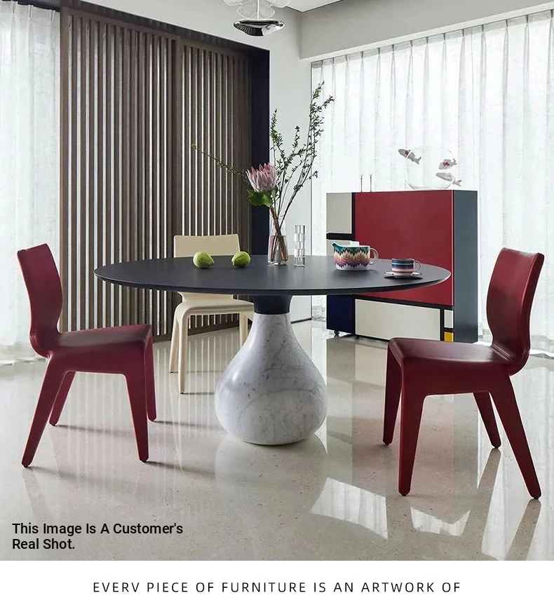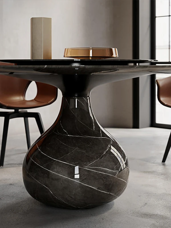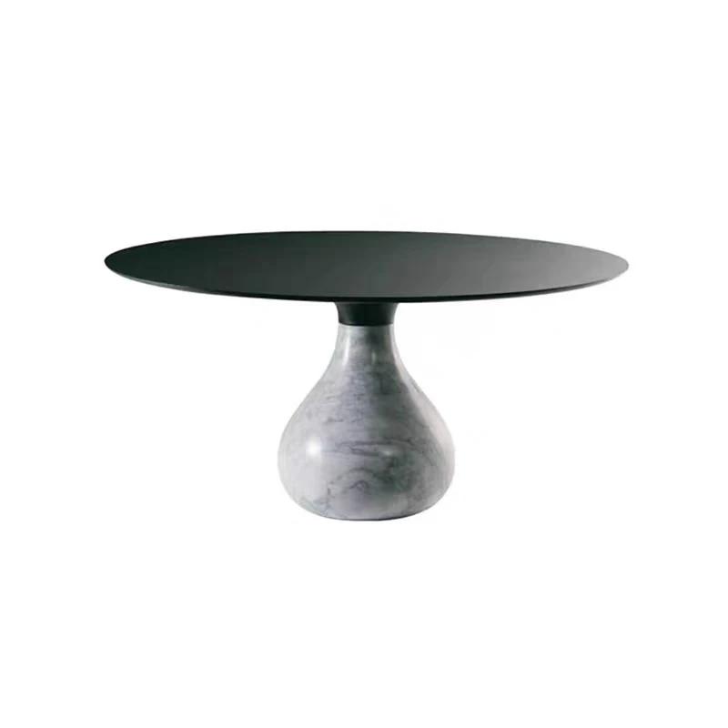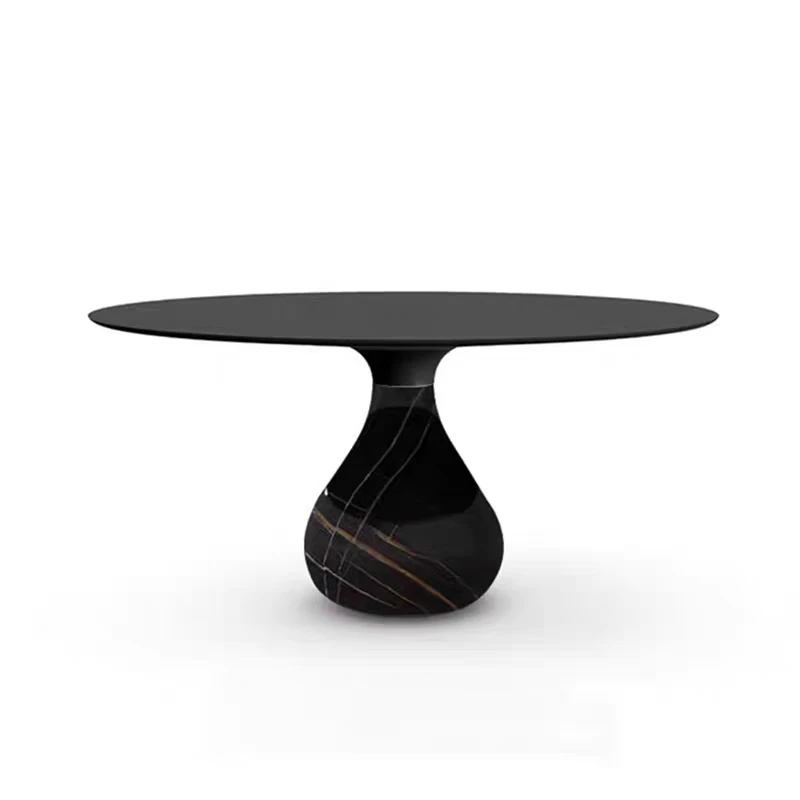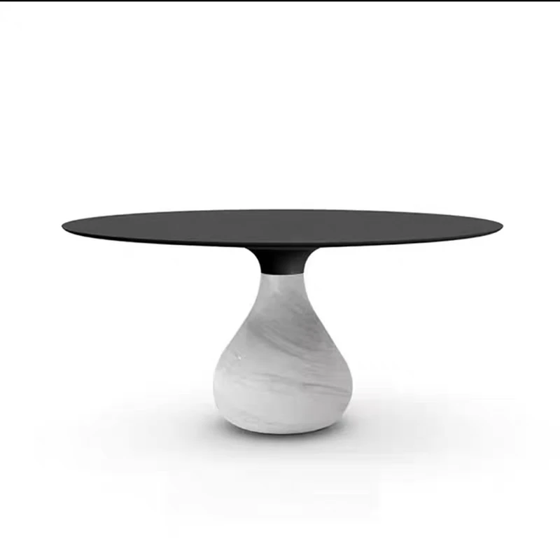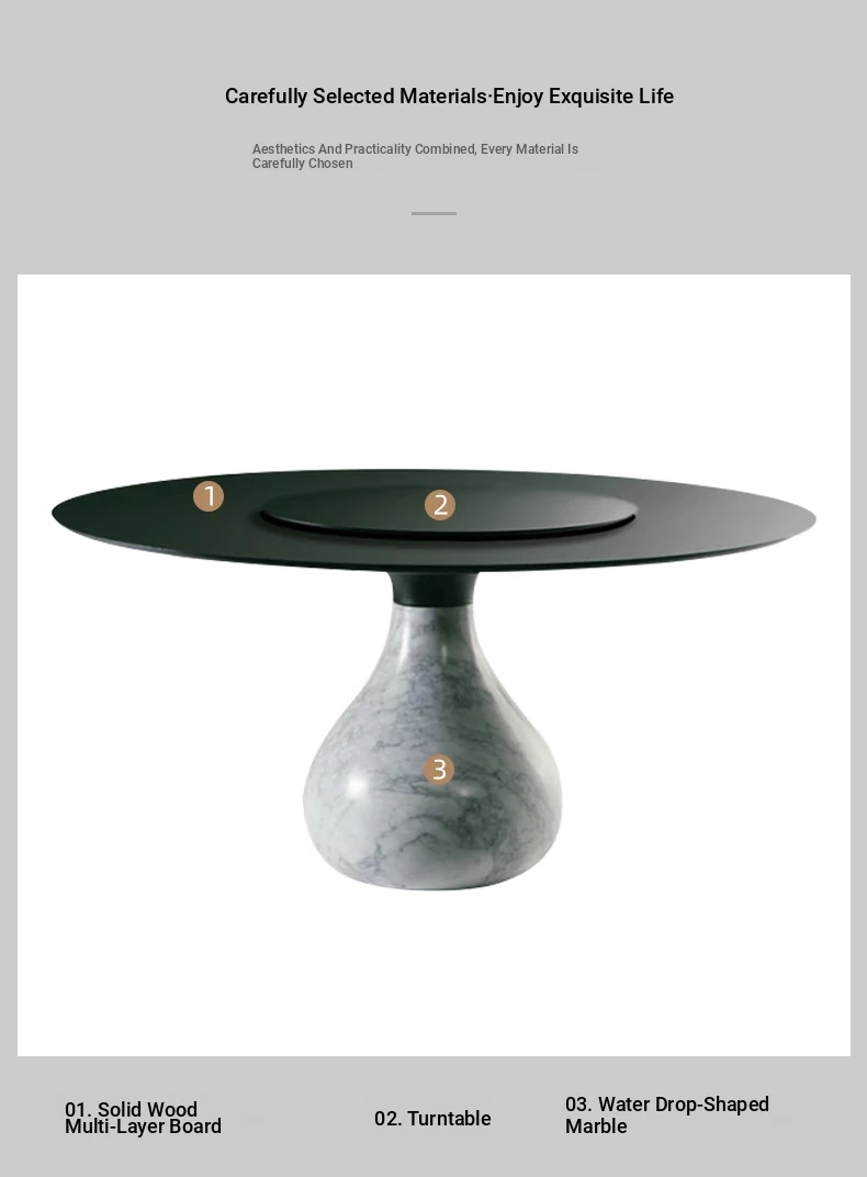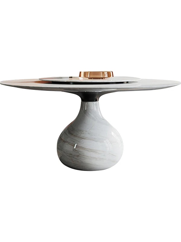 Luxury Natural Marble Dining Table with Rotating Tray - Elegant Italian Designer Drop-shaped Round Table for 6, Perfect for Villa Dining Rooms