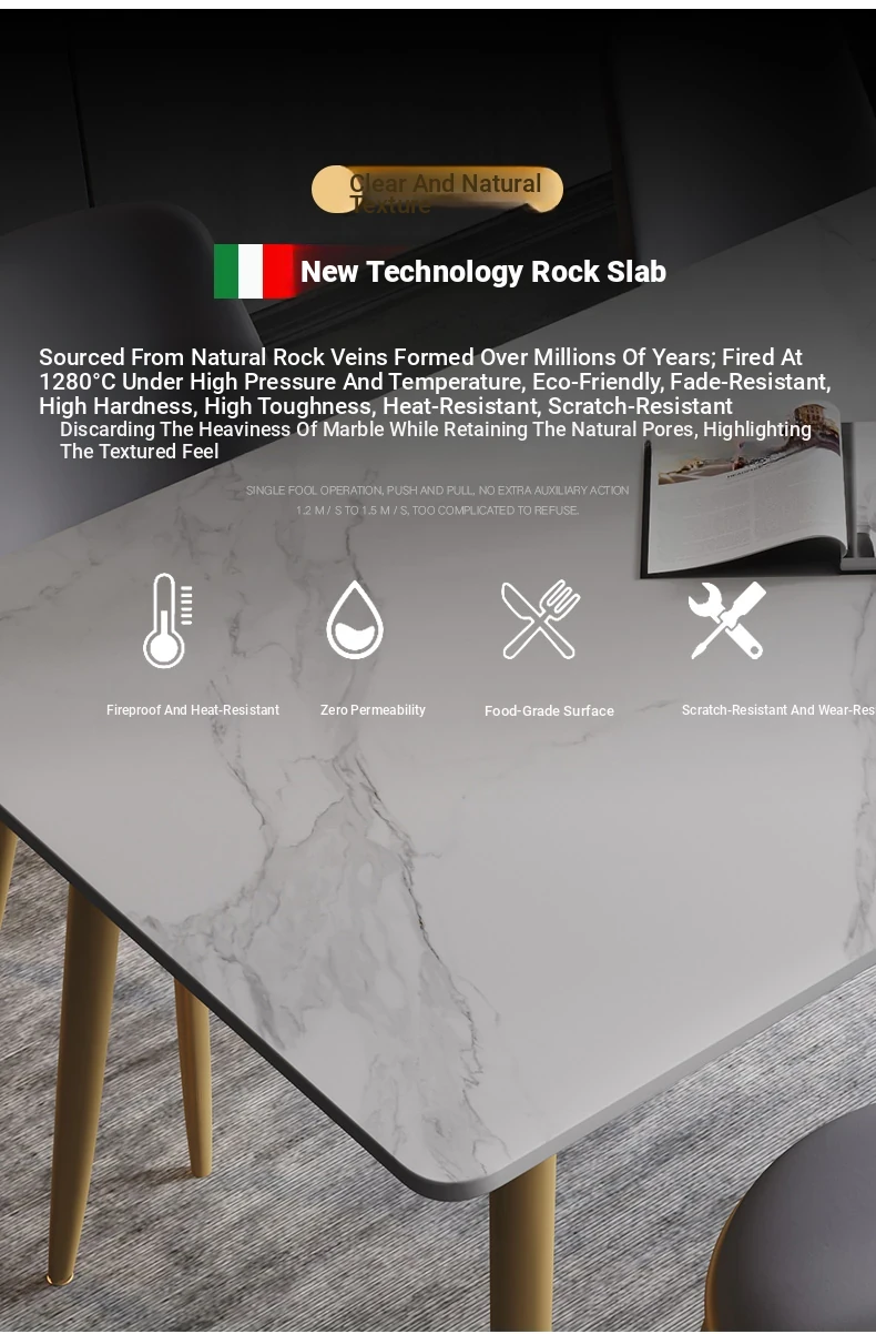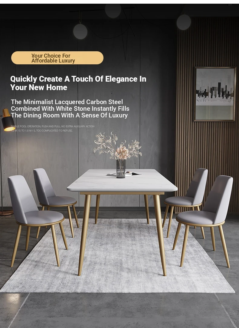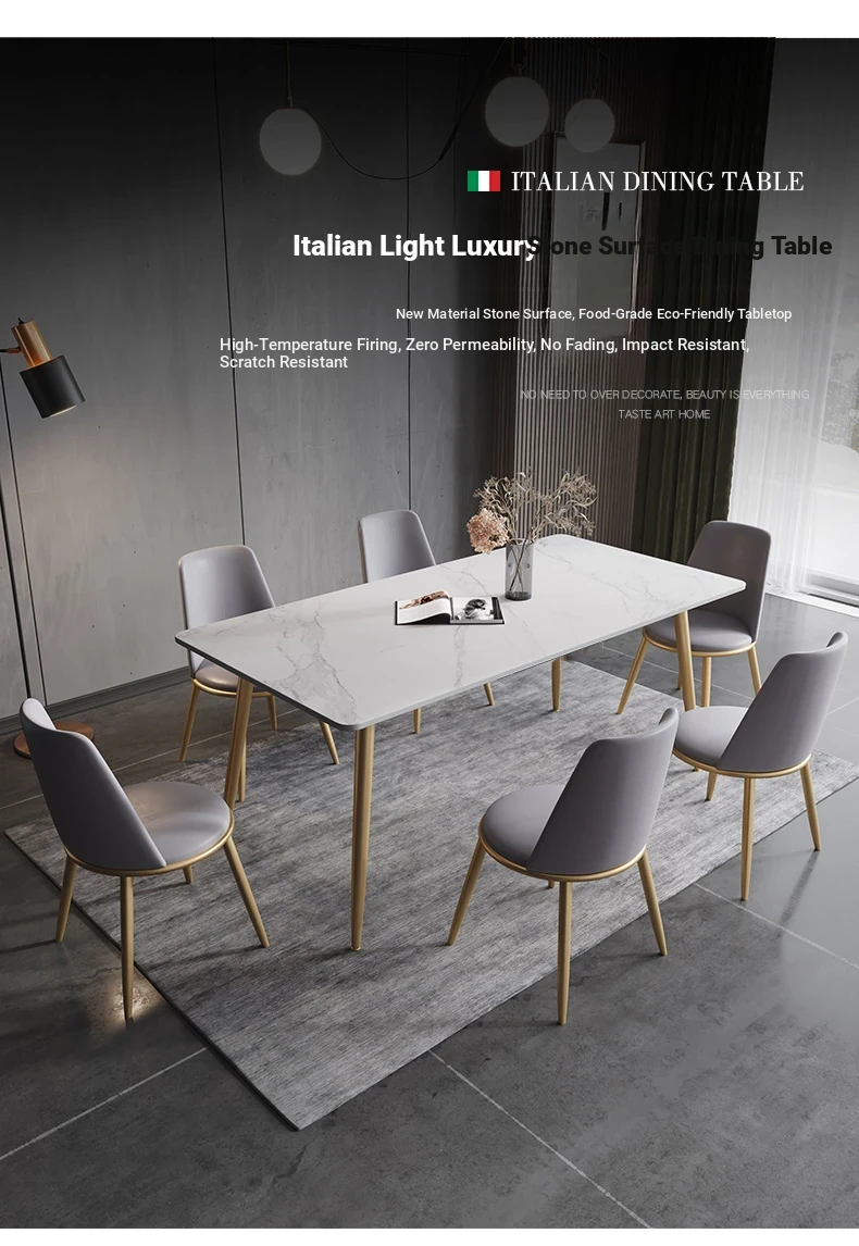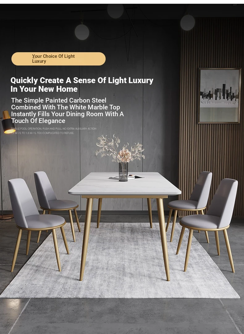 Modern Italian Minimalist Marble Dining Table and Chairs Set - Chic Luxury for Small Spaces, Nordic Style Rectangular Design for Home Use