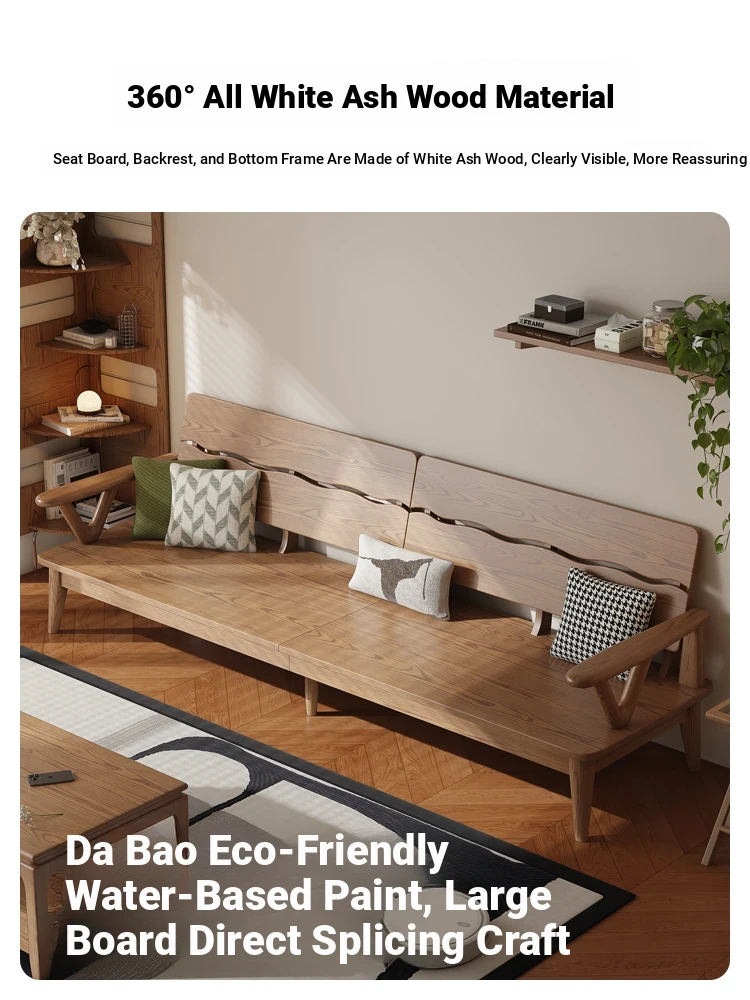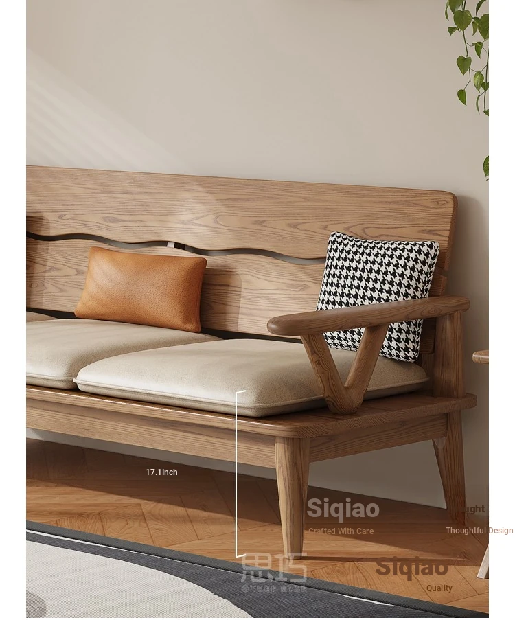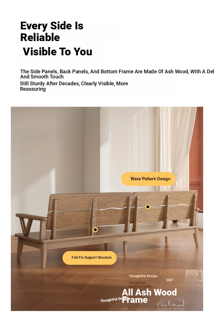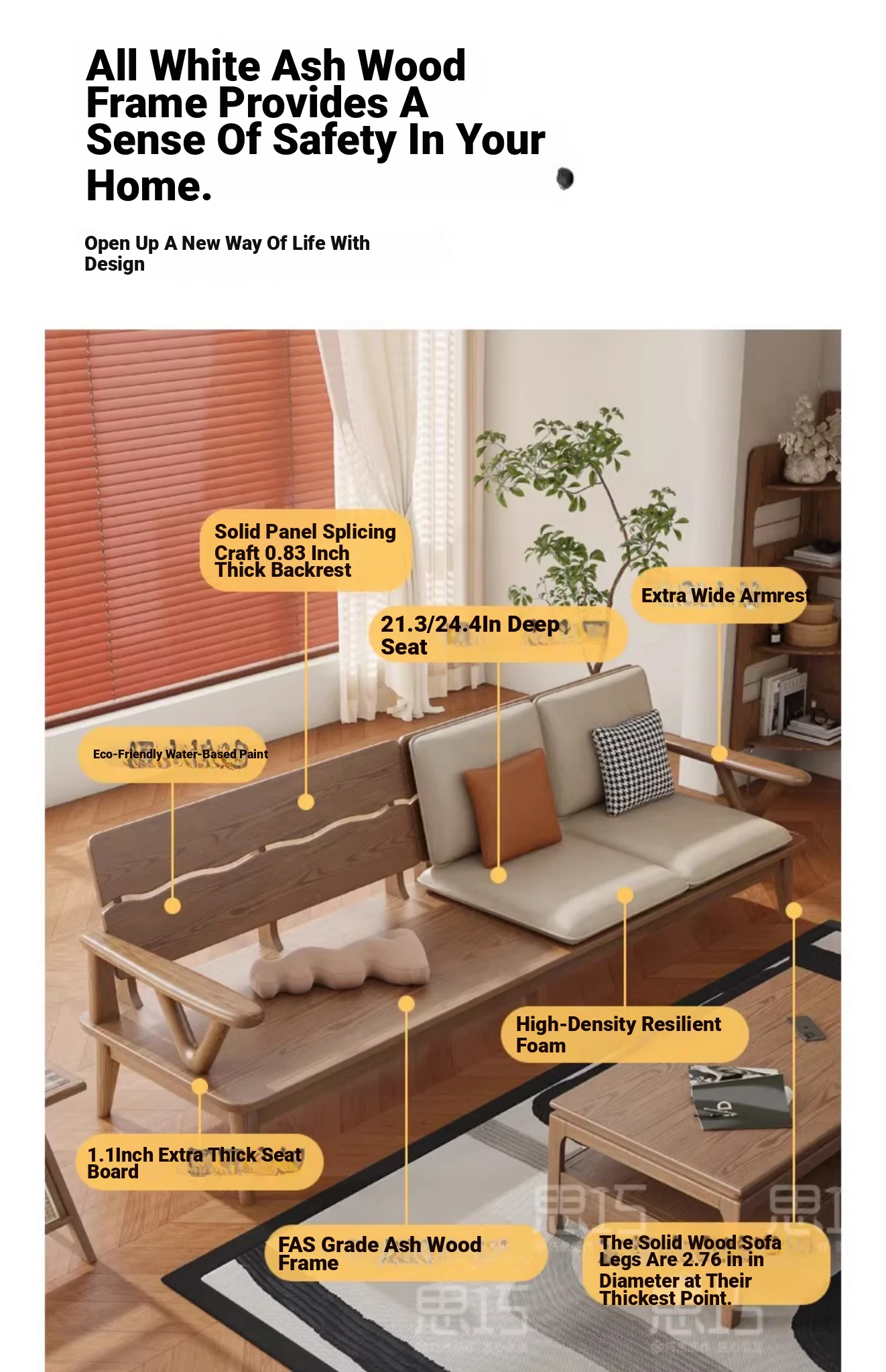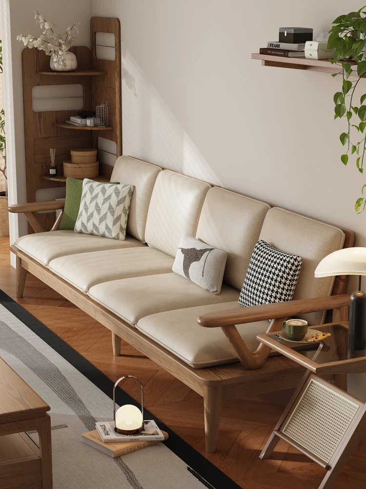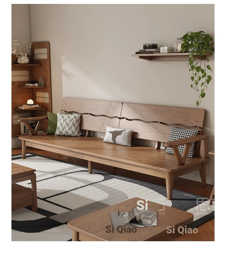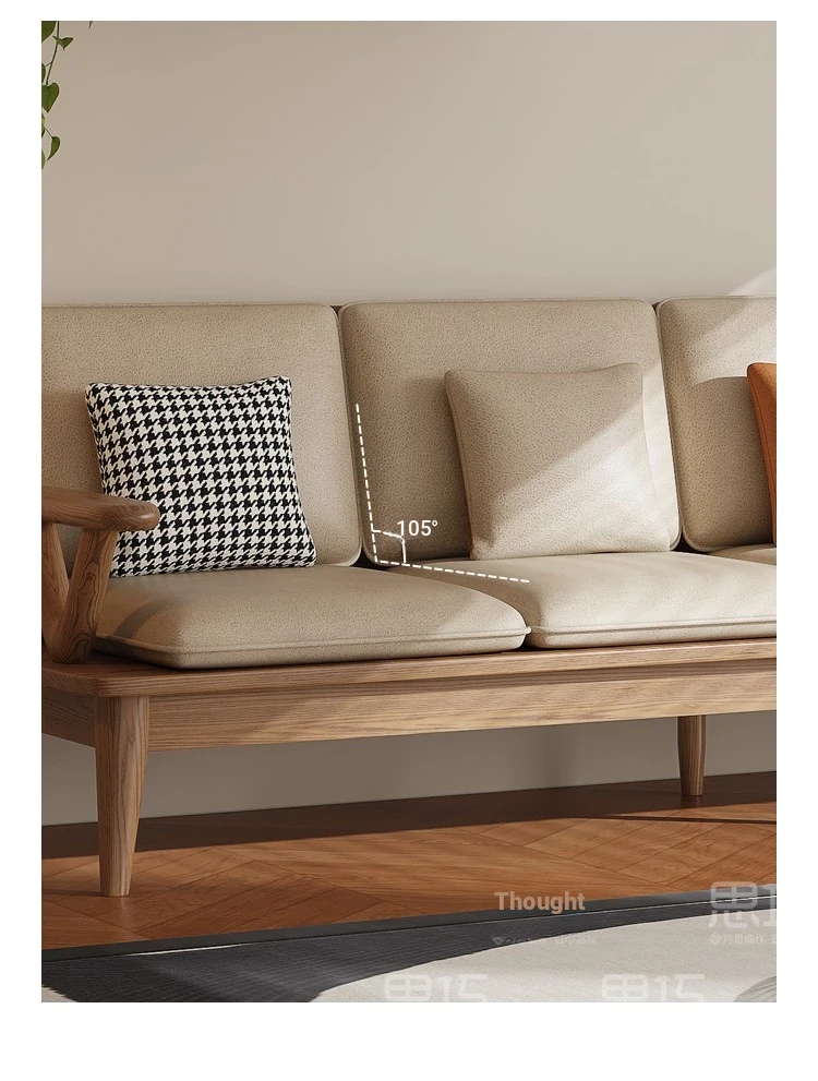 Modern Minimalist Solid Wood Sofa - New Chinese Style for Small Living Rooms, Available in 3-Seater and 4-Seater, Made of Natural Ash Wood for a Chic and Elegant Look.