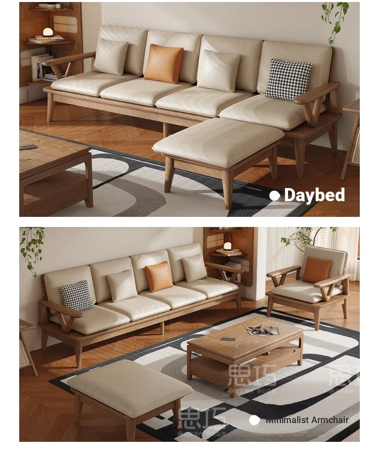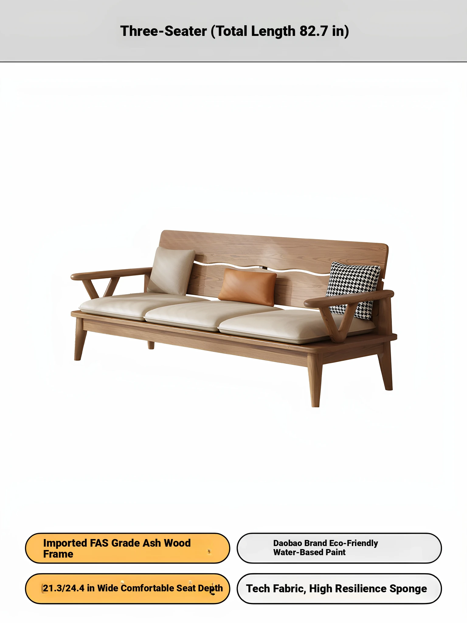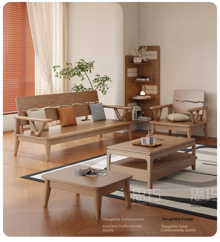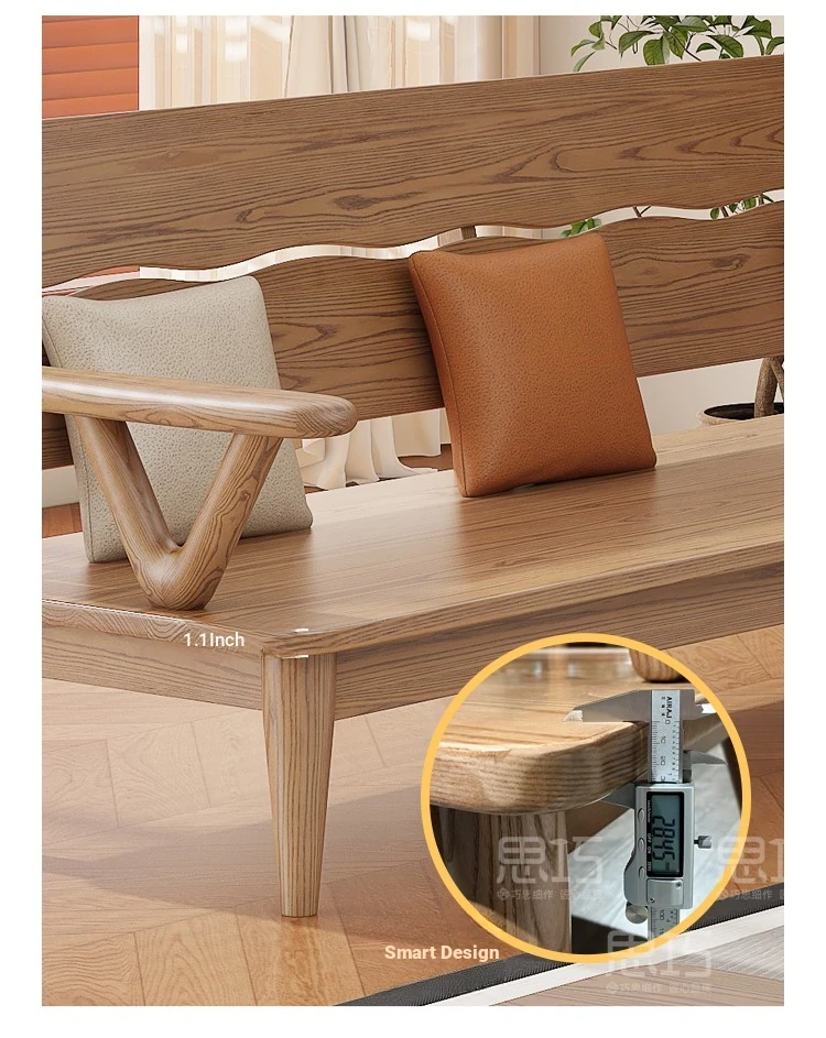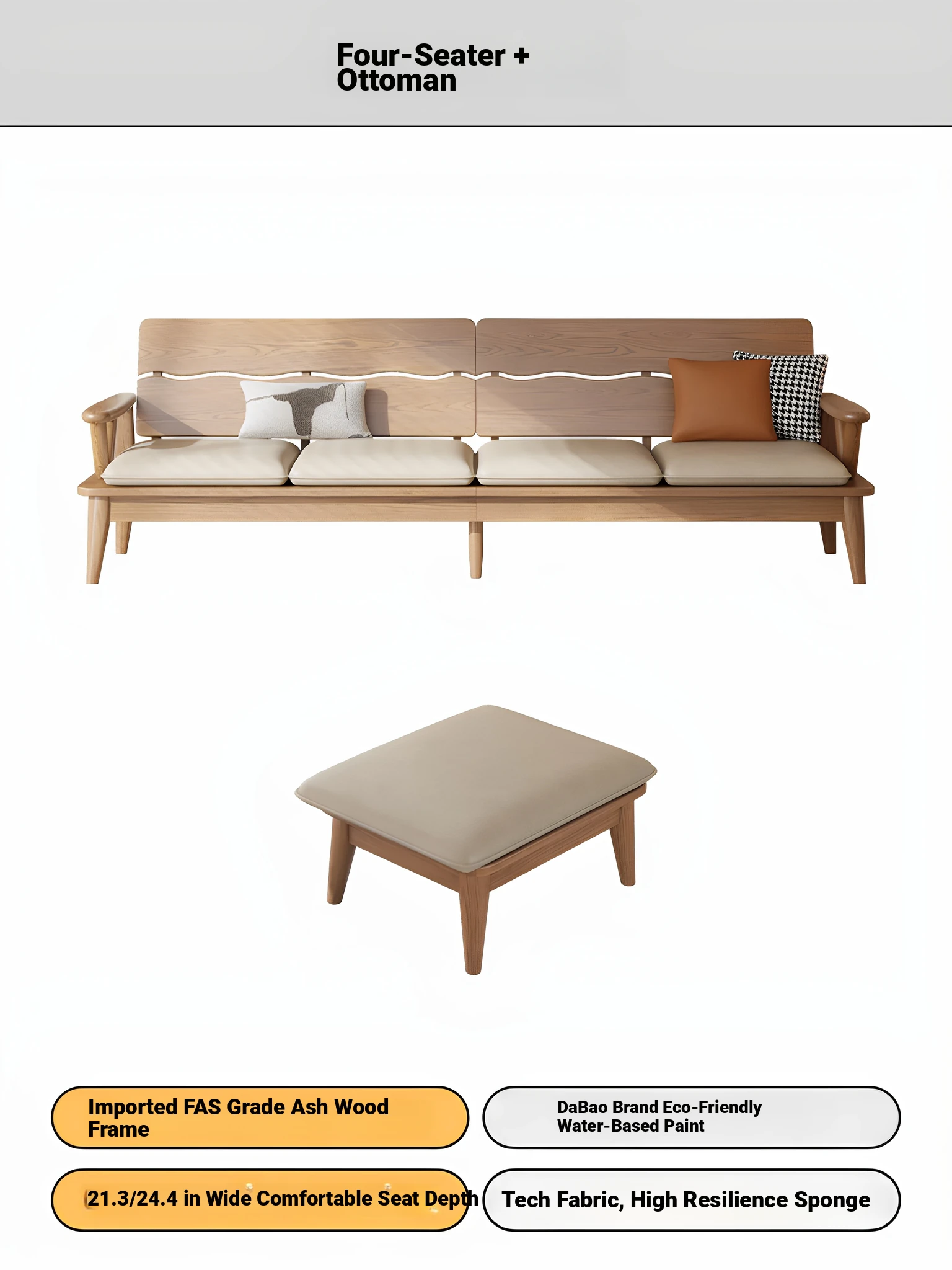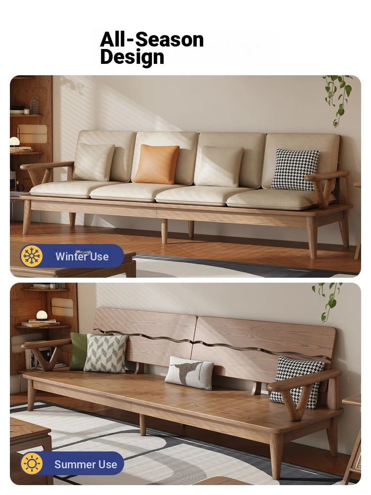 Modern Minimalist Solid Wood Sofa - New Chinese Style for Small Living Rooms, Available in 3-Seater and 4-Seater, Made of Natural Ash Wood for a Chic and Elegant Look.