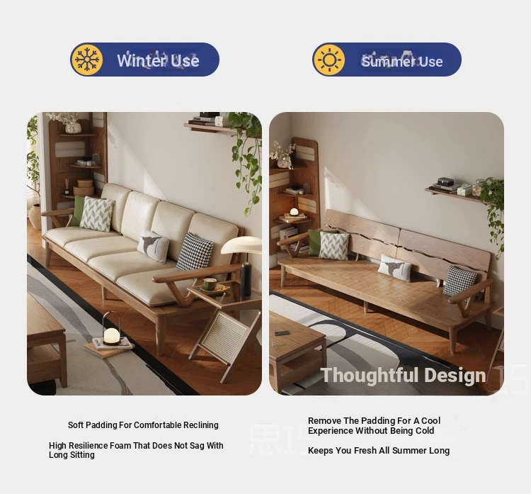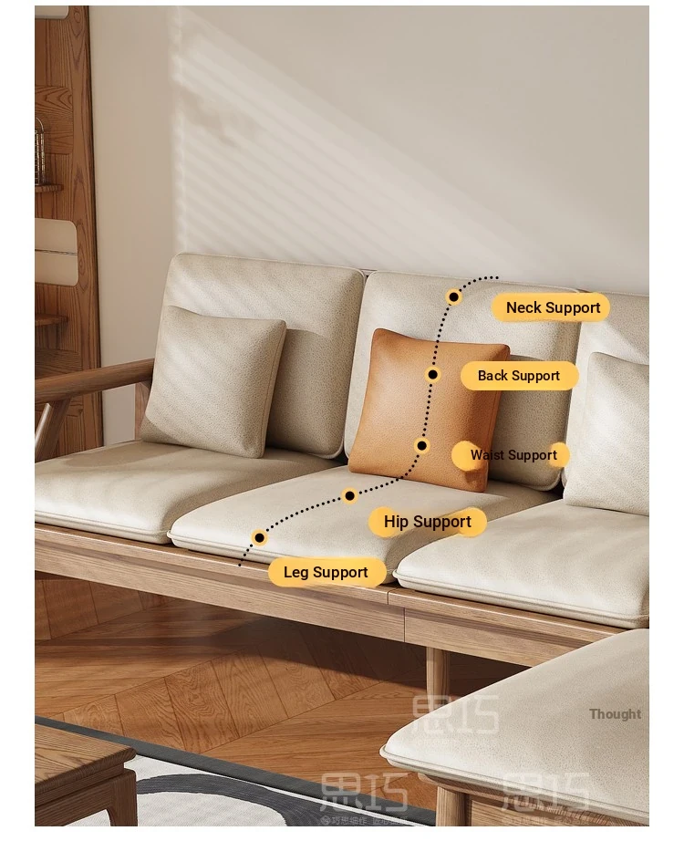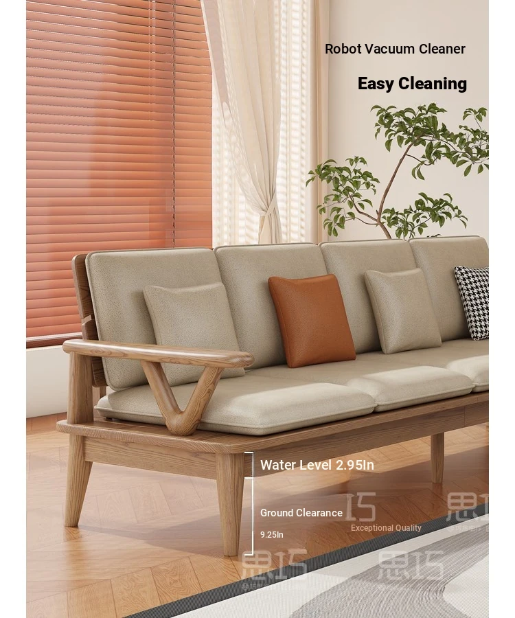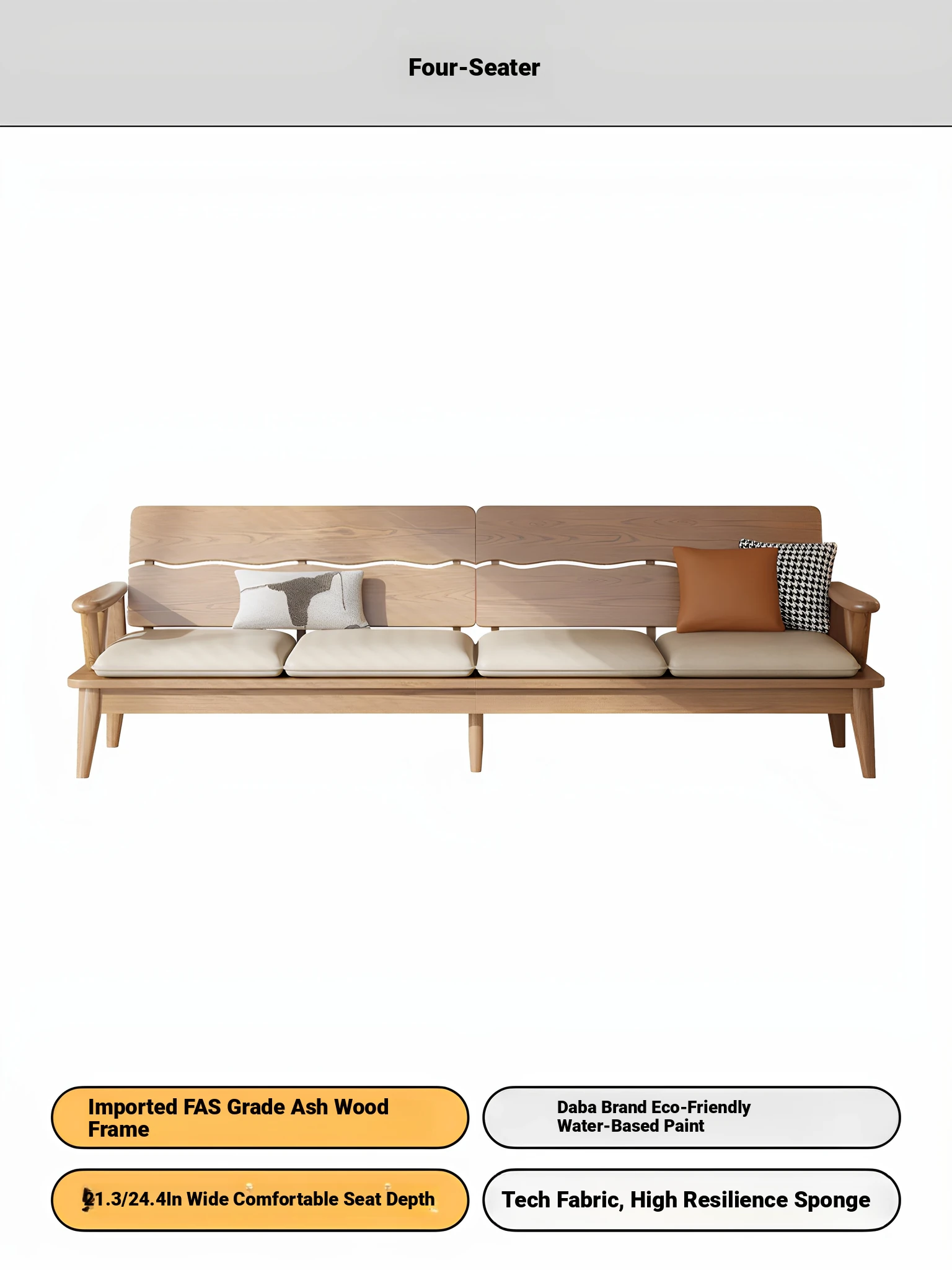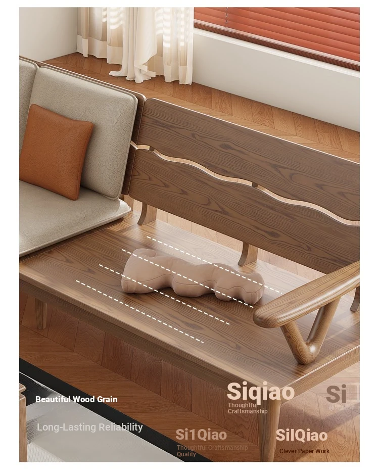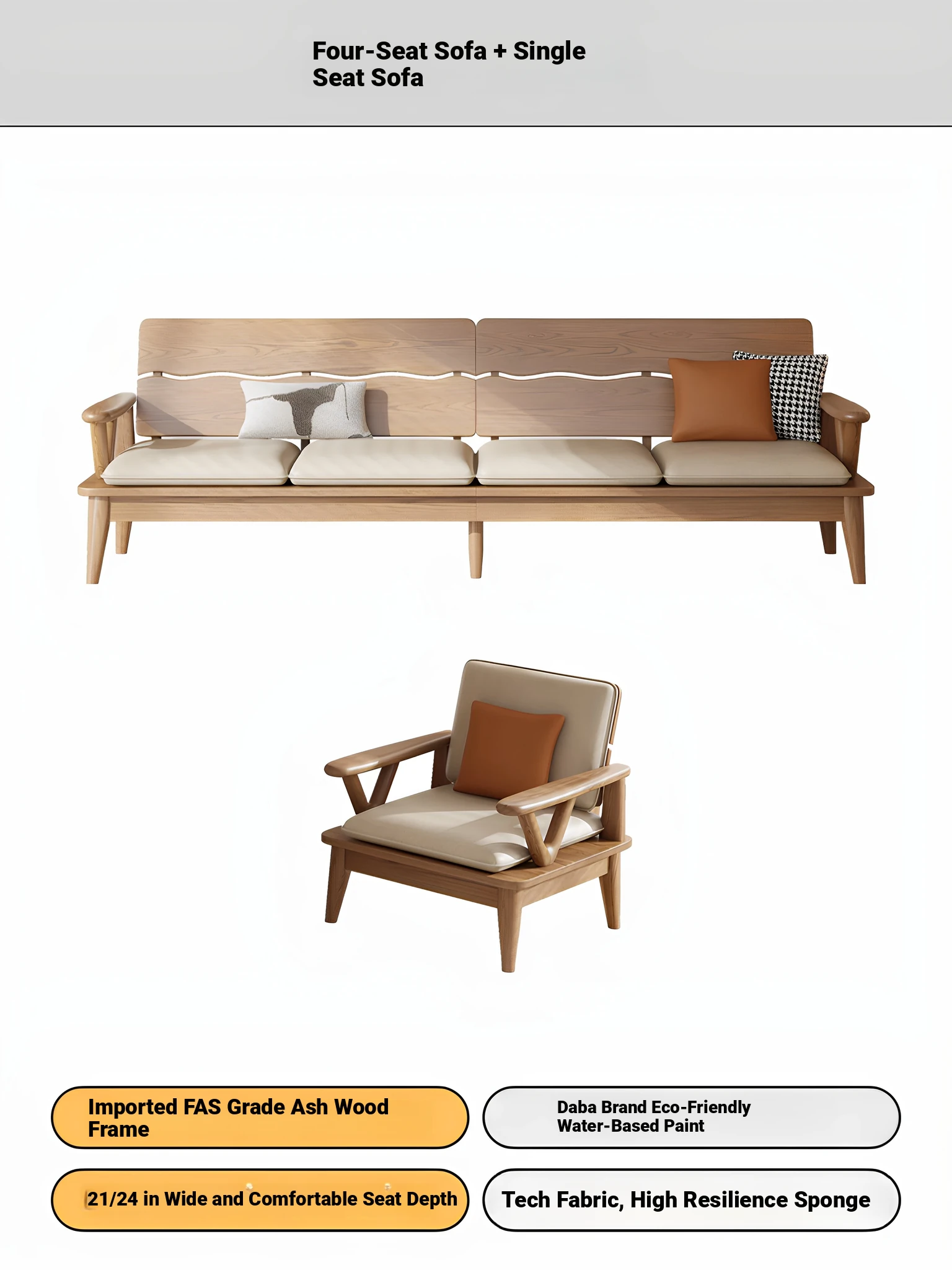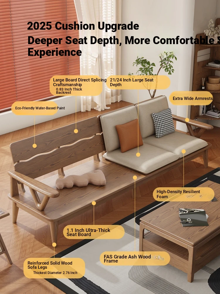 Modern Minimalist Solid Wood Sofa - New Chinese Style for Small Living Rooms, Available in 3-Seater and 4-Seater, Made of Natural Ash Wood for a Chic and Elegant Look.