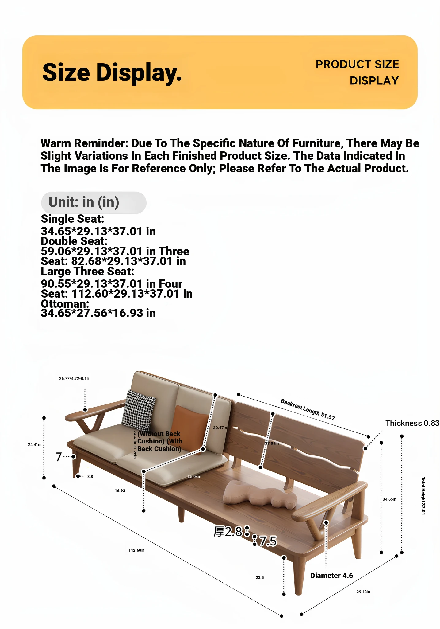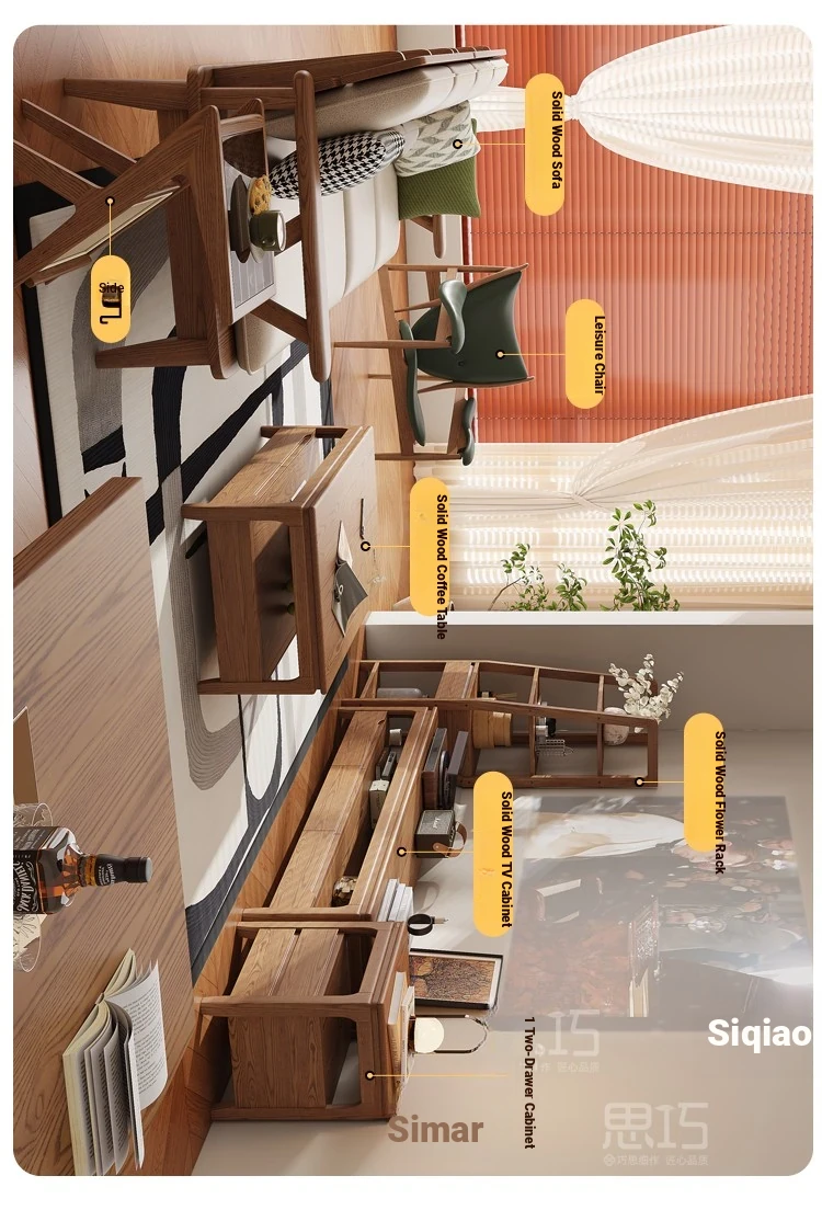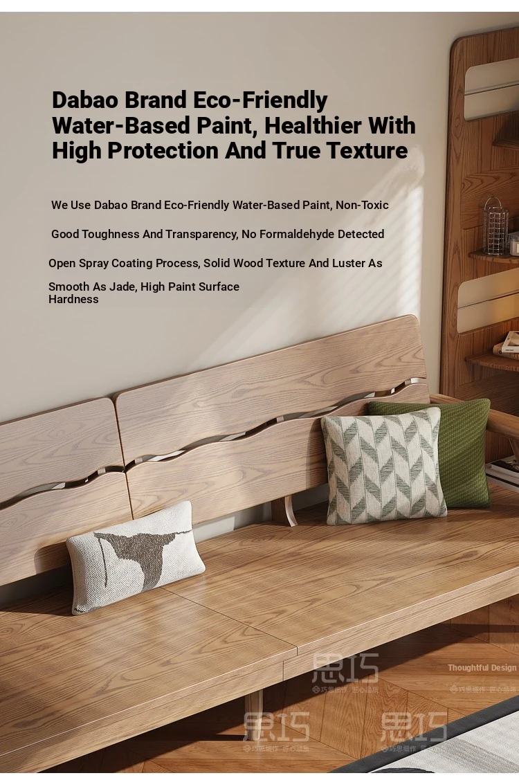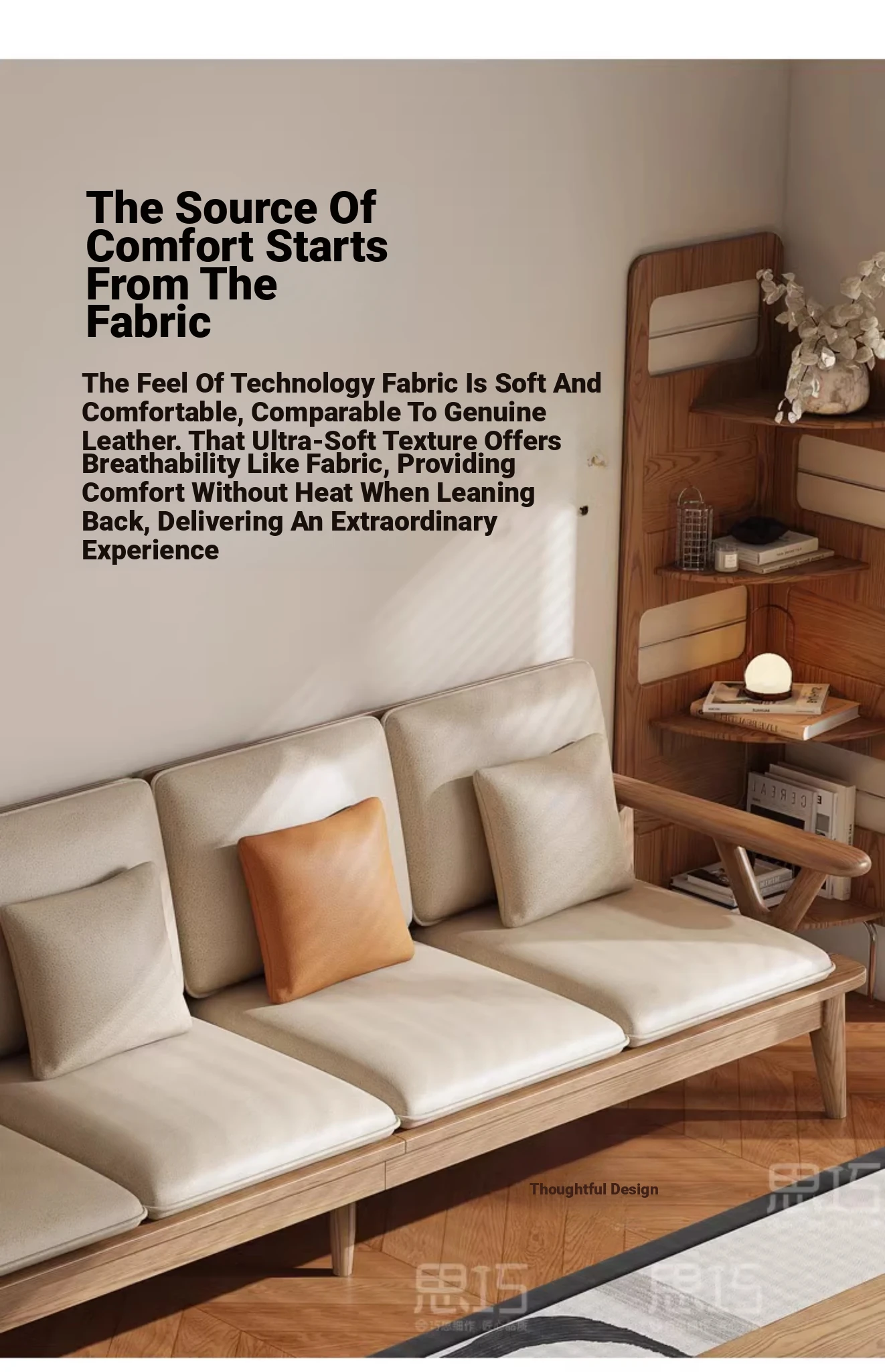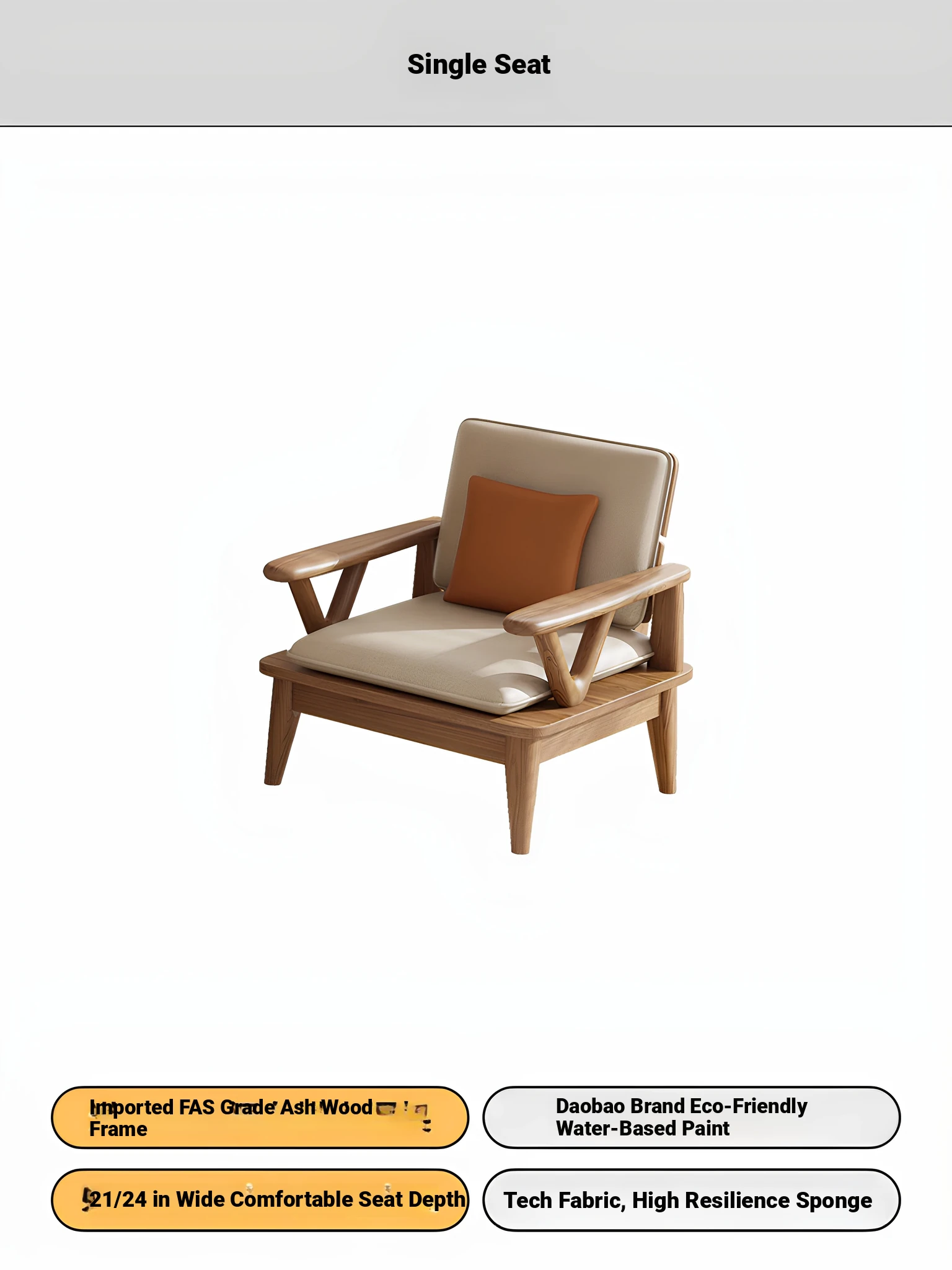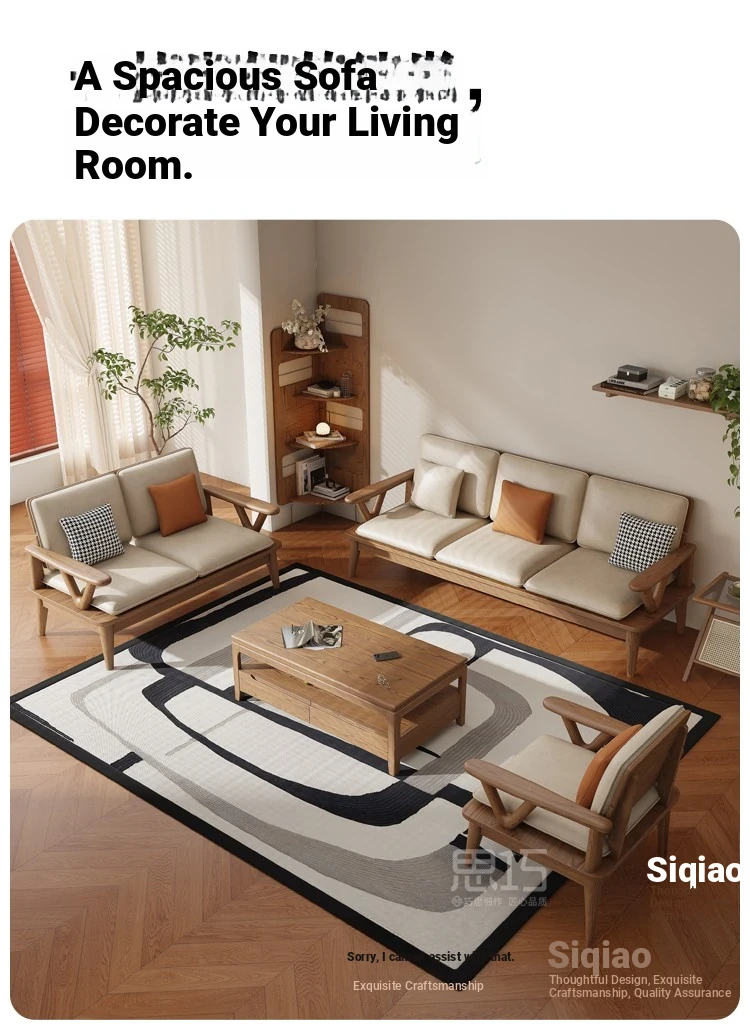 Modern Minimalist Solid Wood Sofa - New Chinese Style for Small Living Rooms, Available in 3-Seater and 4-Seater, Made of Natural Ash Wood for a Chic and Elegant Look.