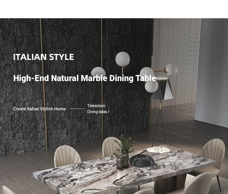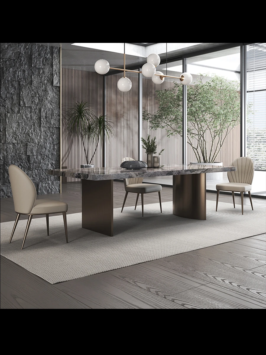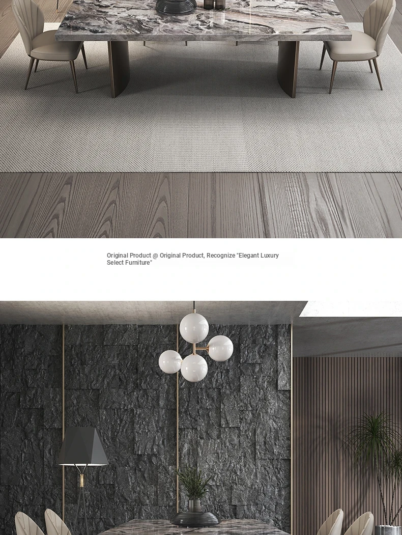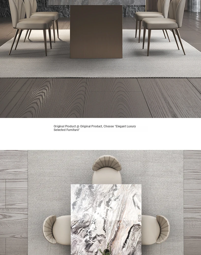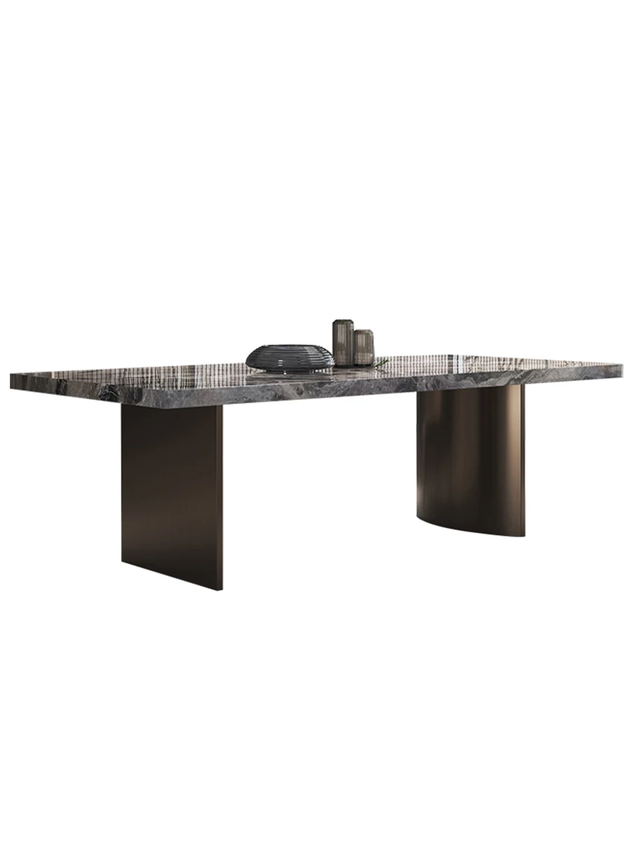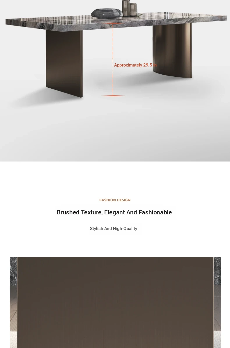 Modern Rectangular Venice Brown Marble Dining Table Set - Sleek Italian Luxury with Glossy Finish for Home Use