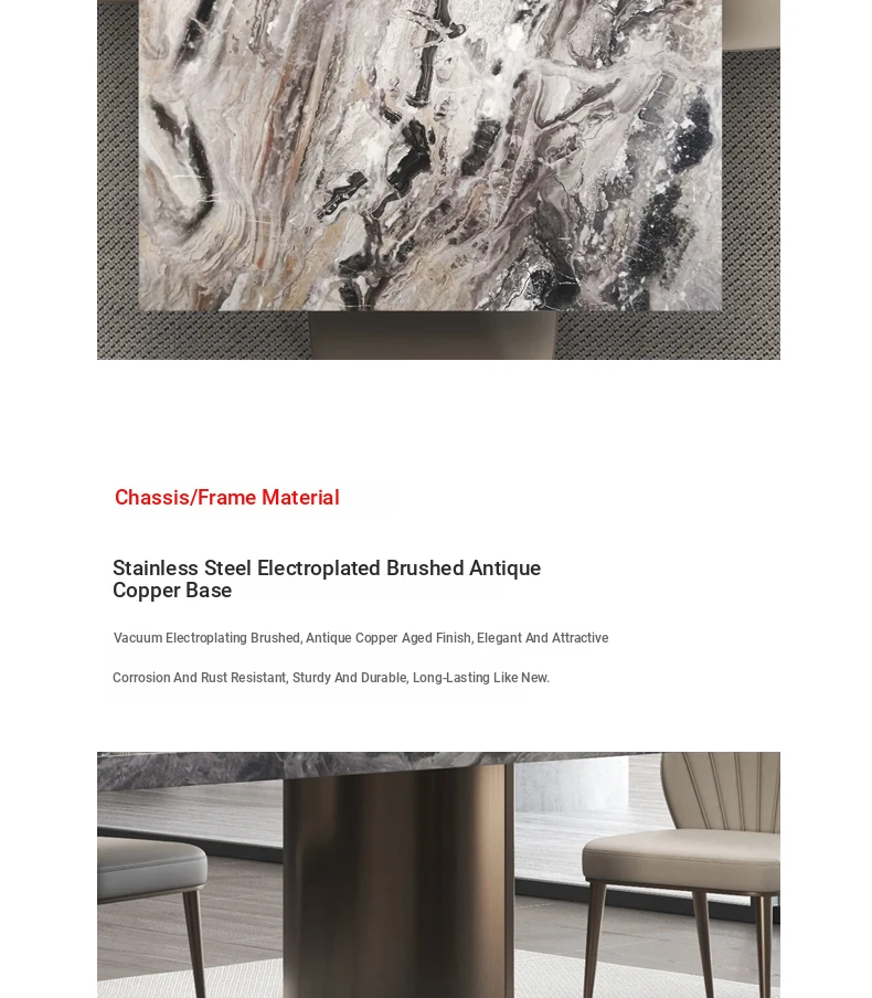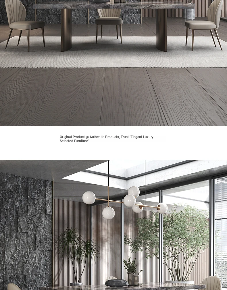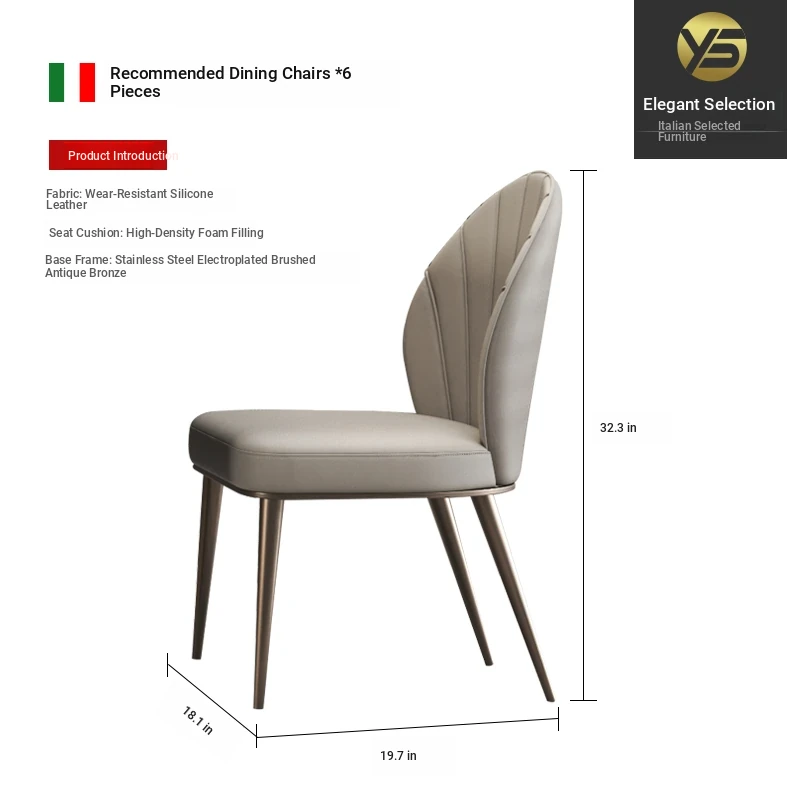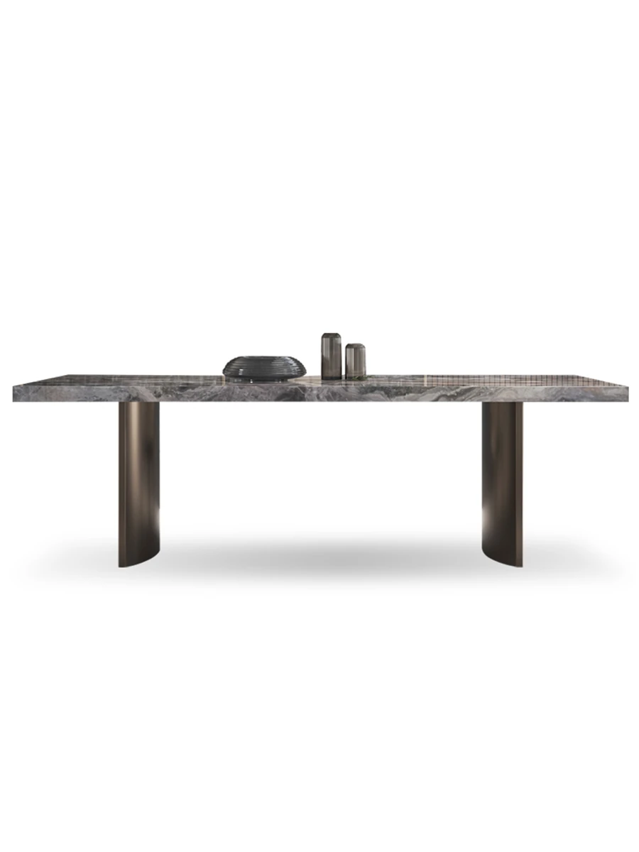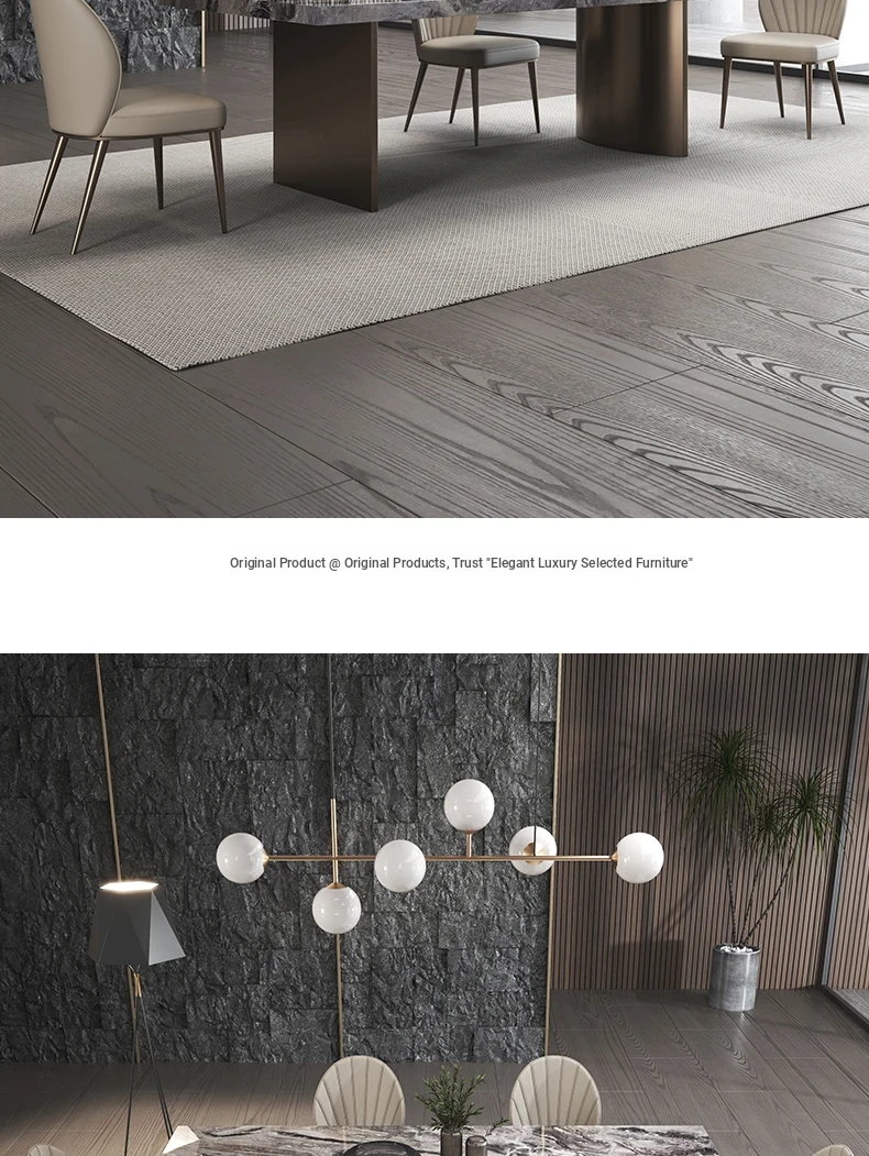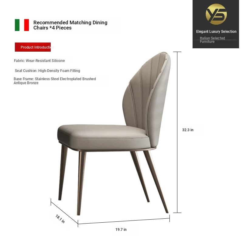 Modern Rectangular Venice Brown Marble Dining Table Set - Sleek Italian Luxury with Glossy Finish for Home Use