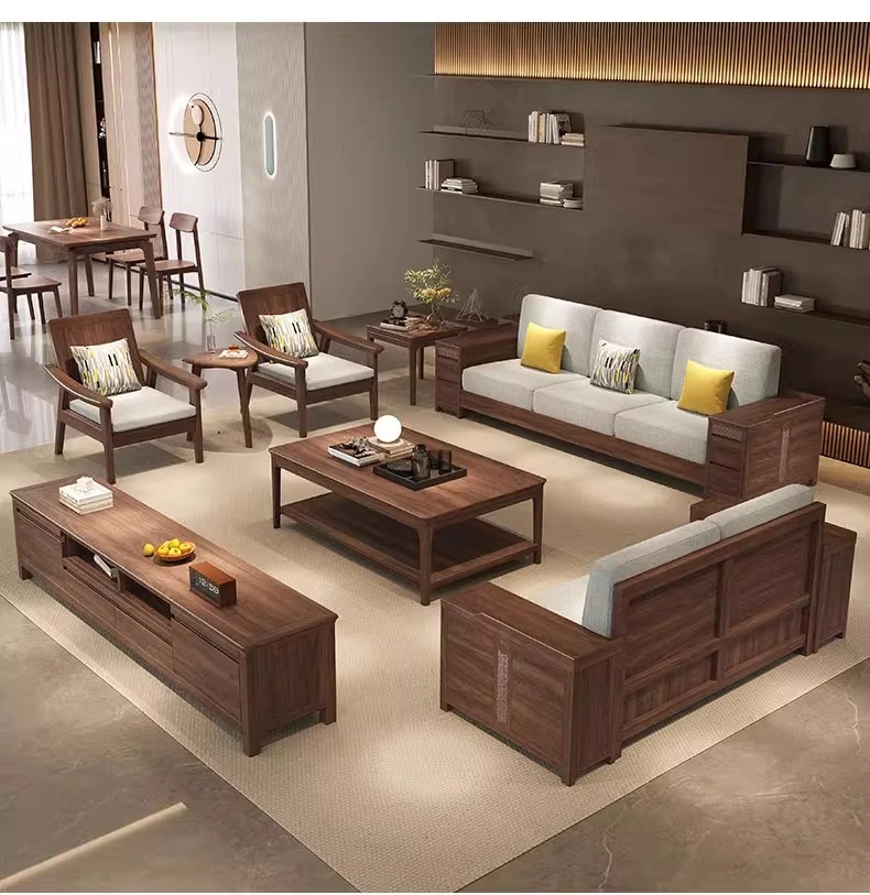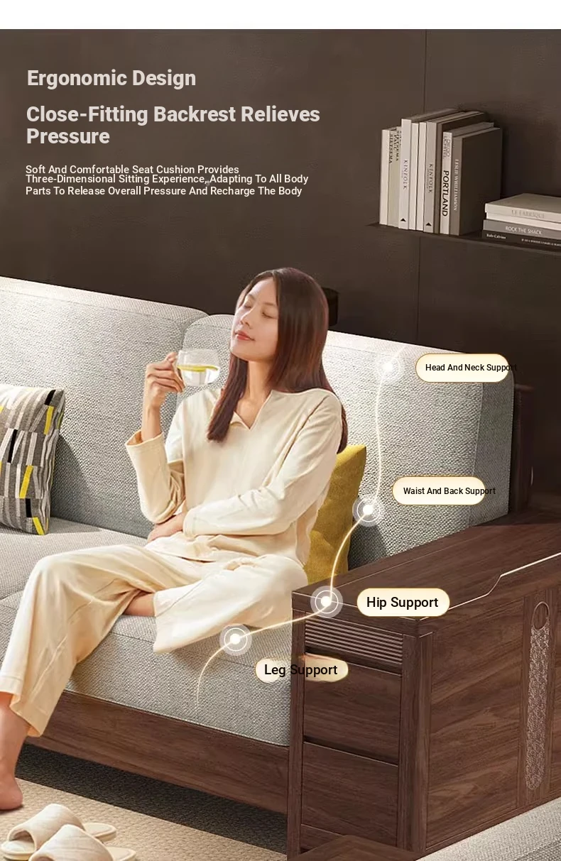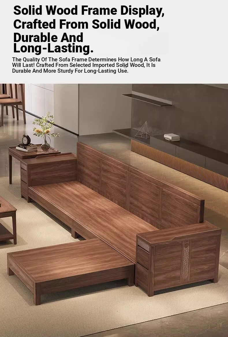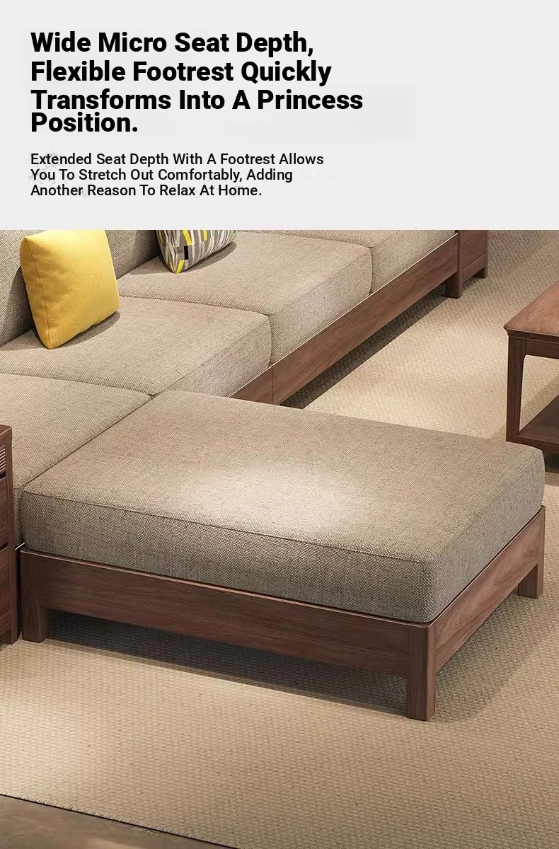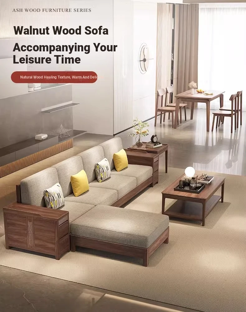 Modern Walnut Wood Upholstered Sofa Set - Versatile Winter-Summer Corner Storage Sofa for Living Room, Crafted from Solid Wood with Stylish Fabric Design