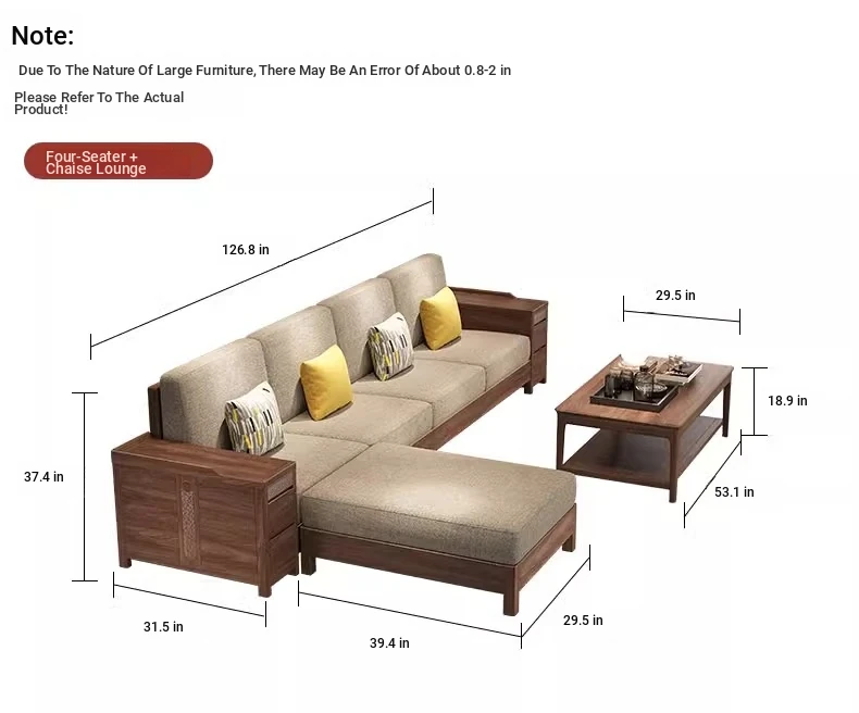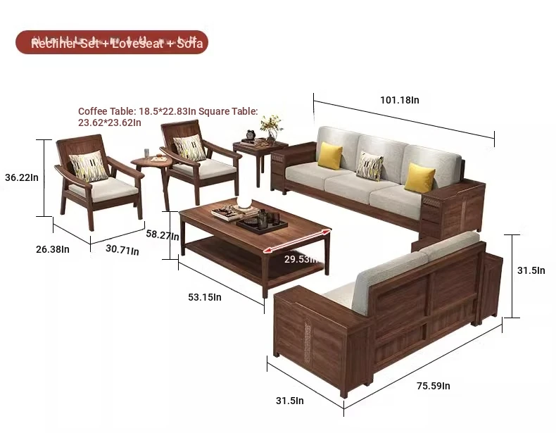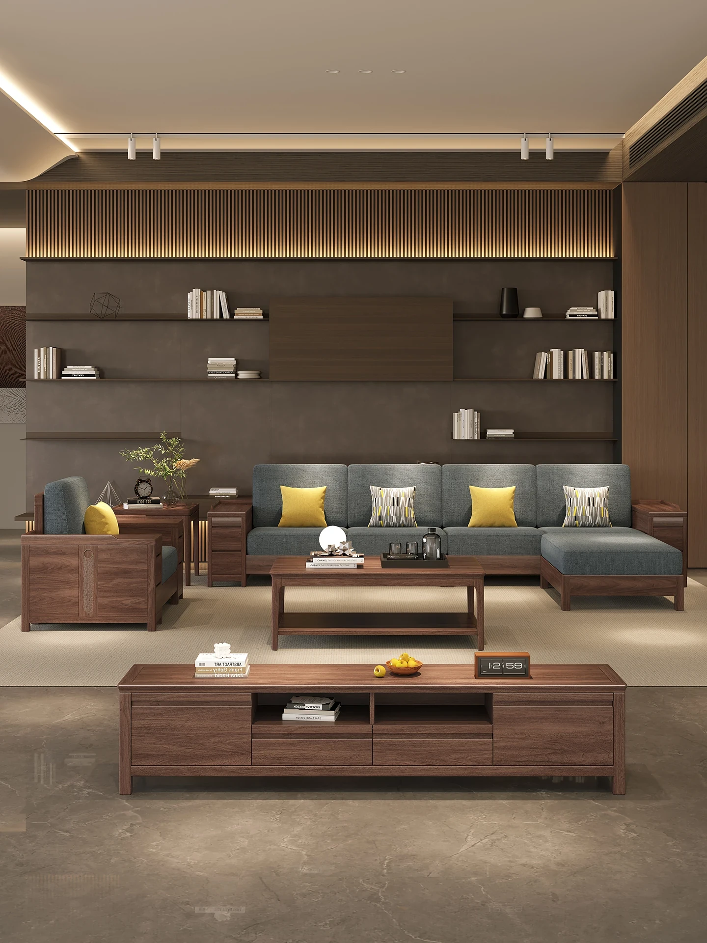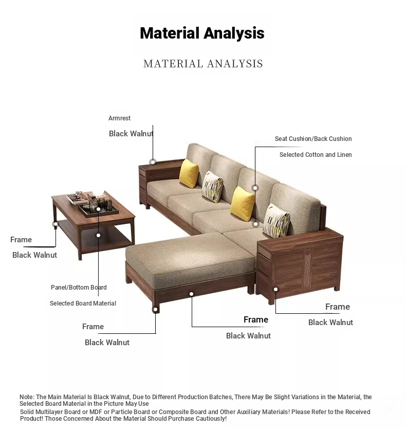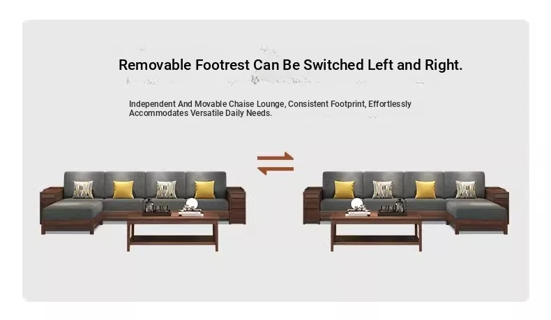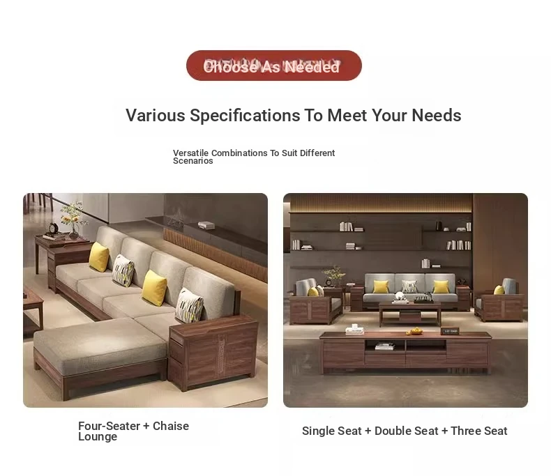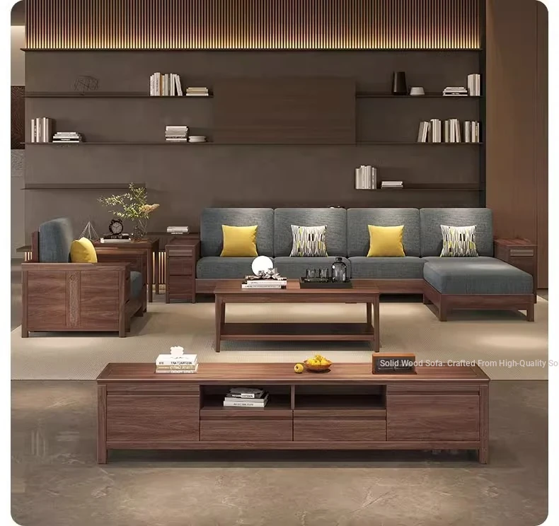 Modern Walnut Wood Upholstered Sofa Set - Versatile Winter-Summer Corner Storage Sofa for Living Room, Crafted from Solid Wood with Stylish Fabric Design