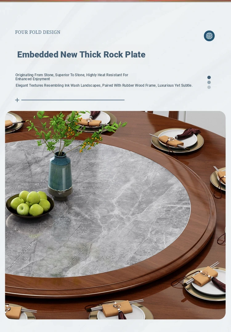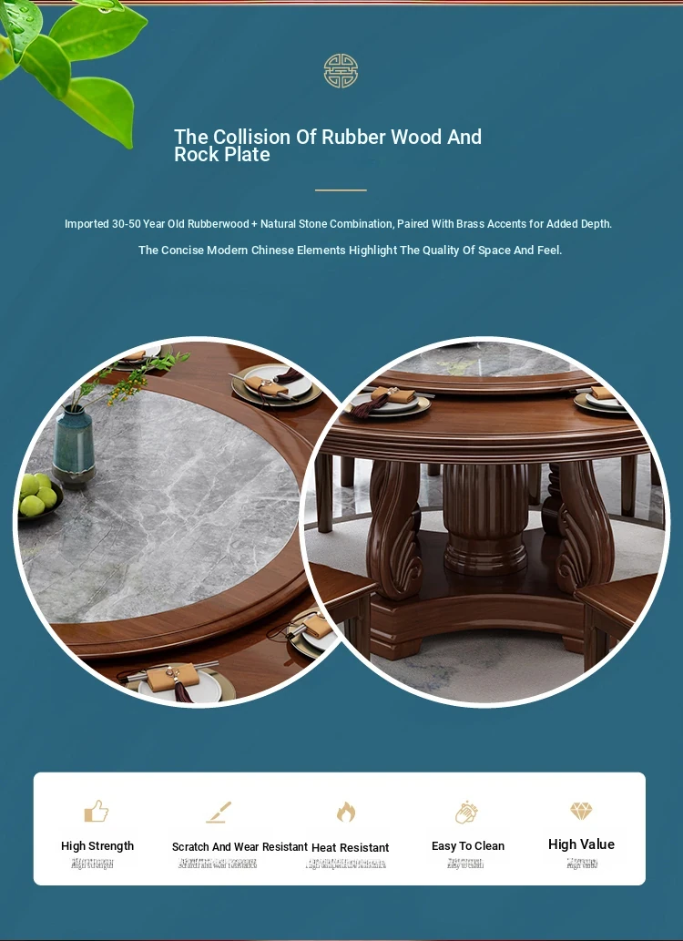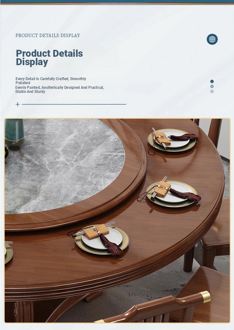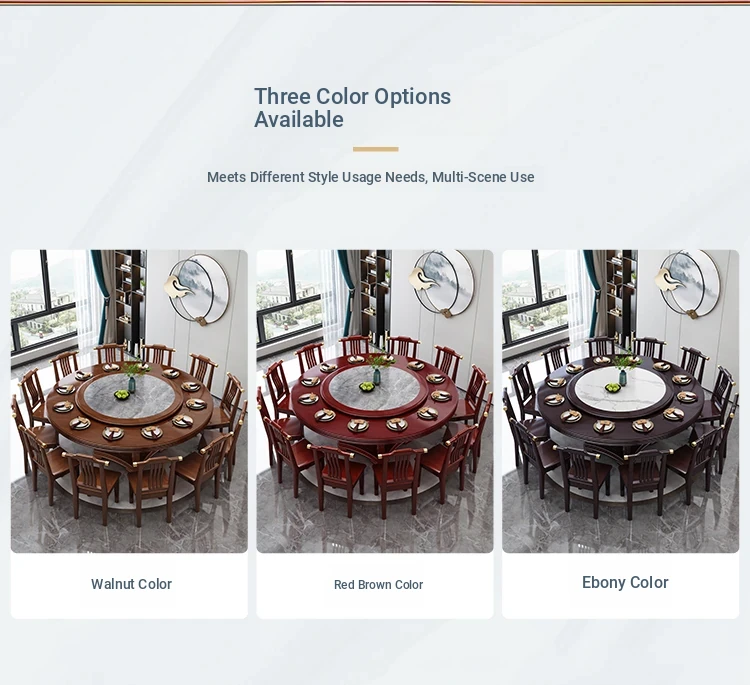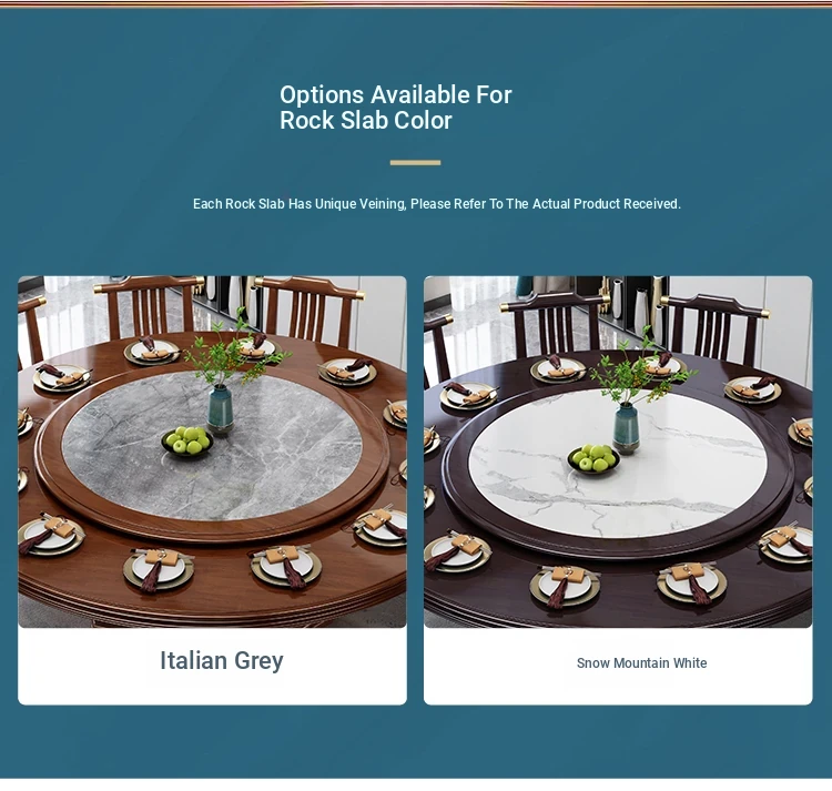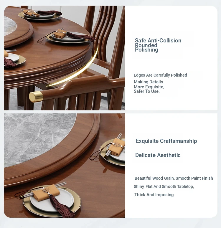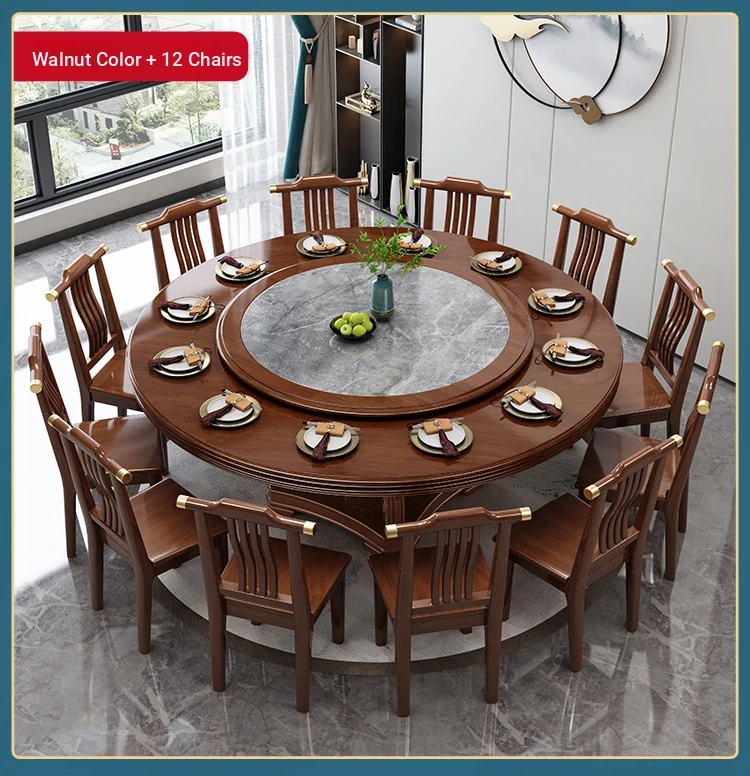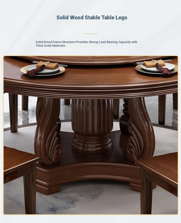 New Chinese Style Solid Wood Dining Table with Rotating Tray - Spacious 2M Round Table for 10 People, Perfect for Home and Hotel Dining Experience