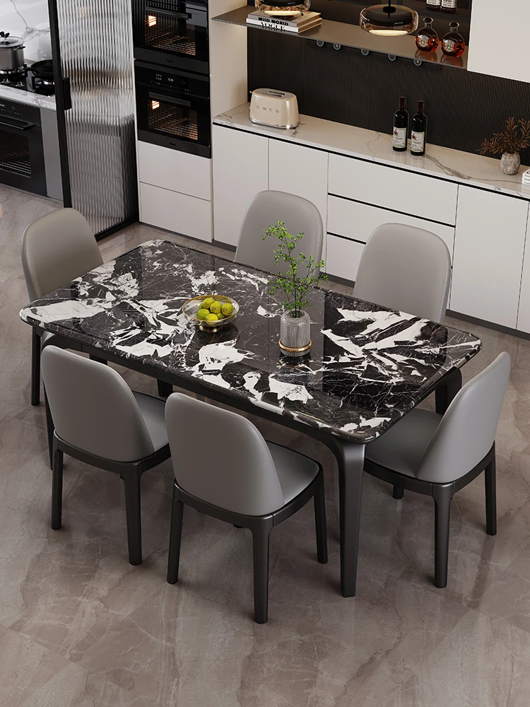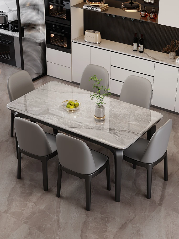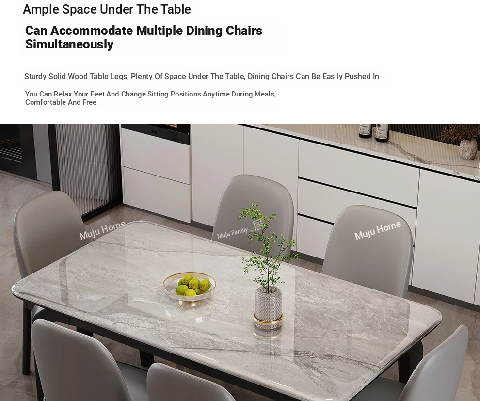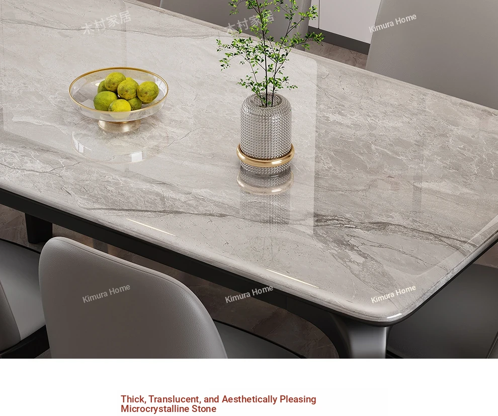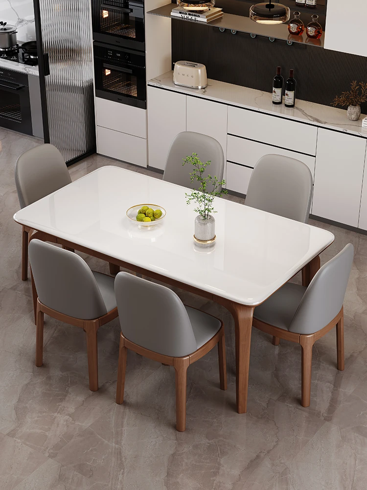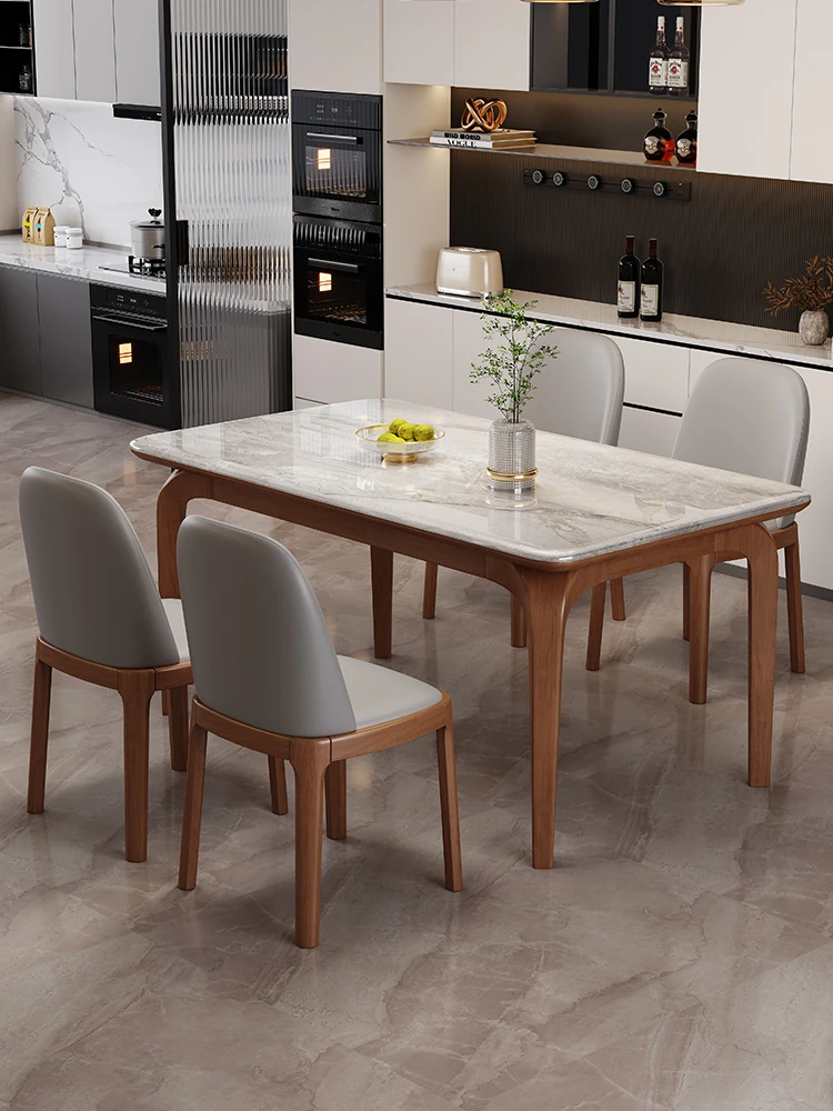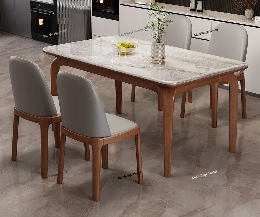 Premium Solid Wood and Microcrystalline Stone Dining Table Set - Stylish Rectangular Marble Table for Small Spaces, Perfect for Home Use with Full Base Support