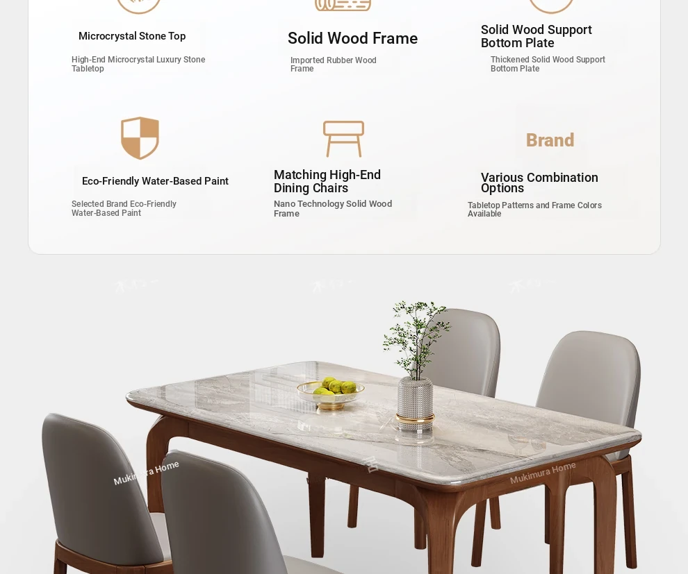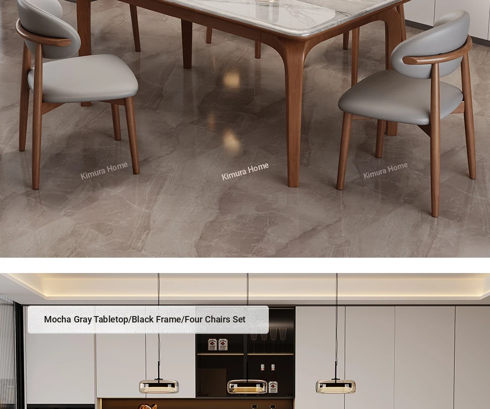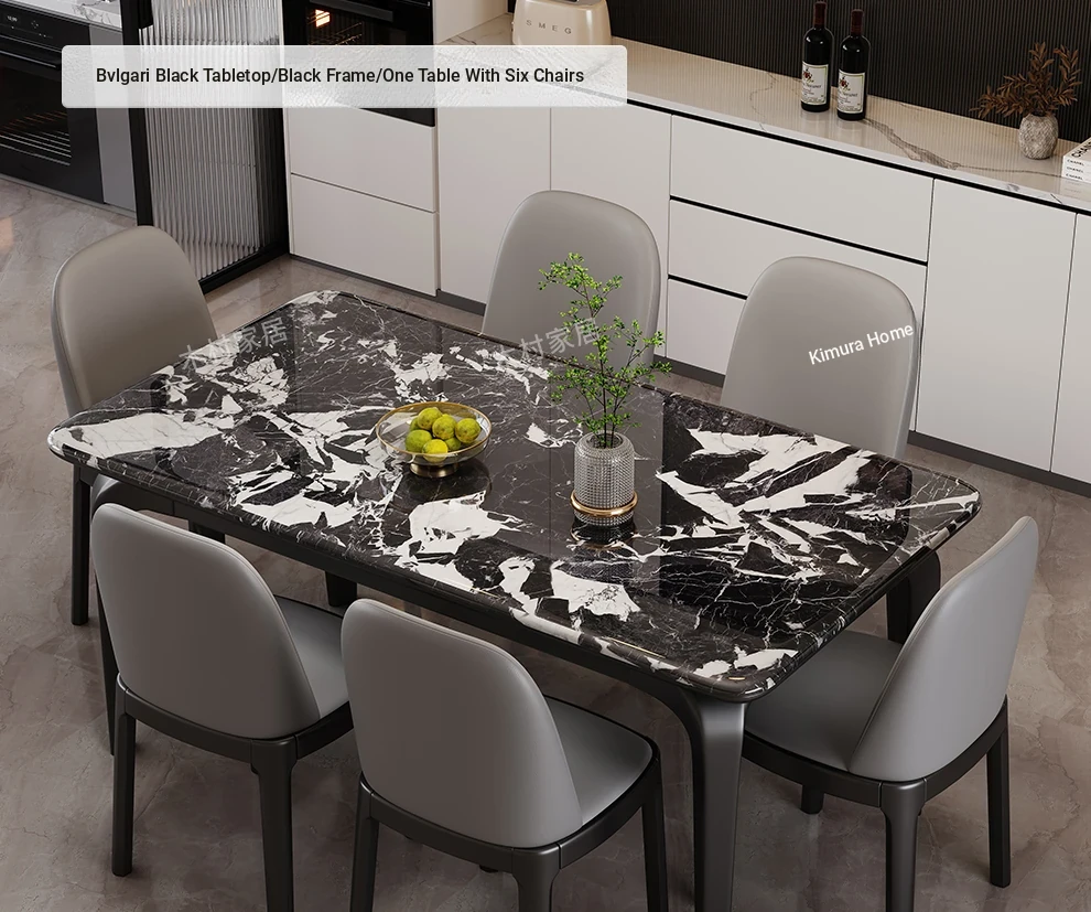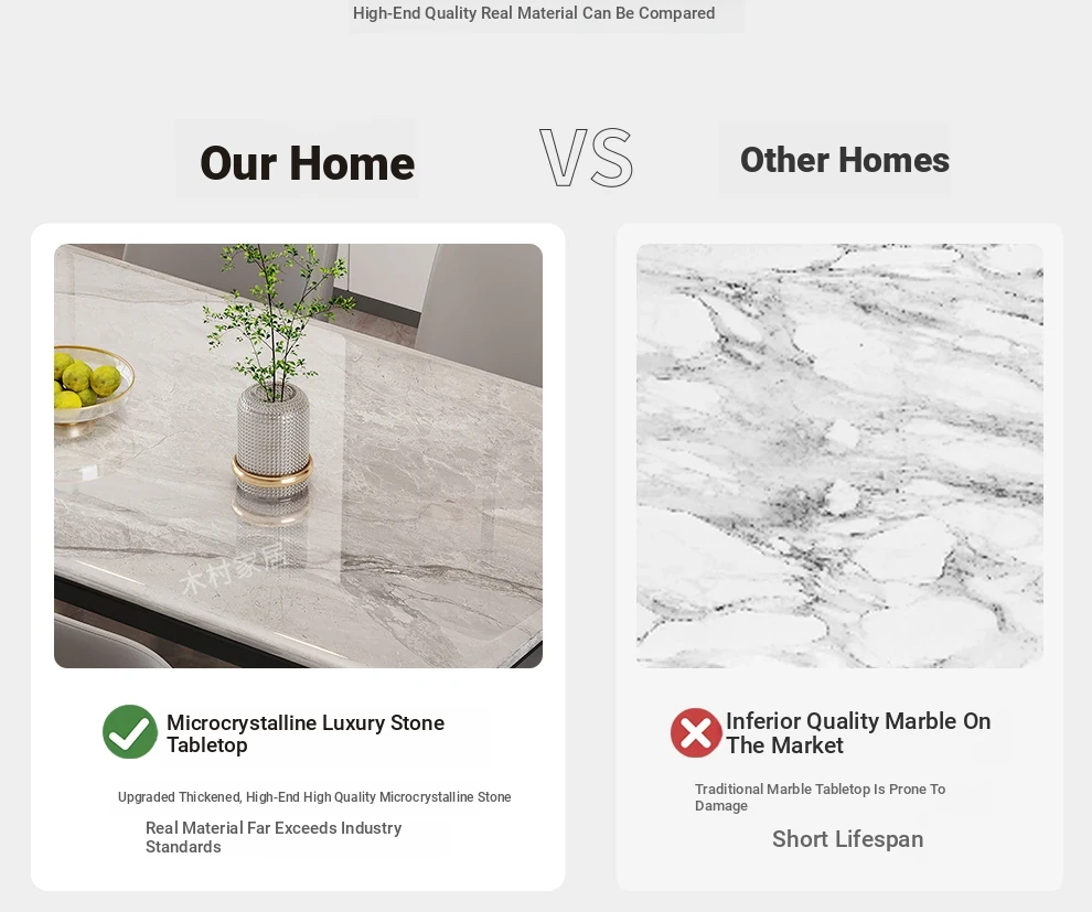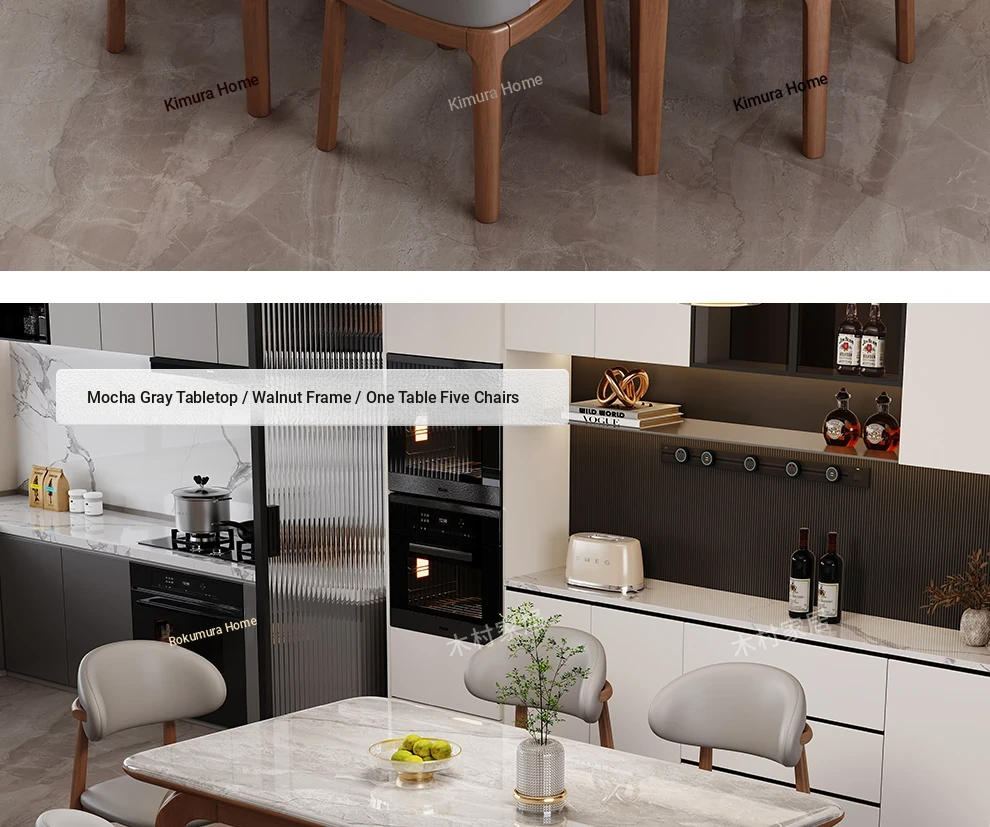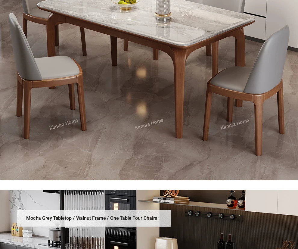 Premium Solid Wood and Microcrystalline Stone Dining Table Set - Stylish Rectangular Marble Table for Small Spaces, Perfect for Home Use with Full Base Support