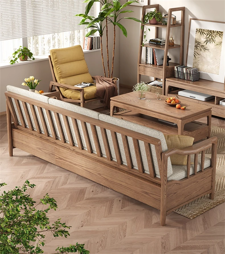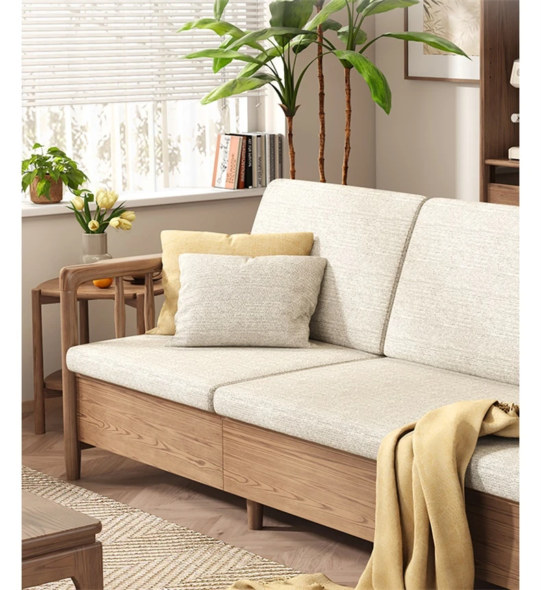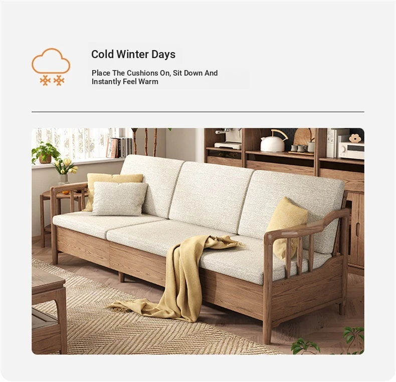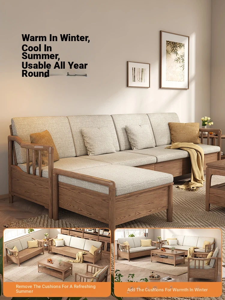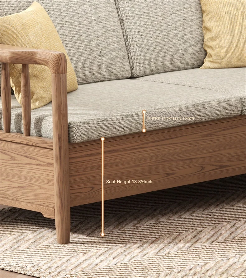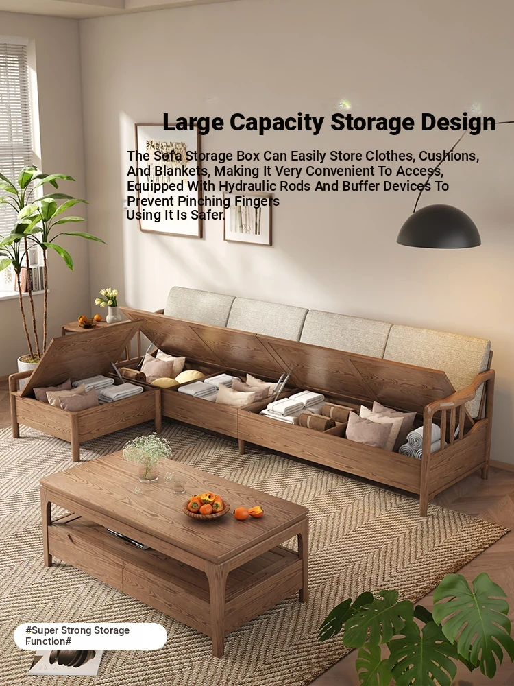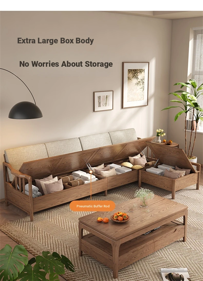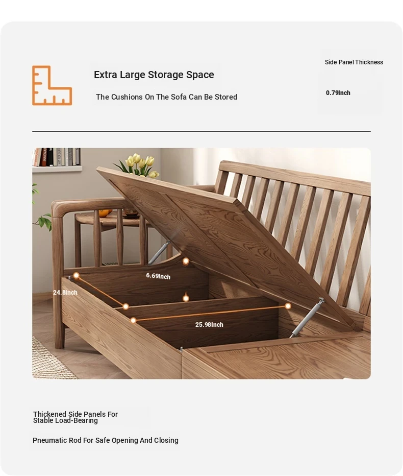 Versatile Solid Wood Sofa for All Seasons - New Chinese Style, Ideal for Small Living Rooms, Made of Ash Wood, Three-Seater with High Storage Box for Convenient Organization