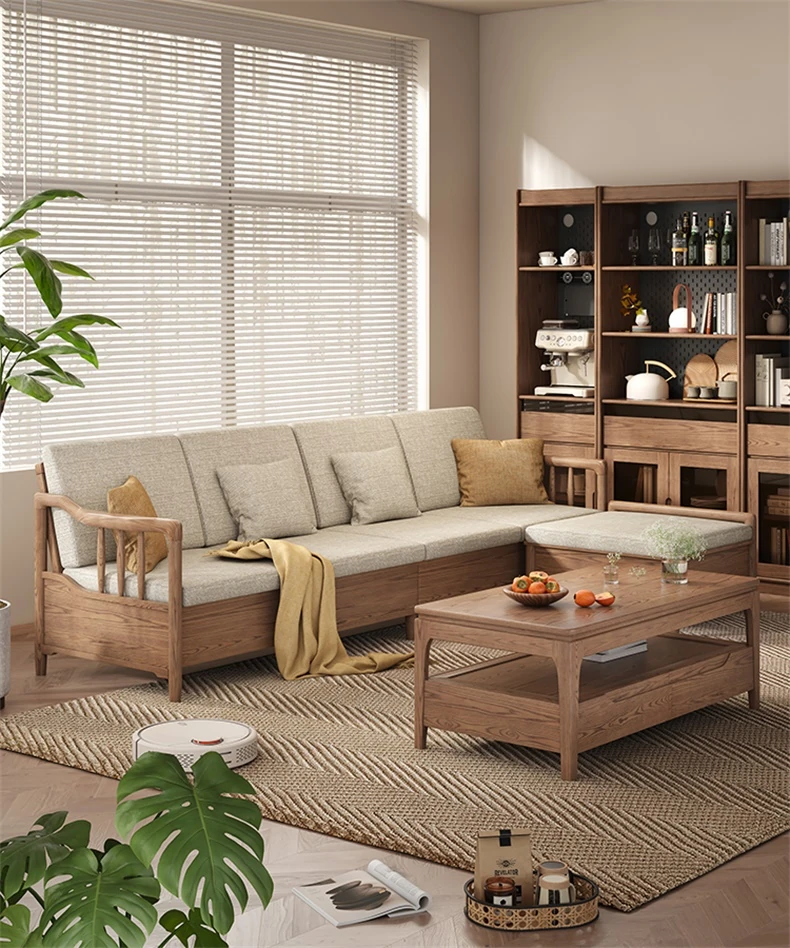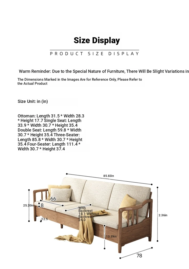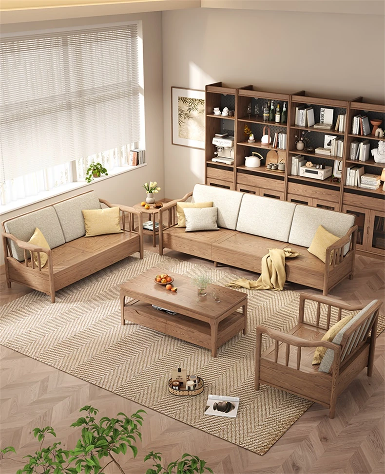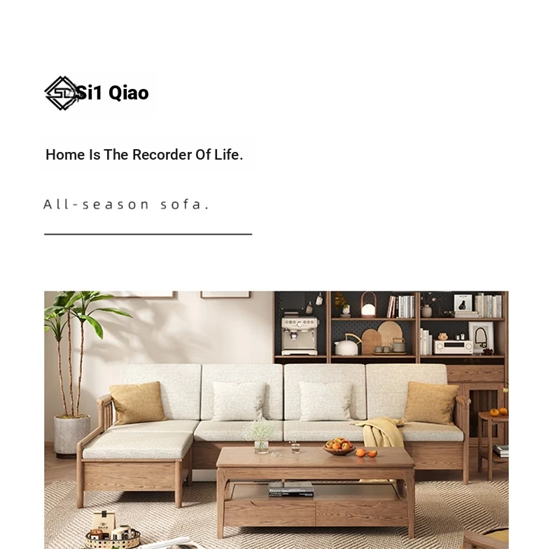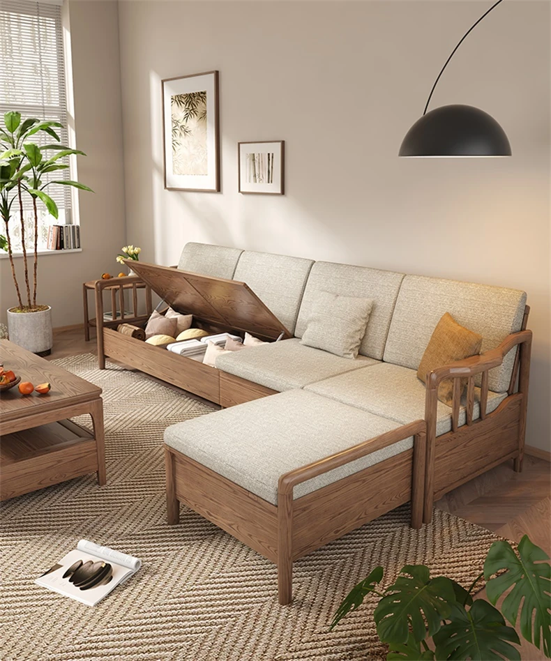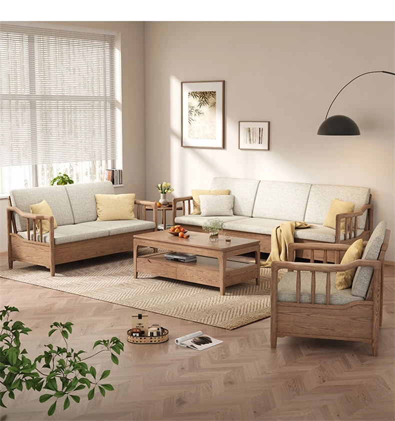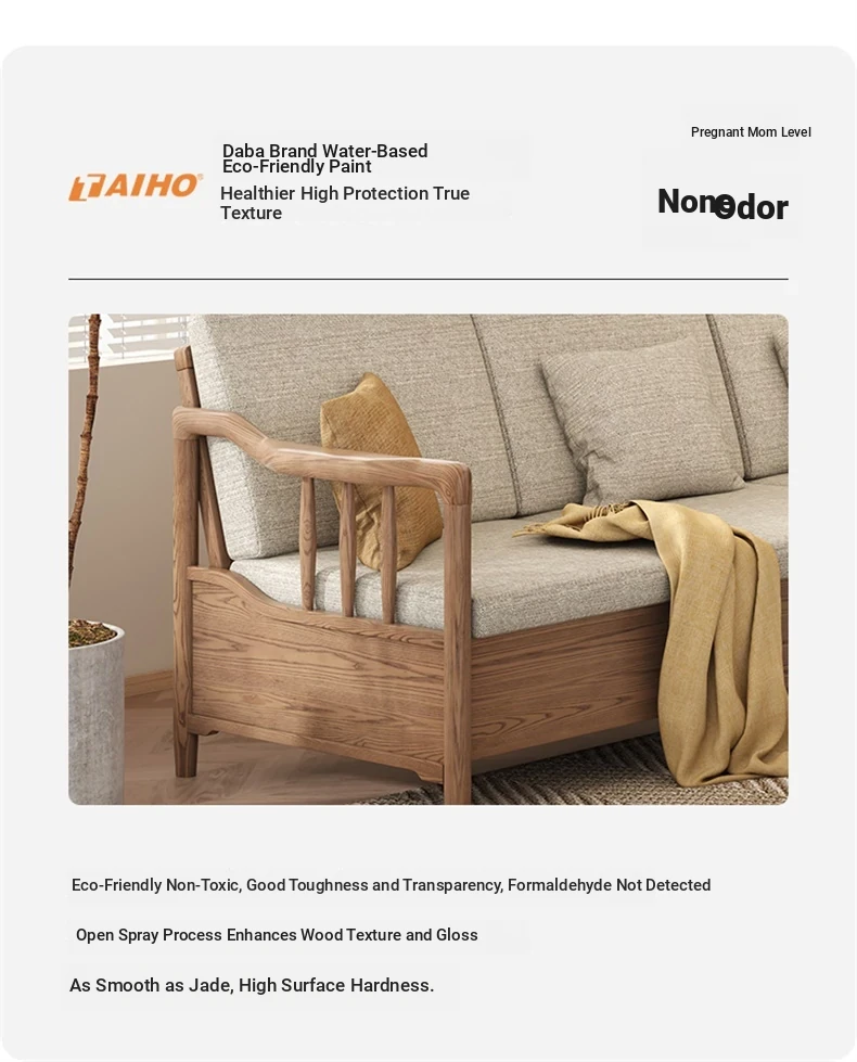 Versatile Solid Wood Sofa for All Seasons - New Chinese Style, Ideal for Small Living Rooms, Made of Ash Wood, Three-Seater with High Storage Box for Convenient Organization