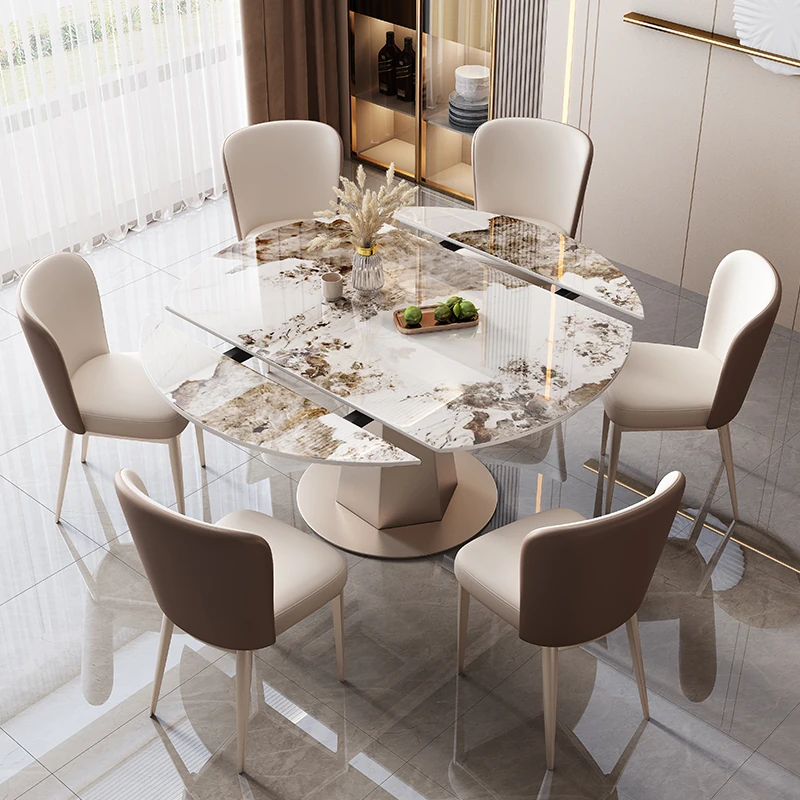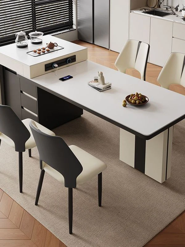 Modern Minimalist Extendable Dining Table Set - High-End Light Luxury Kitchen Island with Multi-Functional Tea Table and Chairs for Home Use