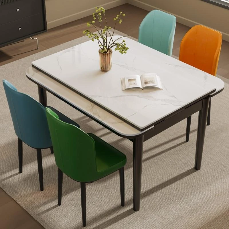 Modern Minimalist Foldable Dining Table with Expandable Rock Panel - Perfect for Small Spaces, Multifunctional Design for Home Use