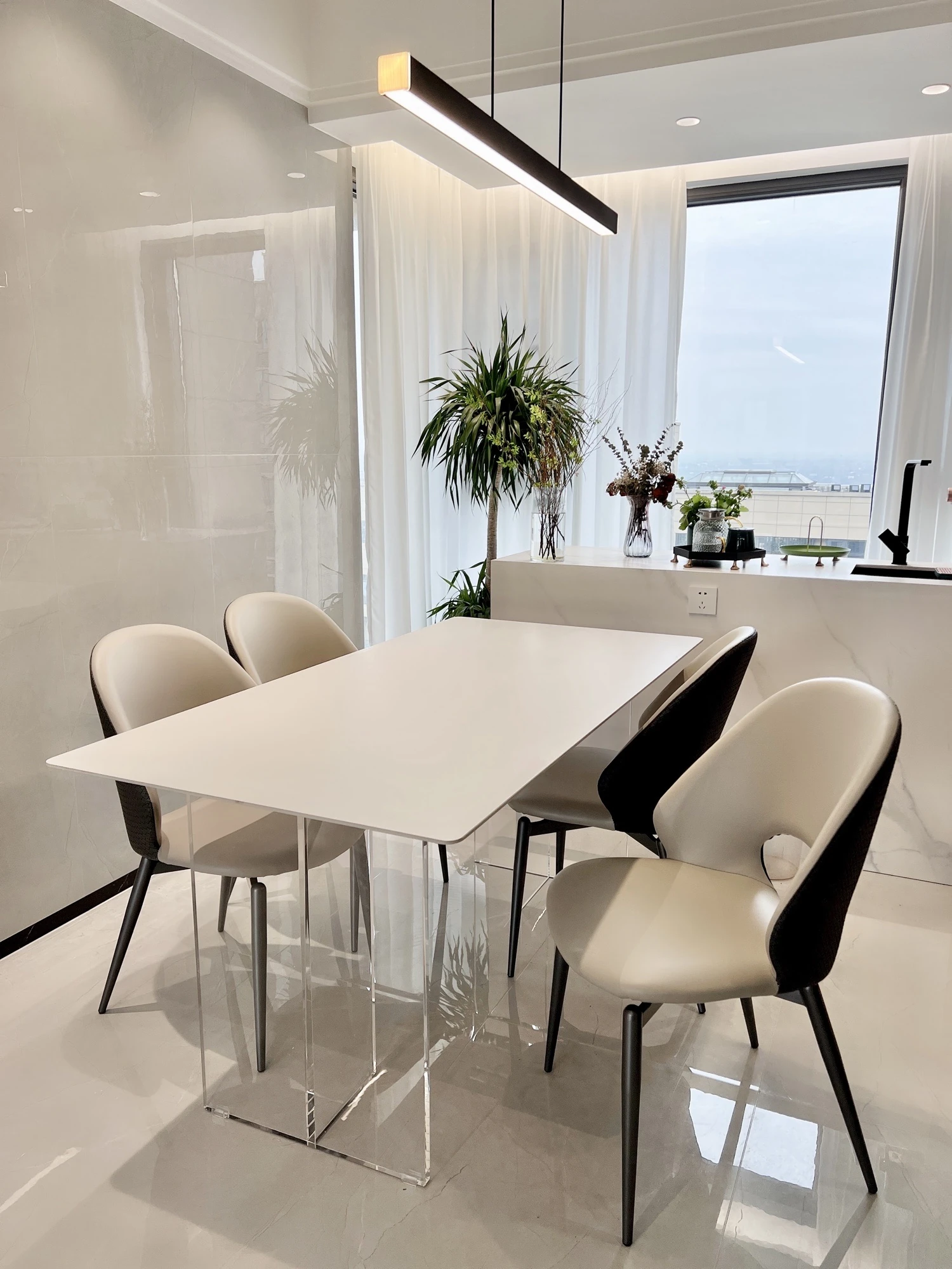 Acrylic Floating Rock Dining Table and Chair Set - Modern Minimalist Rectangle Design for Small Spaces, Perfect for Home Dining