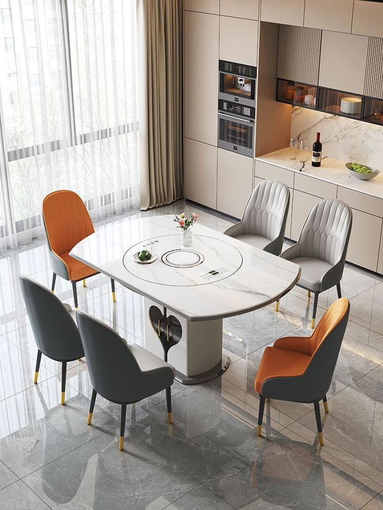 Smart Warm Serving Slate Dining Table - Space-Saving Foldable Design with Rotating Turntable and Induction Cooktop for Small Homes, Versatile Round and Square Options