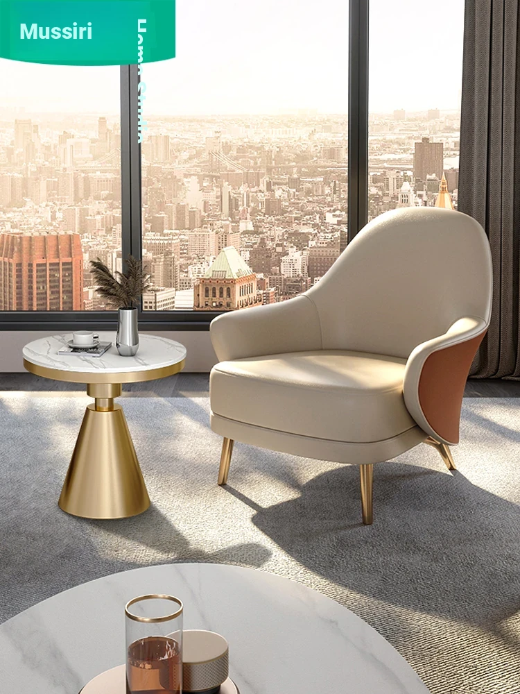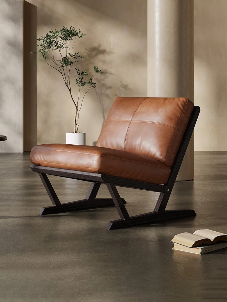 Italian Minimalist Genuine Leather Single Sofa Chair – Designer High-End Vintage Leisure Chair for Hotels and Luxury Villas – Daiki Collection