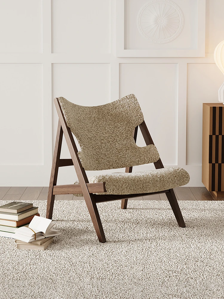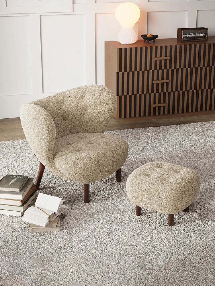 Vintage Designer Single Sofa Chair - Retro Leisure Armchair with Solid Wood and Lamb Fleece, Perfect for Cozy Spaces and Trendy Guesthouses - Ideal for Relaxing and Unwinding!